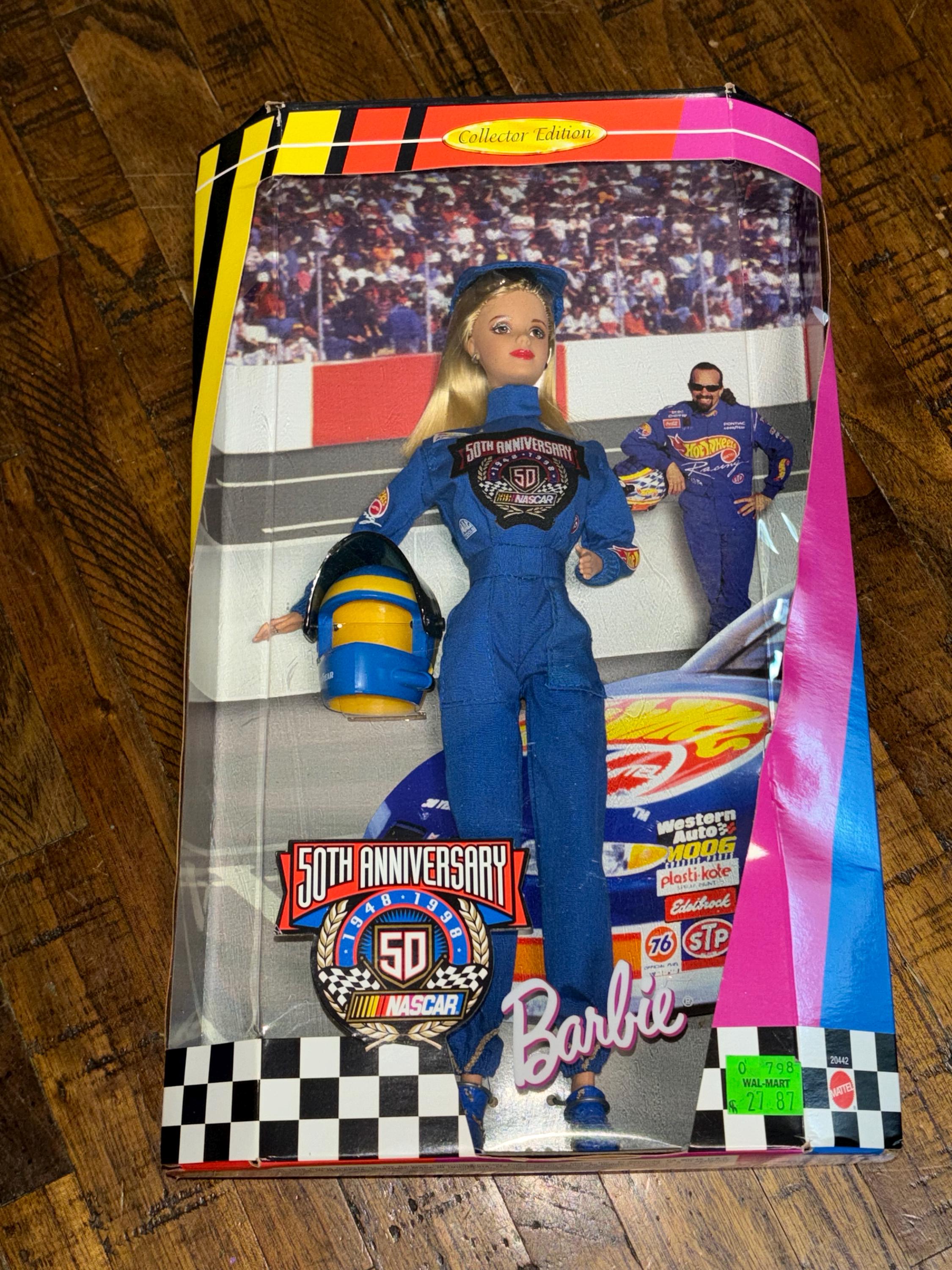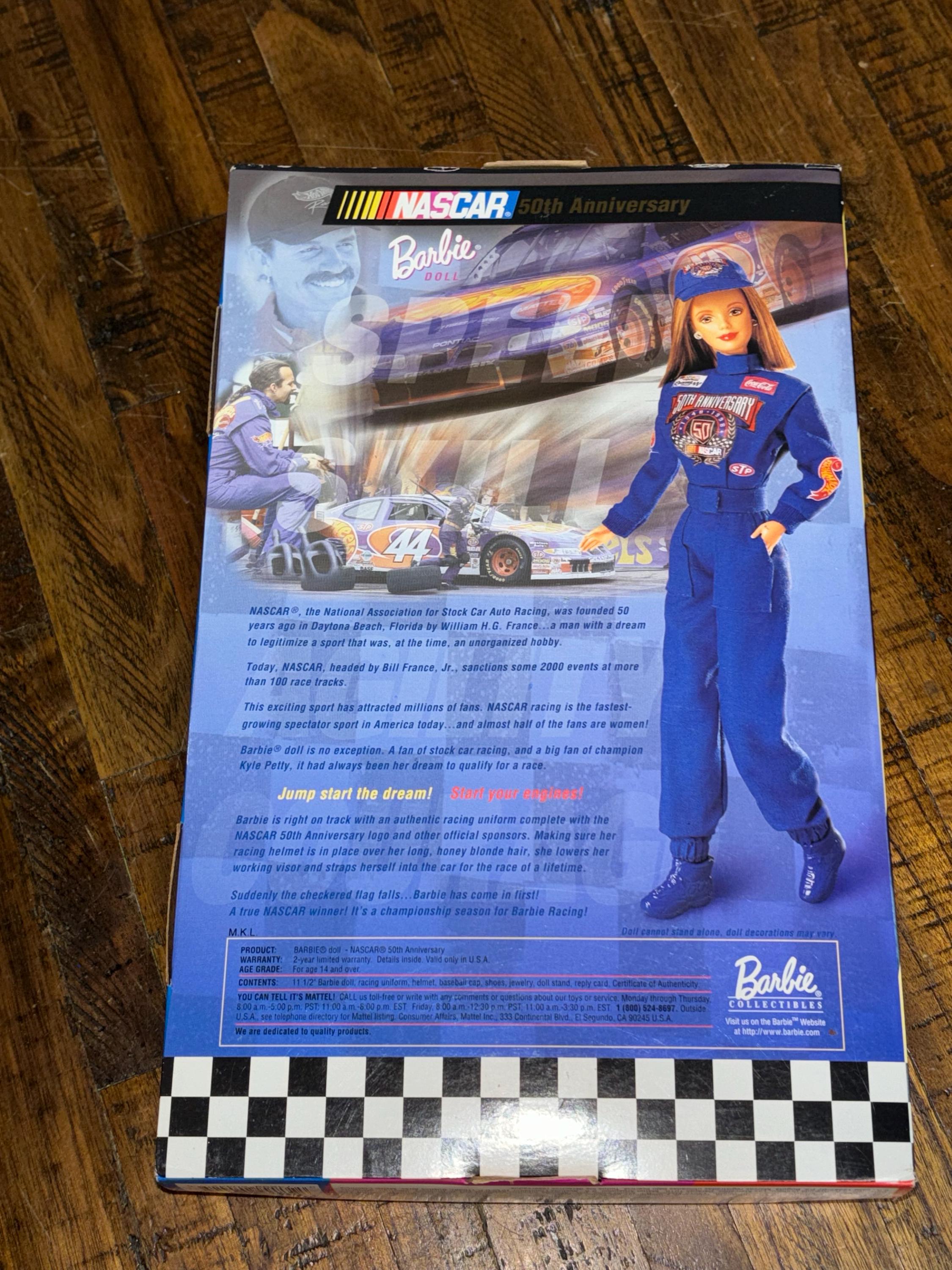 VISIT jaxinabox.com FOR ALL OUR LISTINGS!VINTAGE 1998 MATTEL BARBIE 50th ANNIVERSARY NASCAR COLLECTOR EDITION DOLL #20442