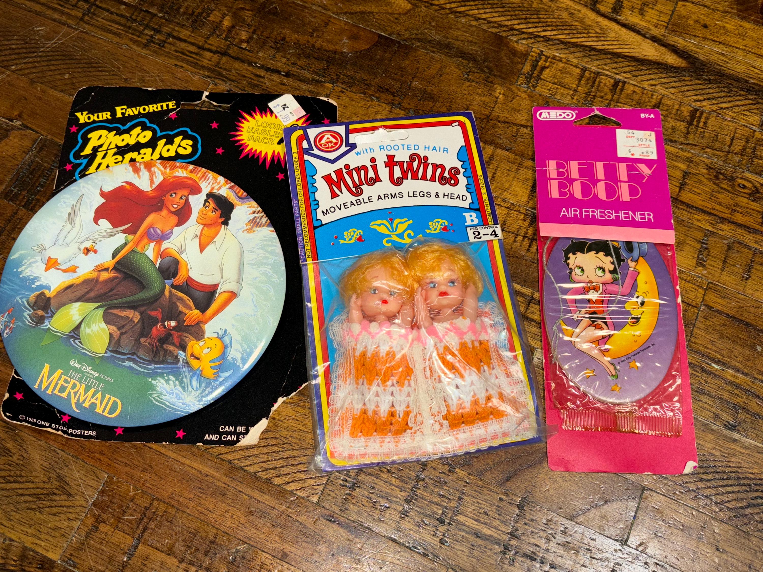 1985 Betty Bop air freshener Disney The Little Mermaid Photo Heralds Jumbo Pin 1988 Mini Twins