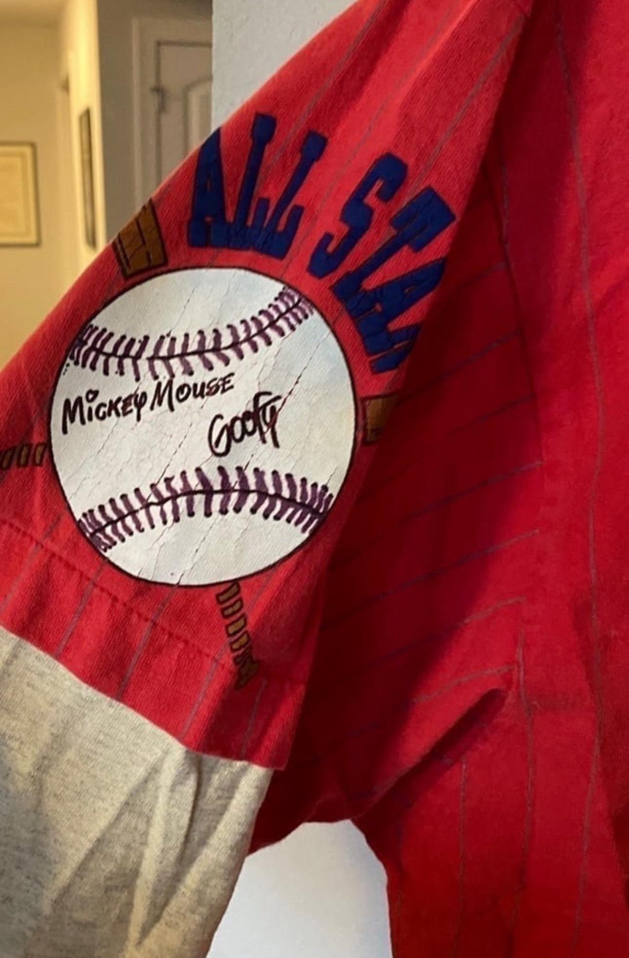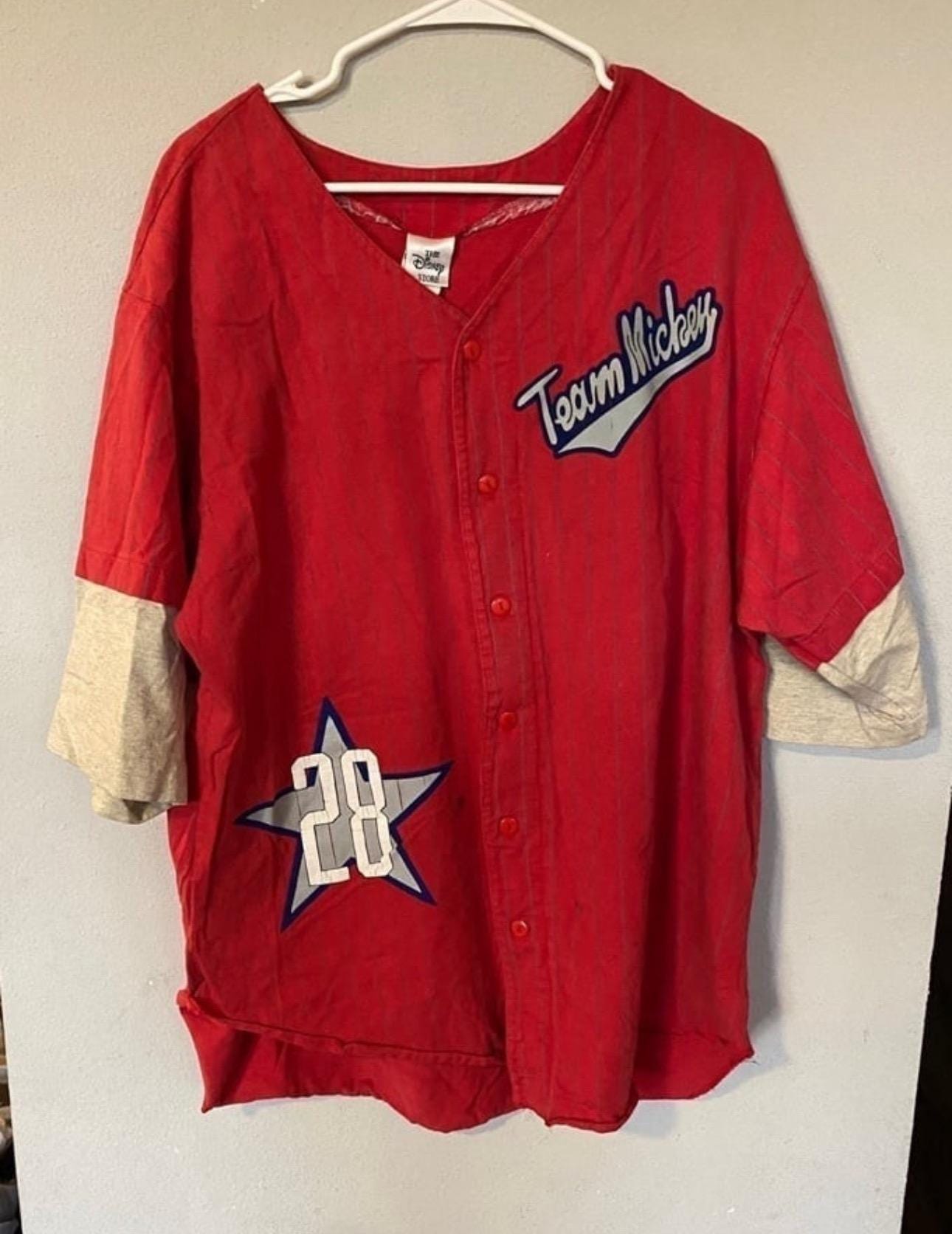 VISIT jaxinabox.com FOR ALL OUR LISTINGS!Vintage Rare Disney Studios #28 Team Mickey Mouse Goofy Red Baseball Jersey XL