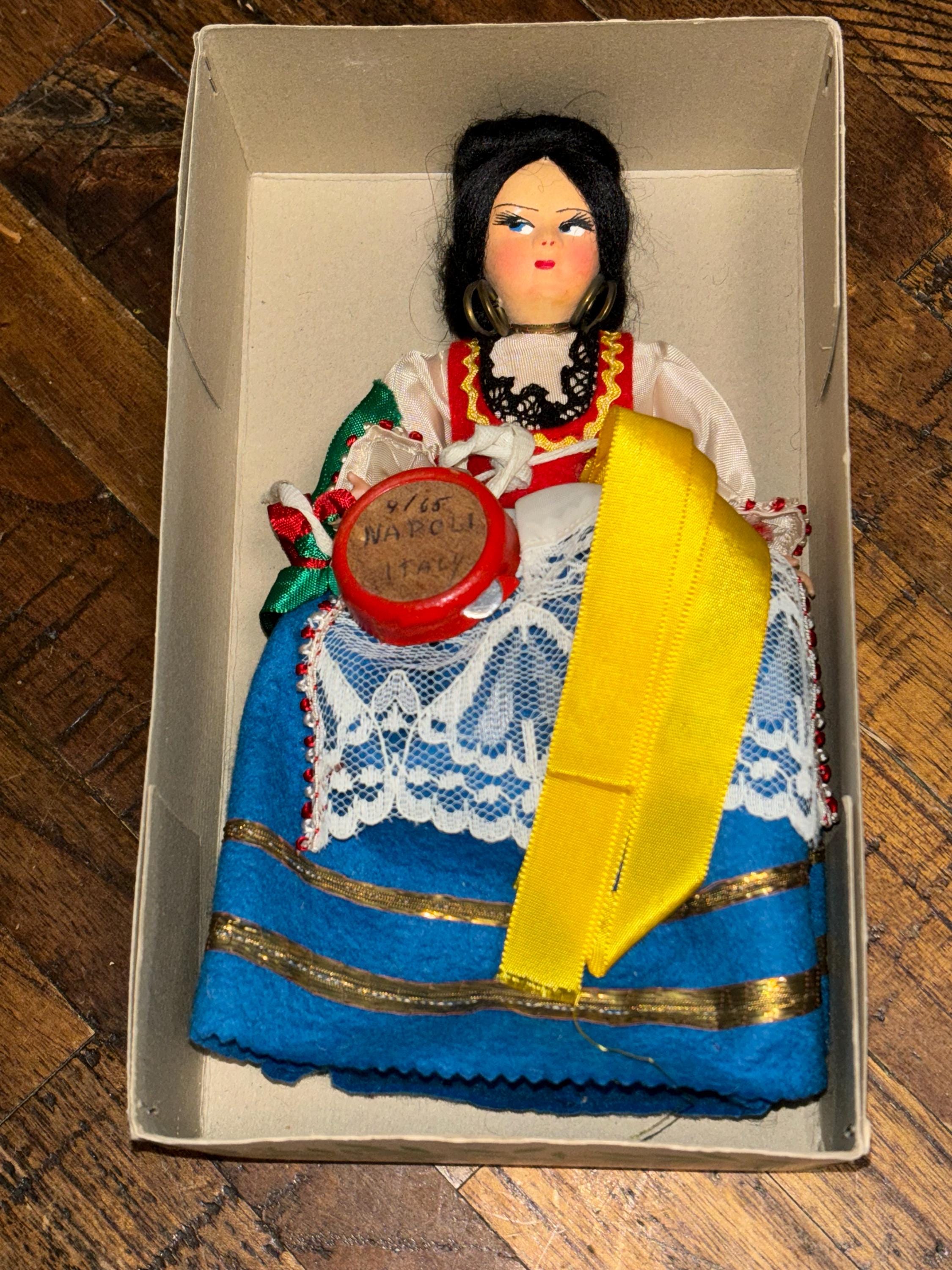 VISIT jaxinabox.com FOR ALL OUR LISTINGS!Vintage 1965 Capri Italy Doll Lela Creazioni -5 1/2” Italian Folk Costume Doll