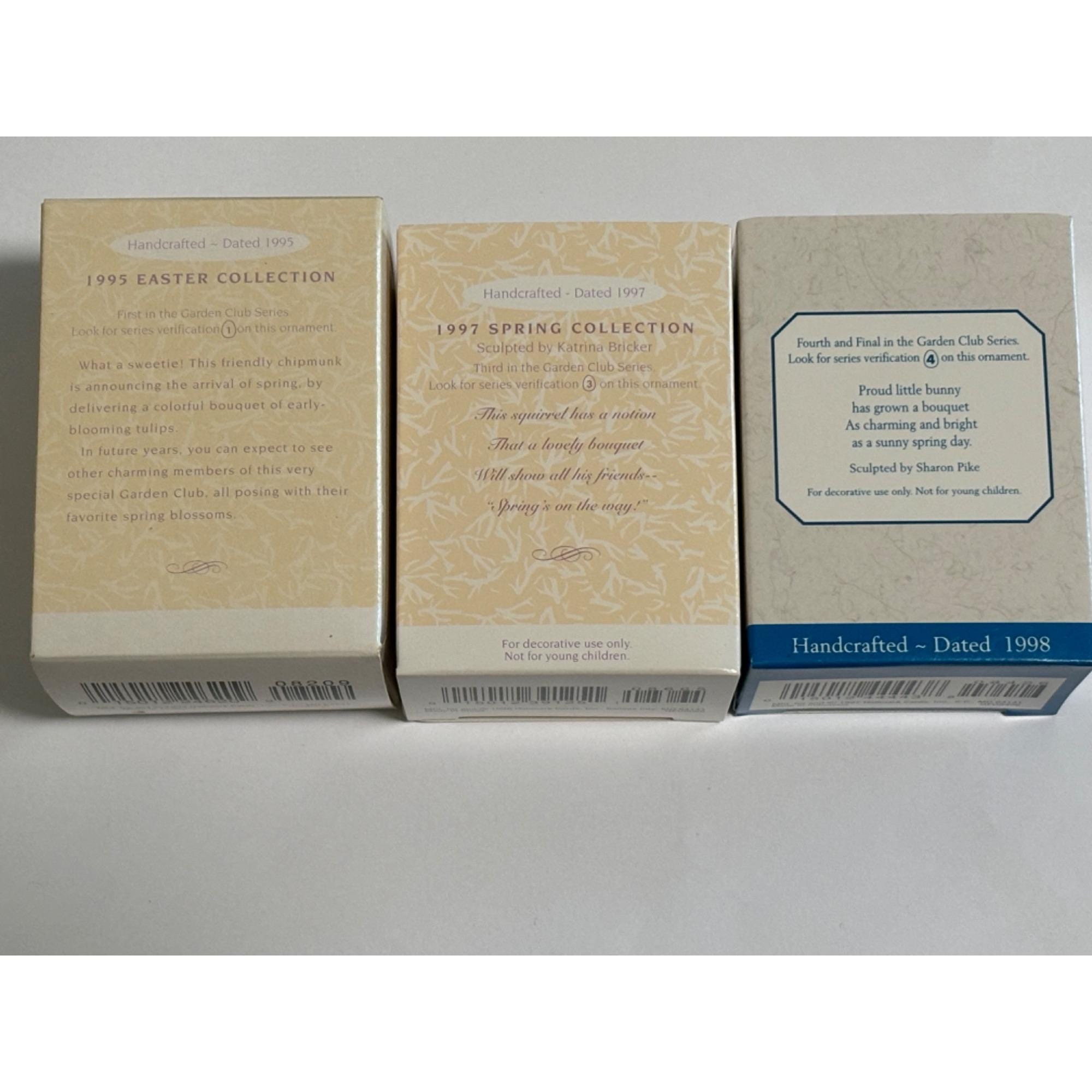 VISIT jaxinabox.com FOR ALL OUR LISTINGS!Lot of 3 Hallmark Spring Ornaments Garden Club #1 1995 #3 1997 and #4 1998