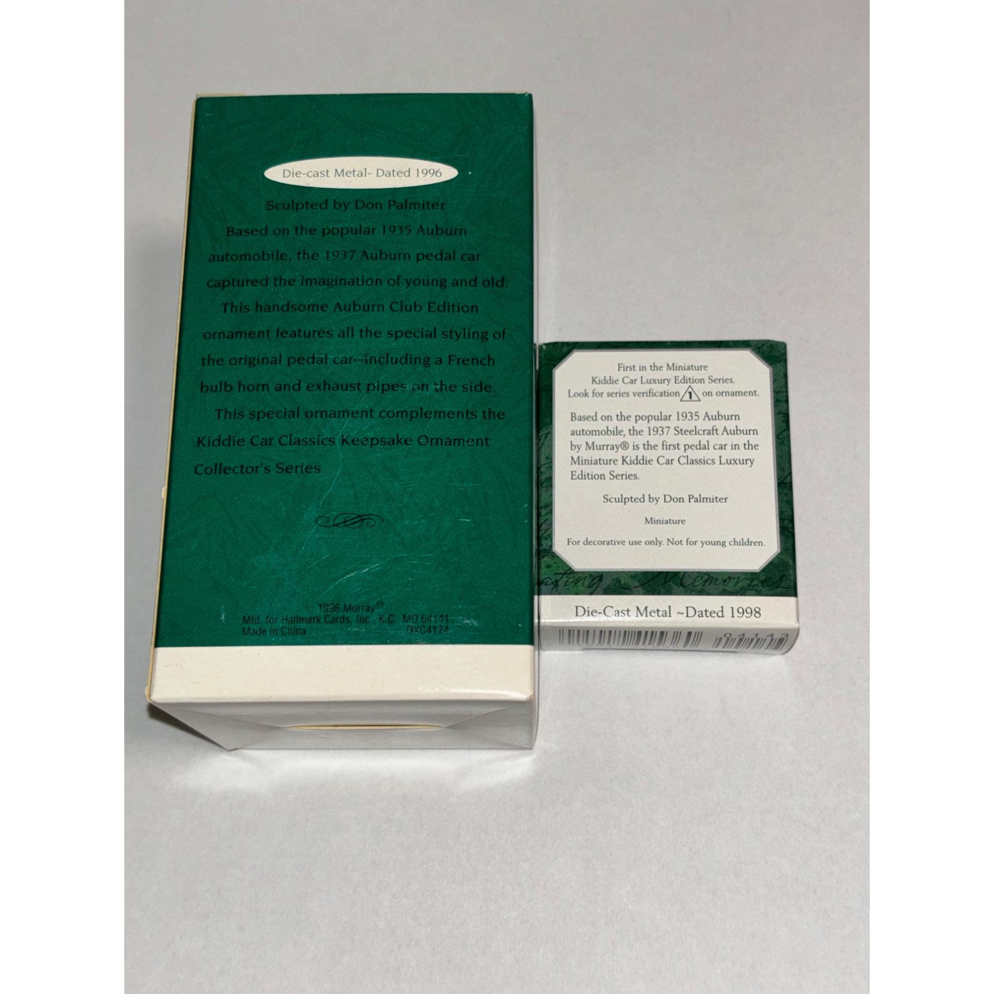 VISIT jaxinabox.com FOR ALL OUR LISTINGS!Lot of 2 Hallmark Keepsake Ornament 1937 Steelcraft Auburn 1996 normal 1998 miniature