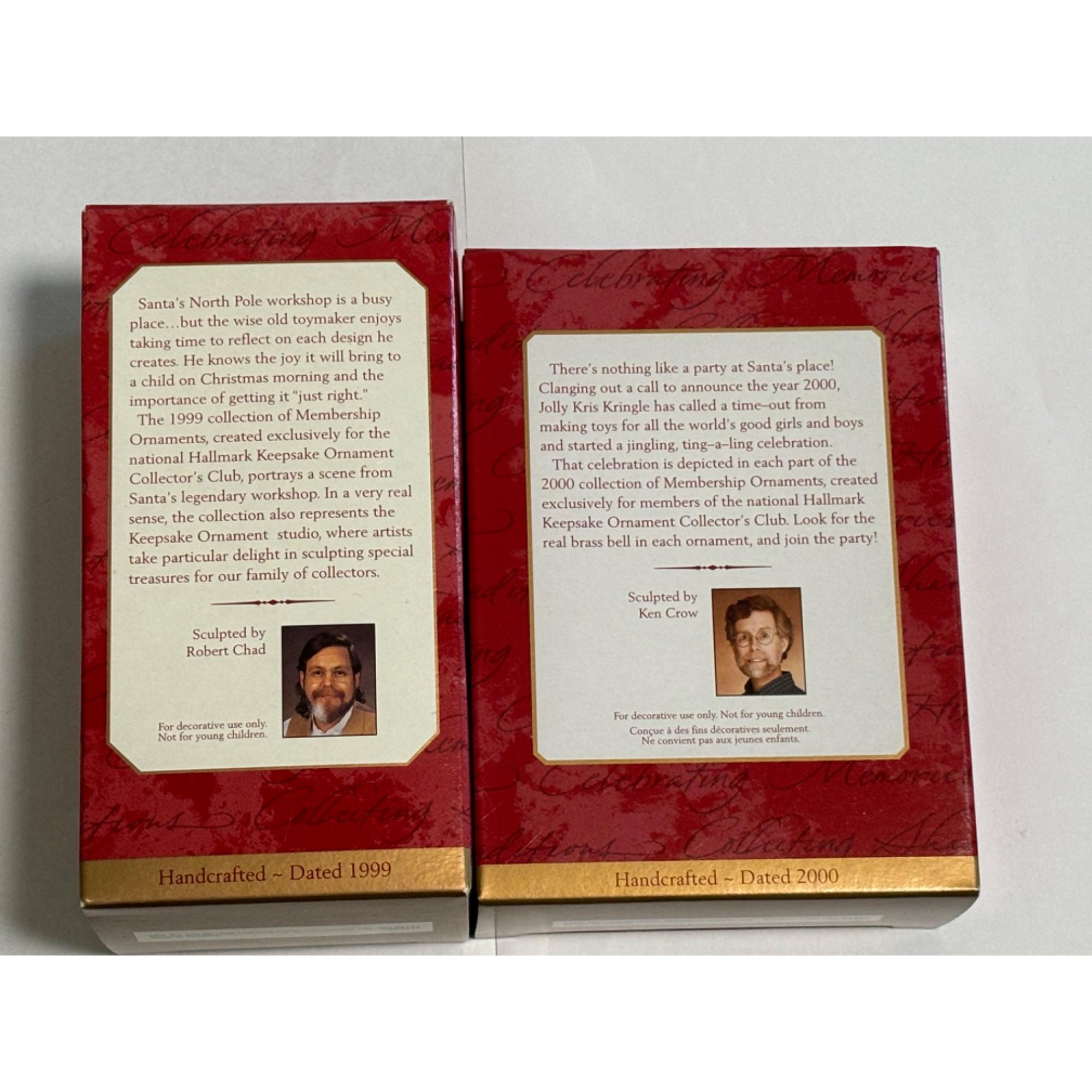 VISIT jaxinabox.com FOR ALL OUR LISTINGS!Lot of 2 Hallmark Ornaments Santa Gold Membership Ornaments 1999 and 2000