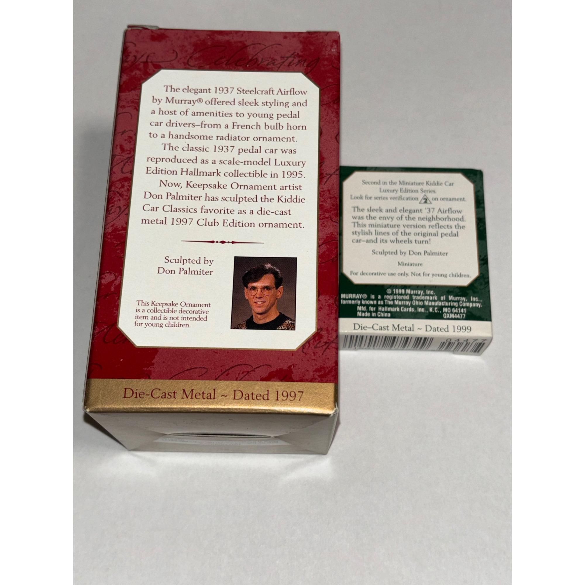 VISIT jaxinabox.com FOR ALL OUR LISTINGS!Lot of 2 Hallmark Keepsake Ornaments 1937 Steelcraft Airflow miniature 1999 and normal 1997