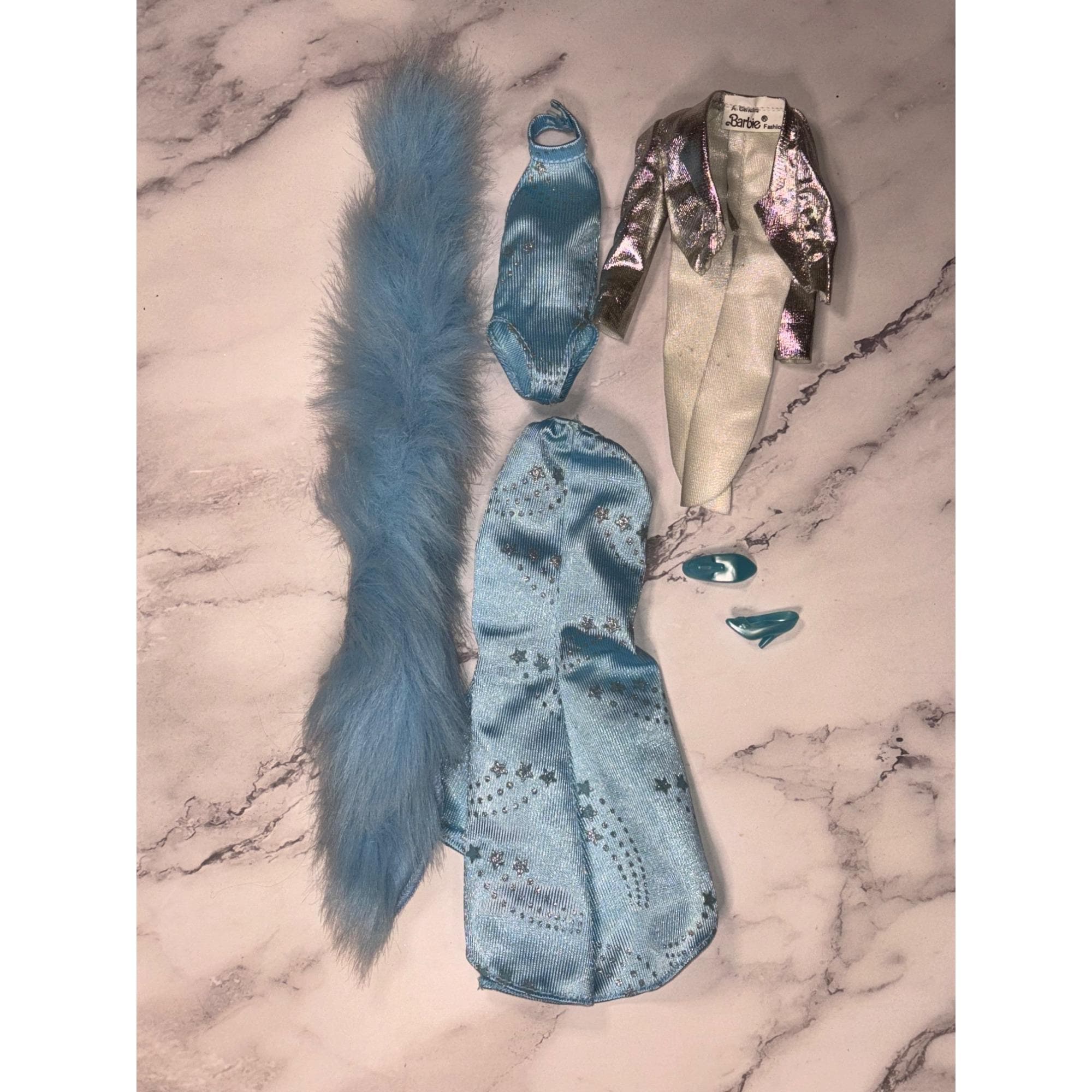 VISIT jaxinabox.com FOR ALL OUR LISTINGS!Vintage 1988 Barbie Super Star Broadway Star Dress Blue Outfit Fur Wrap 3308