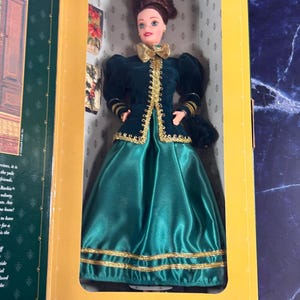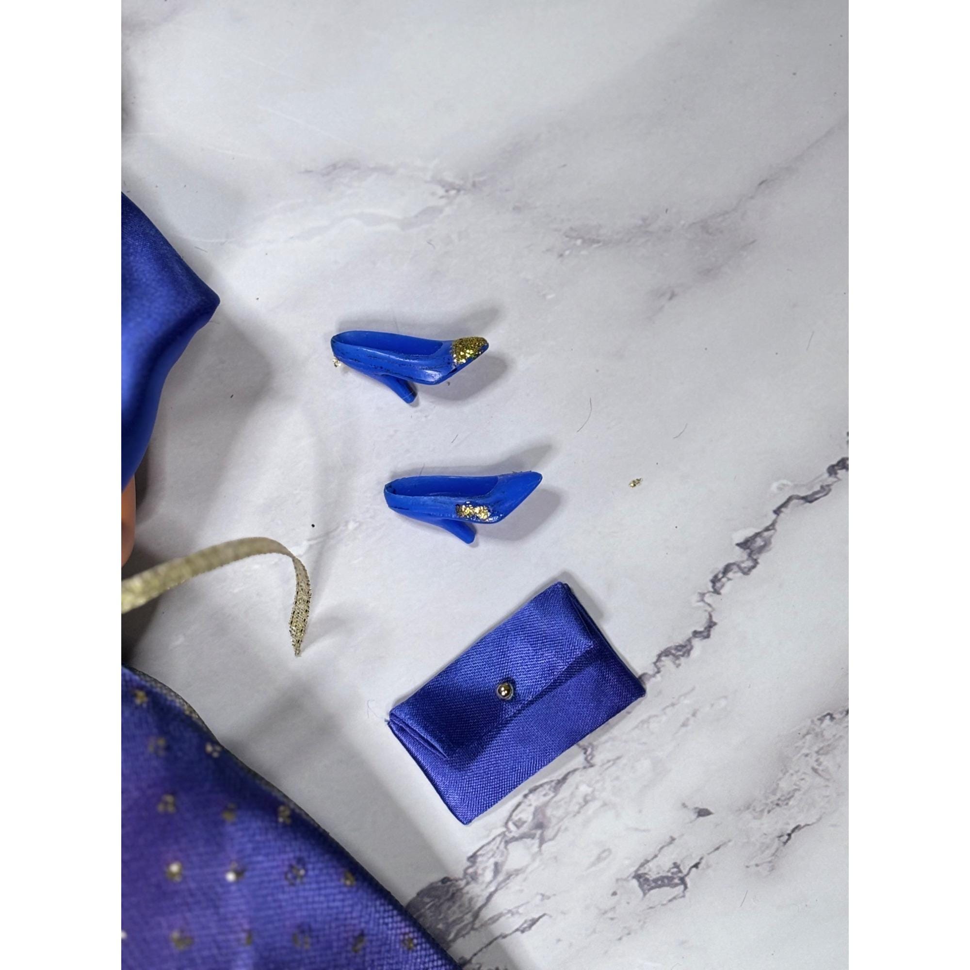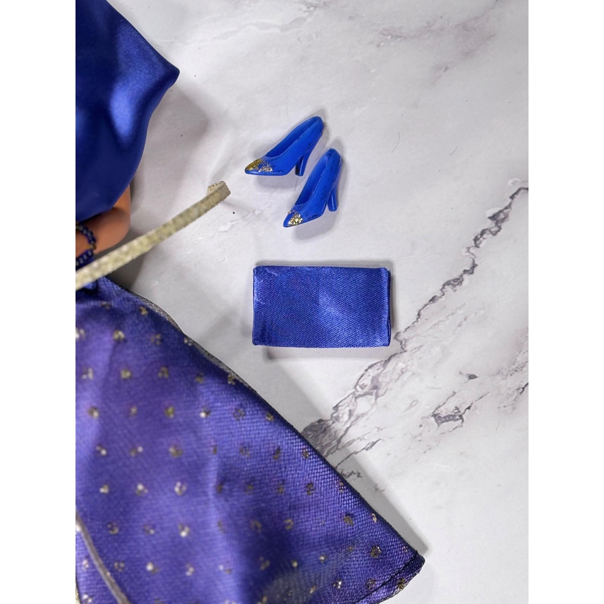 VISIT jaxinabox.com FOR ALL OUR LISTINGS!Purple Gold Dress Brunette Hair Barbie Doll glitter Shoes Scarf Wrap Shawl Purse
