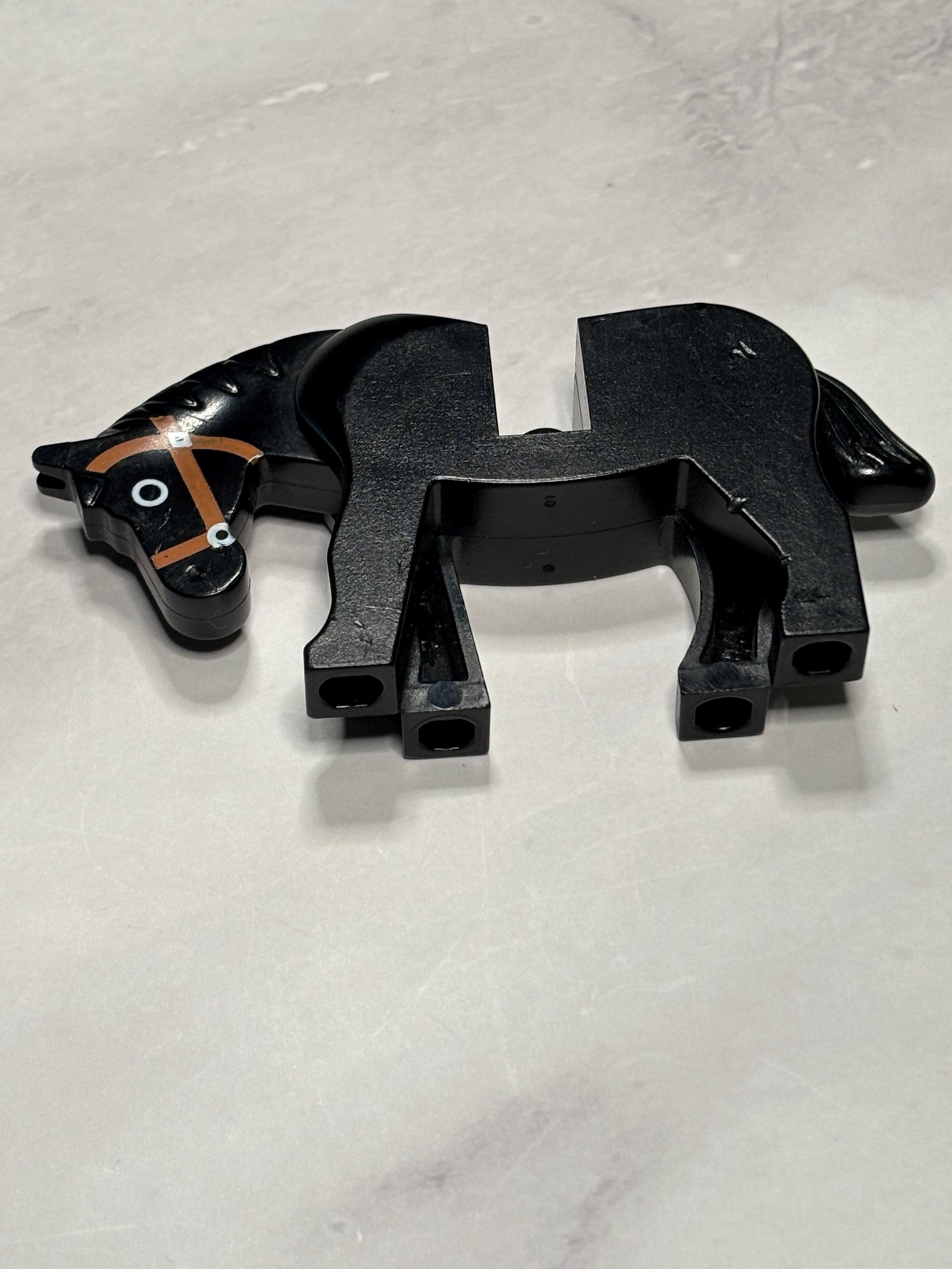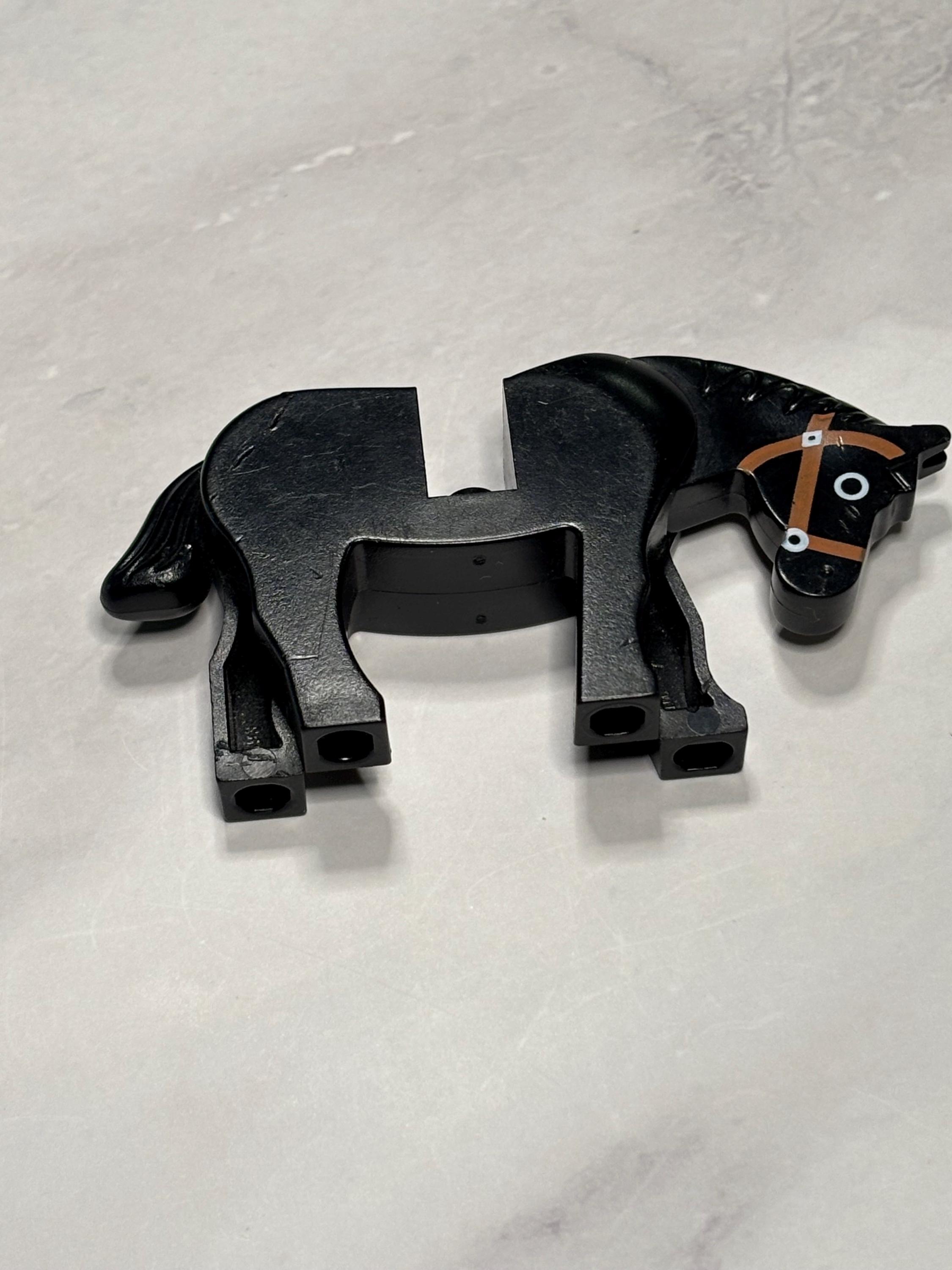 VISIT jaxinabox.com FOR ALL OUR LISTINGS!LEGO 4493c01pb02 Black Horse With White Eyes Outlines & Brown Bridle Pattern
