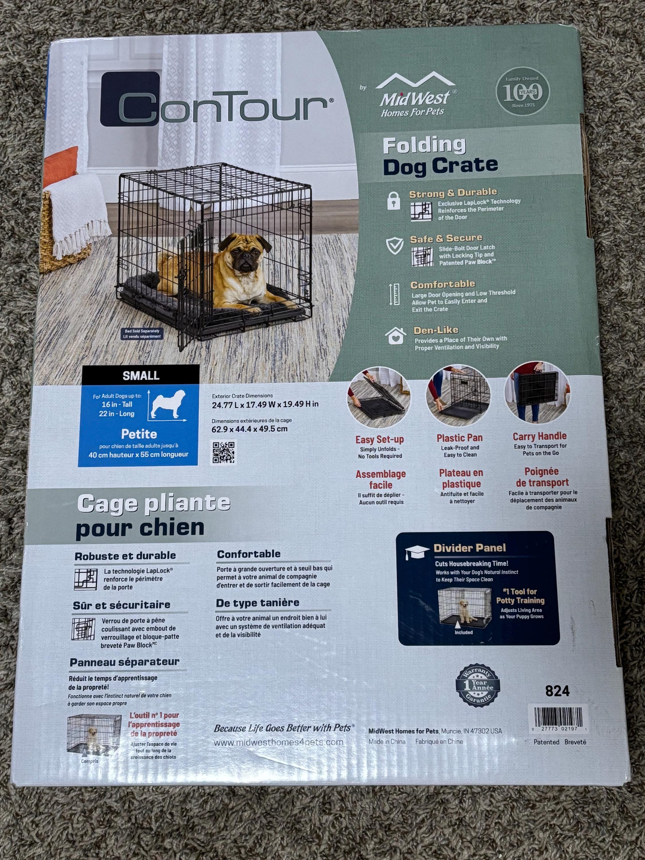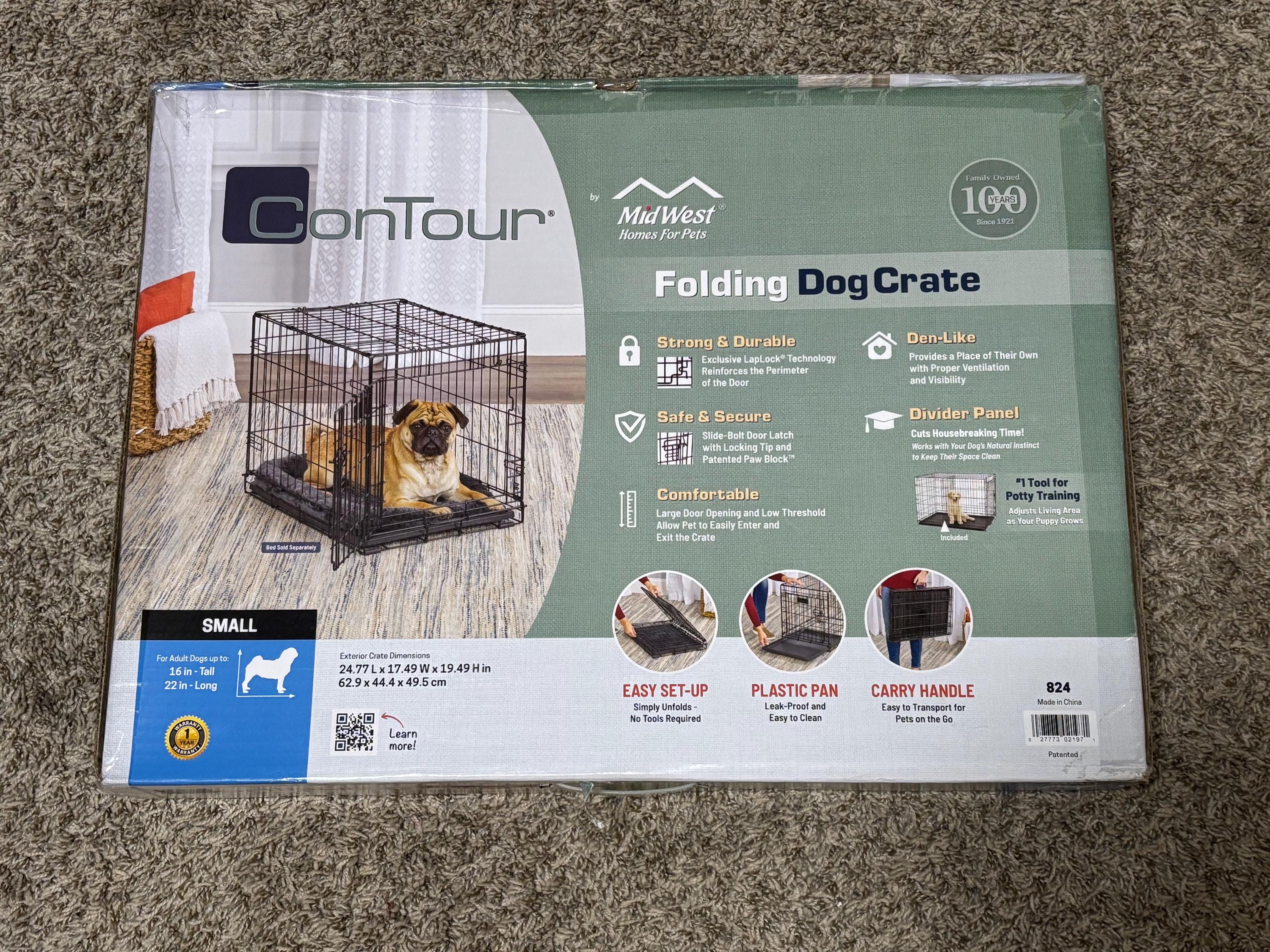 VISIT jaxinabox.com FOR ALL OUR LISTINGS!Contour 824 Satin Black Electro-Coat 1-Door Folding Dog Crate fits 16x22 dog