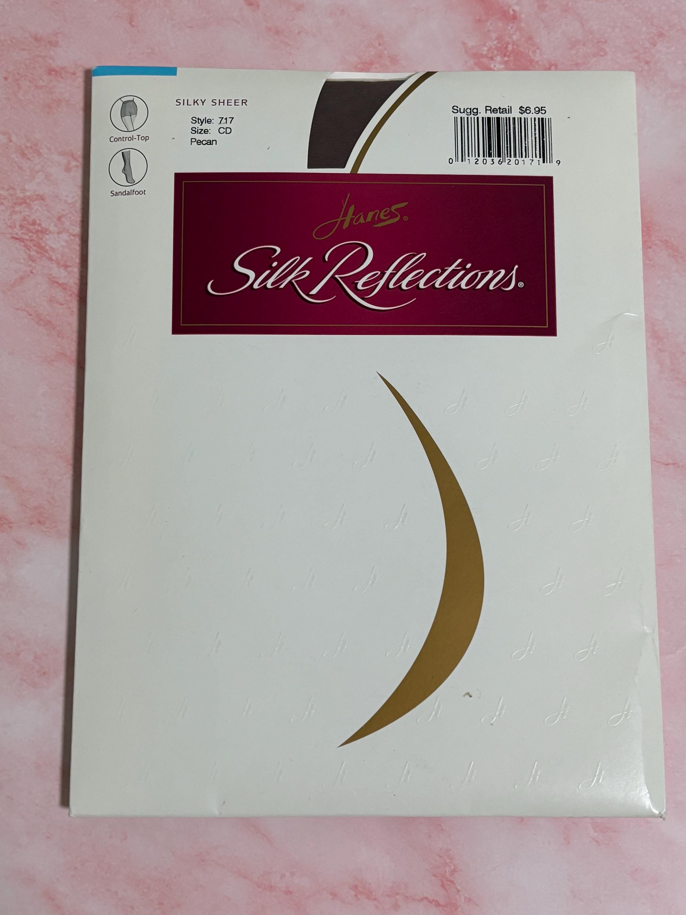 VISIT jaxinabox.com FOR ALL OUR LISTINGS!Vtg Hanes Silk Reflections 717 CD Silky Control Top Sandalfoot Pantyhose Pecan
