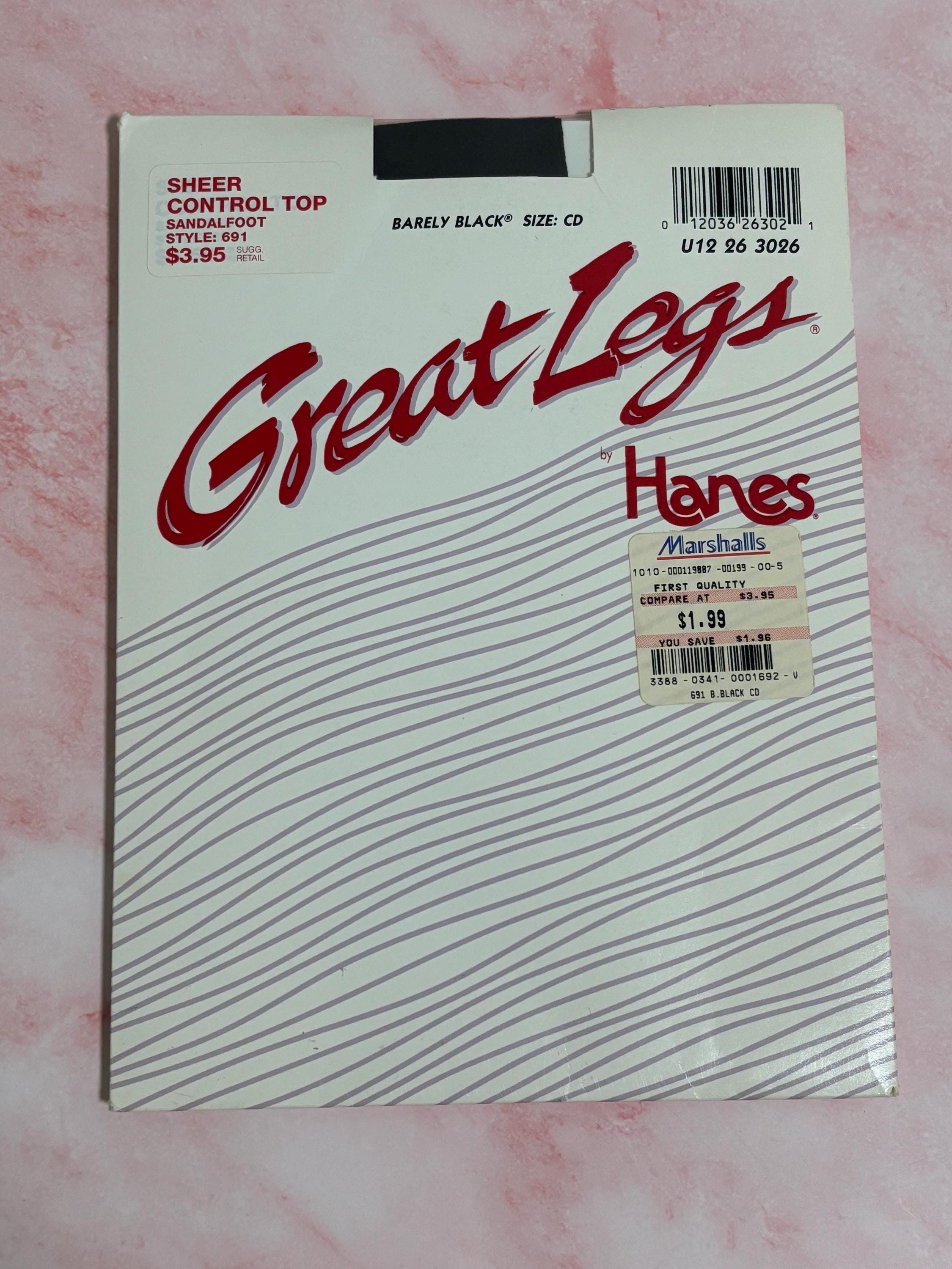 VISIT jaxinabox.com FOR ALL OUR LISTINGS!Hanes Great Legs Pantyhose Barely Black 691 Sheer Control Top Sandalfoot CD