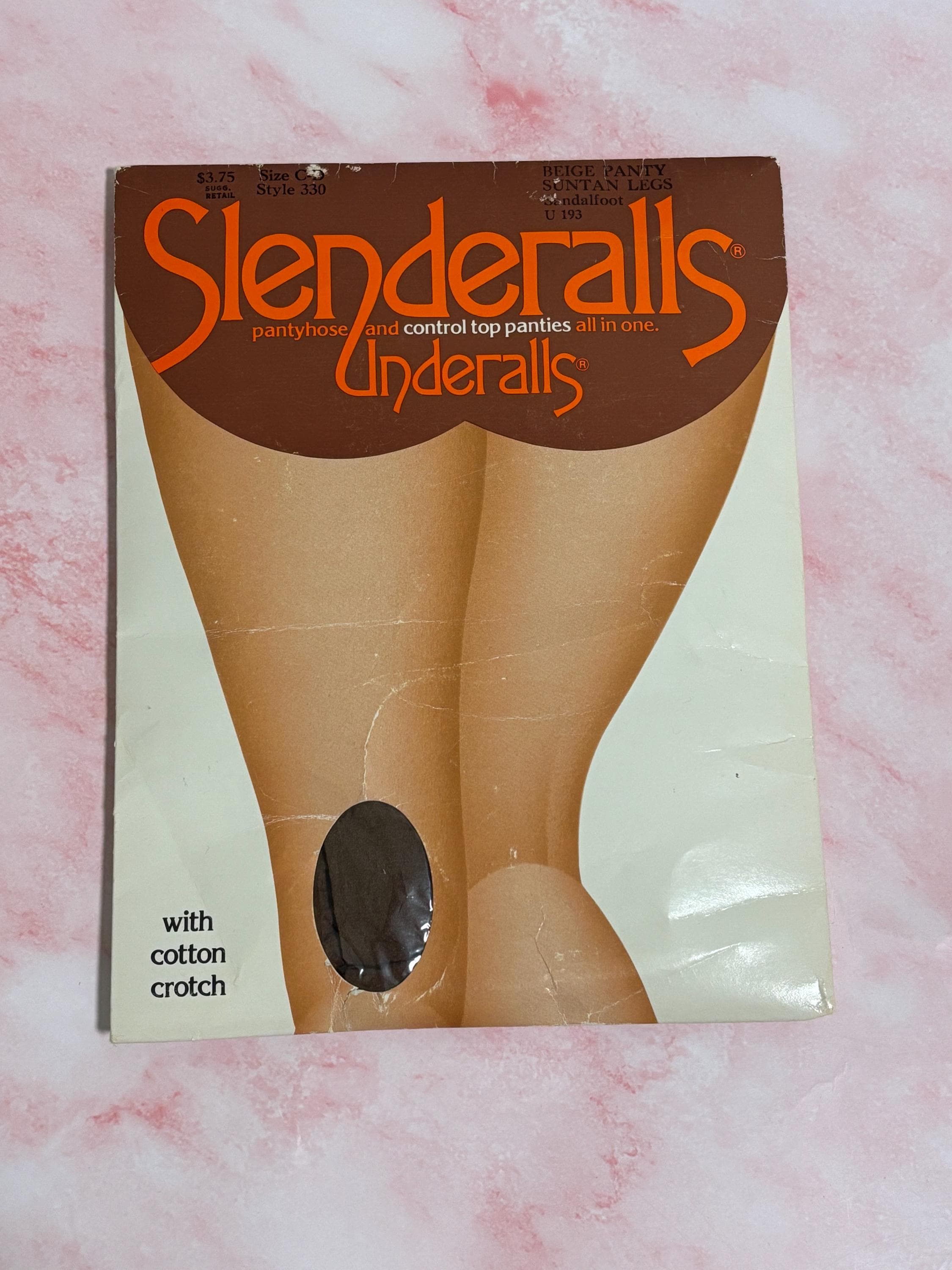 VISIT jaxinabox.com FOR ALL OUR LISTINGS!Vintage 1980 Slenderalls Pantyhose #330 Size C-D Suntan Legs & Beige Brief