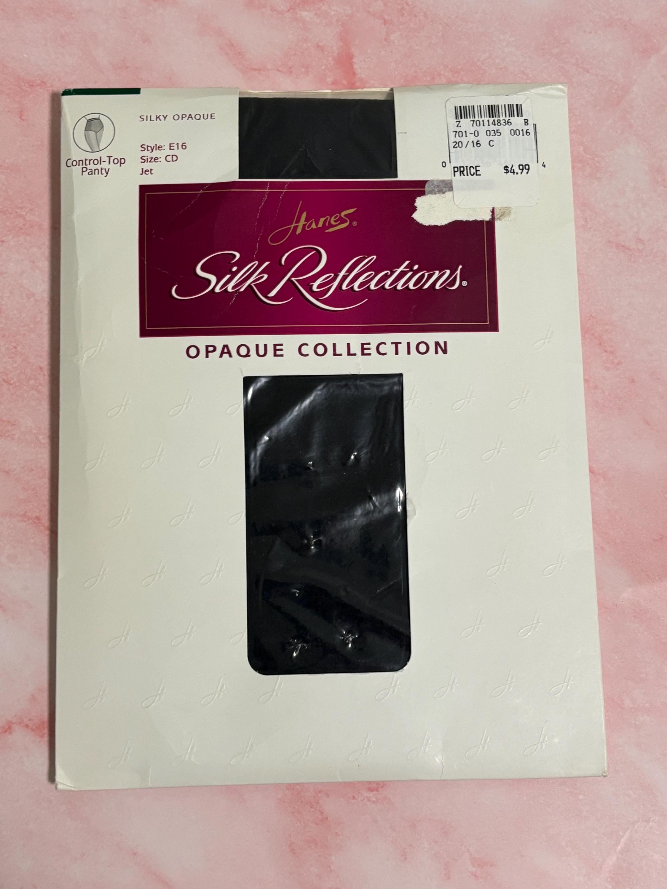 VISIT jaxinabox.com FOR ALL OUR LISTINGS!VTG Hanes Silk Reflections Pantyhose Opaque Collection E16 CD Jet