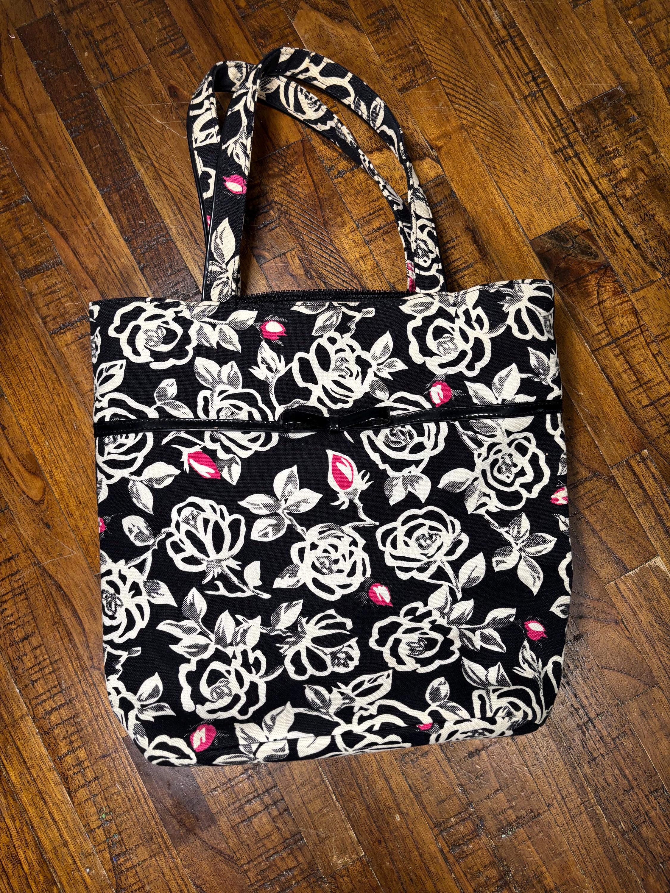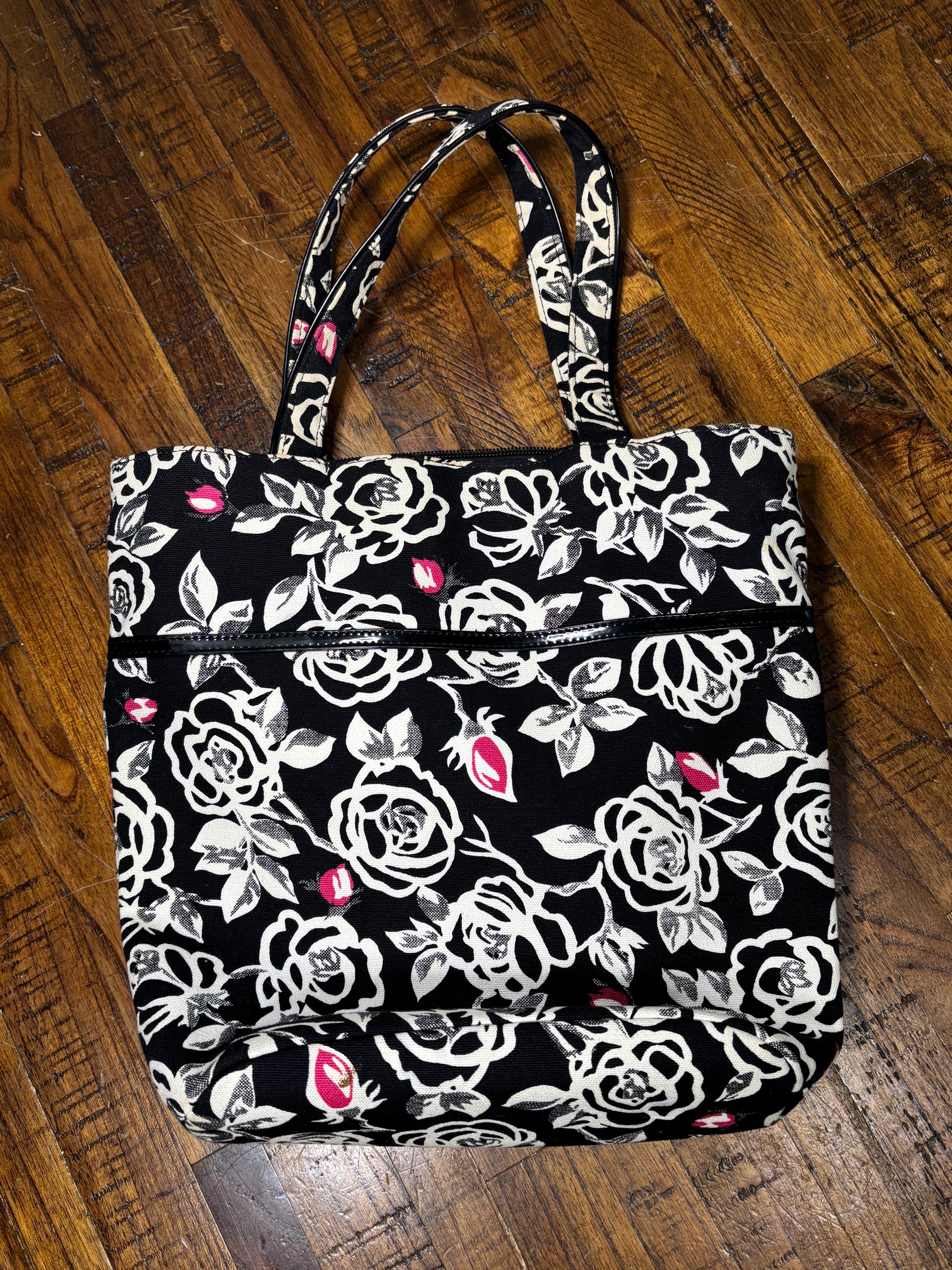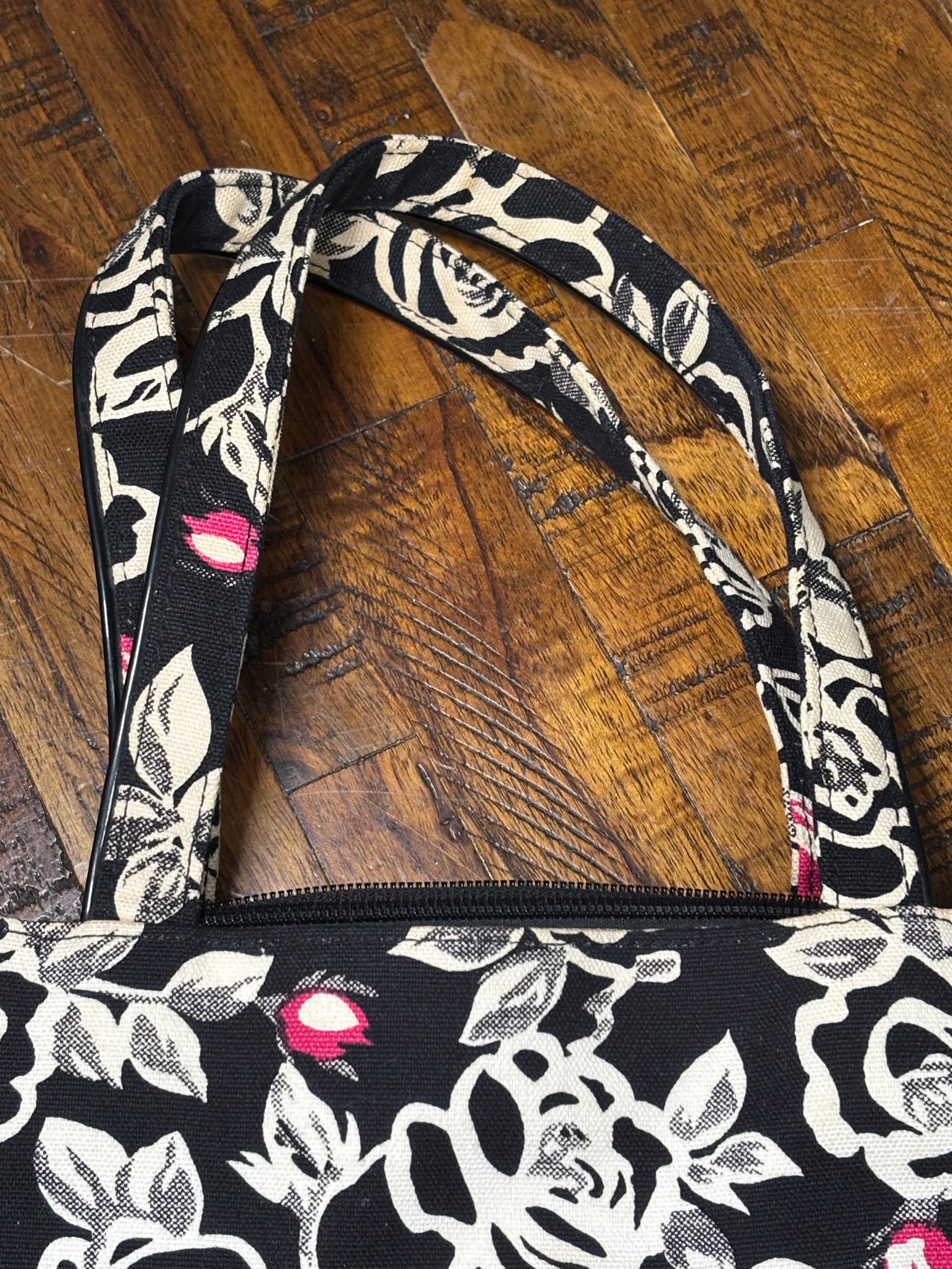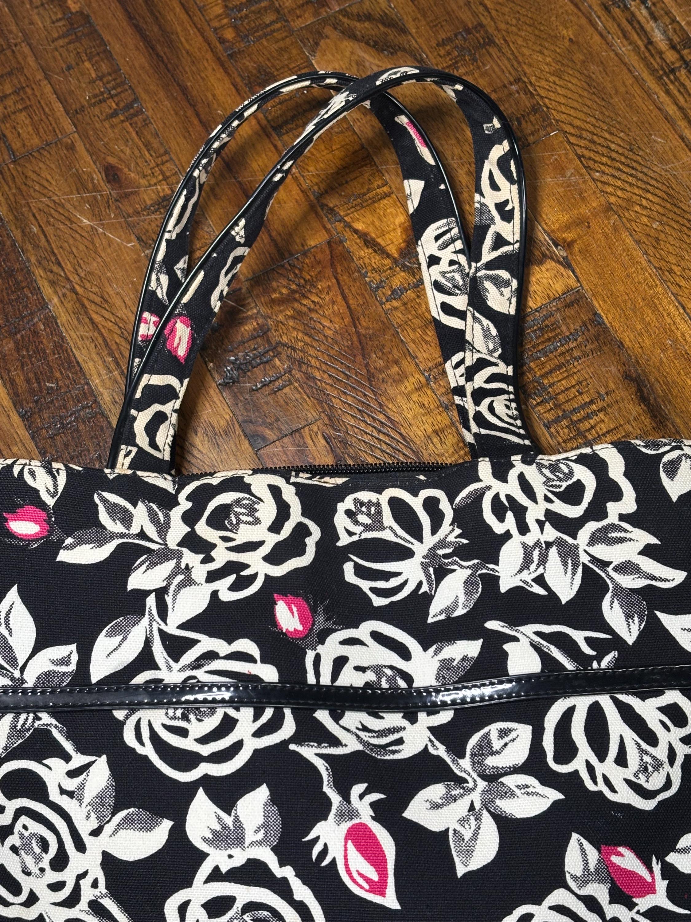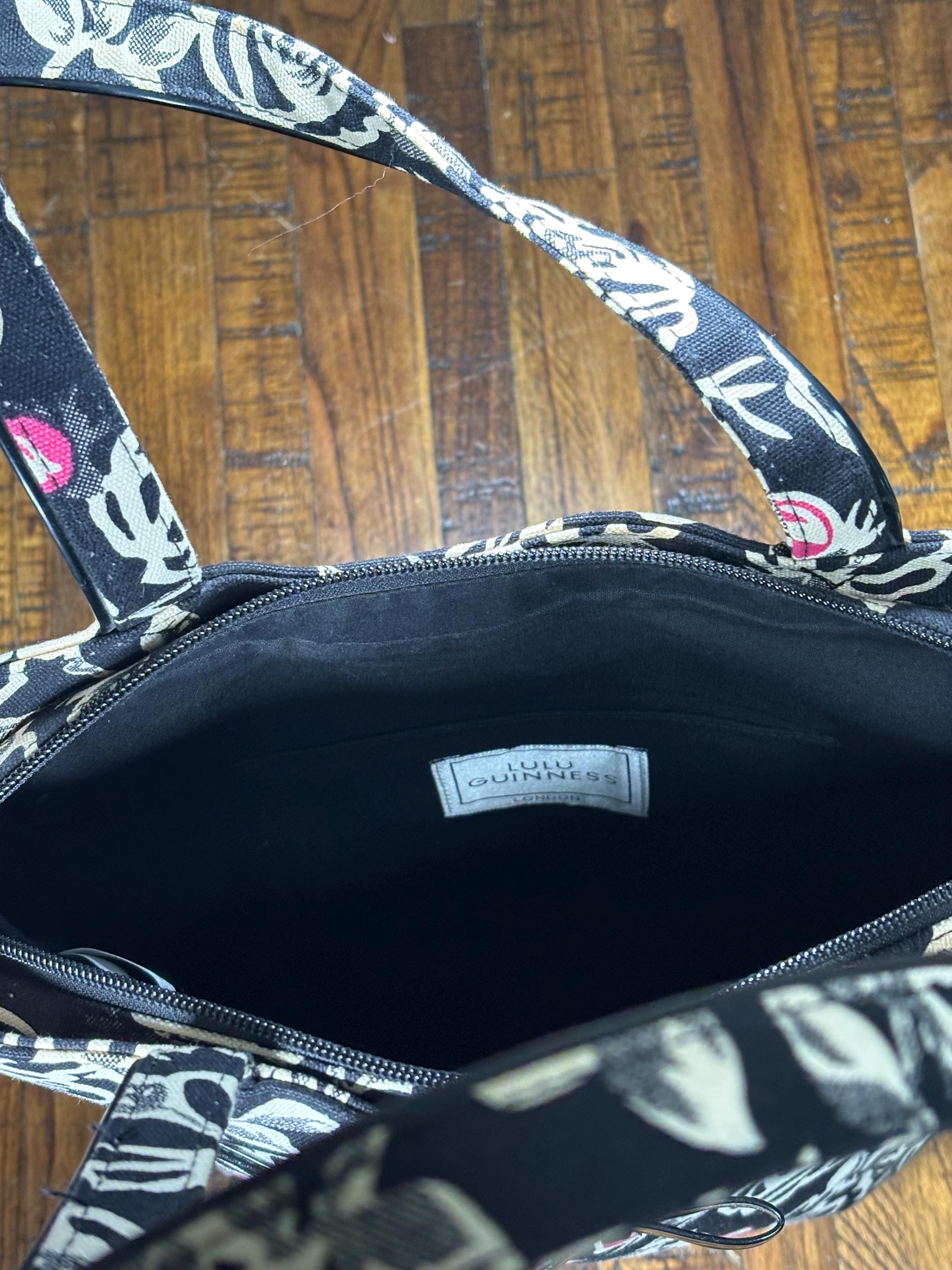 VISIT jaxinabox.com FOR ALL OUR LISTINGS!Vintage Lulu Guinness London Floral Handbag Tote Satchel Bag Black White