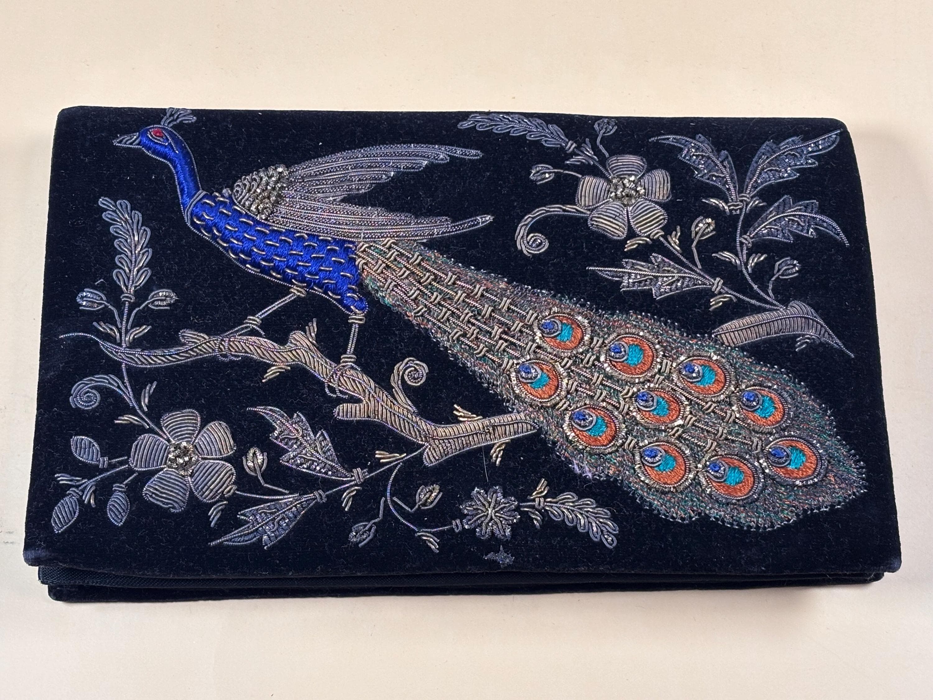 VISIT jaxinabox.com FOR ALL OUR LISTINGS!Vintage Zardozi Evening Purse-Late Deco Zardozi Embroidered Peacock Clutch Bag