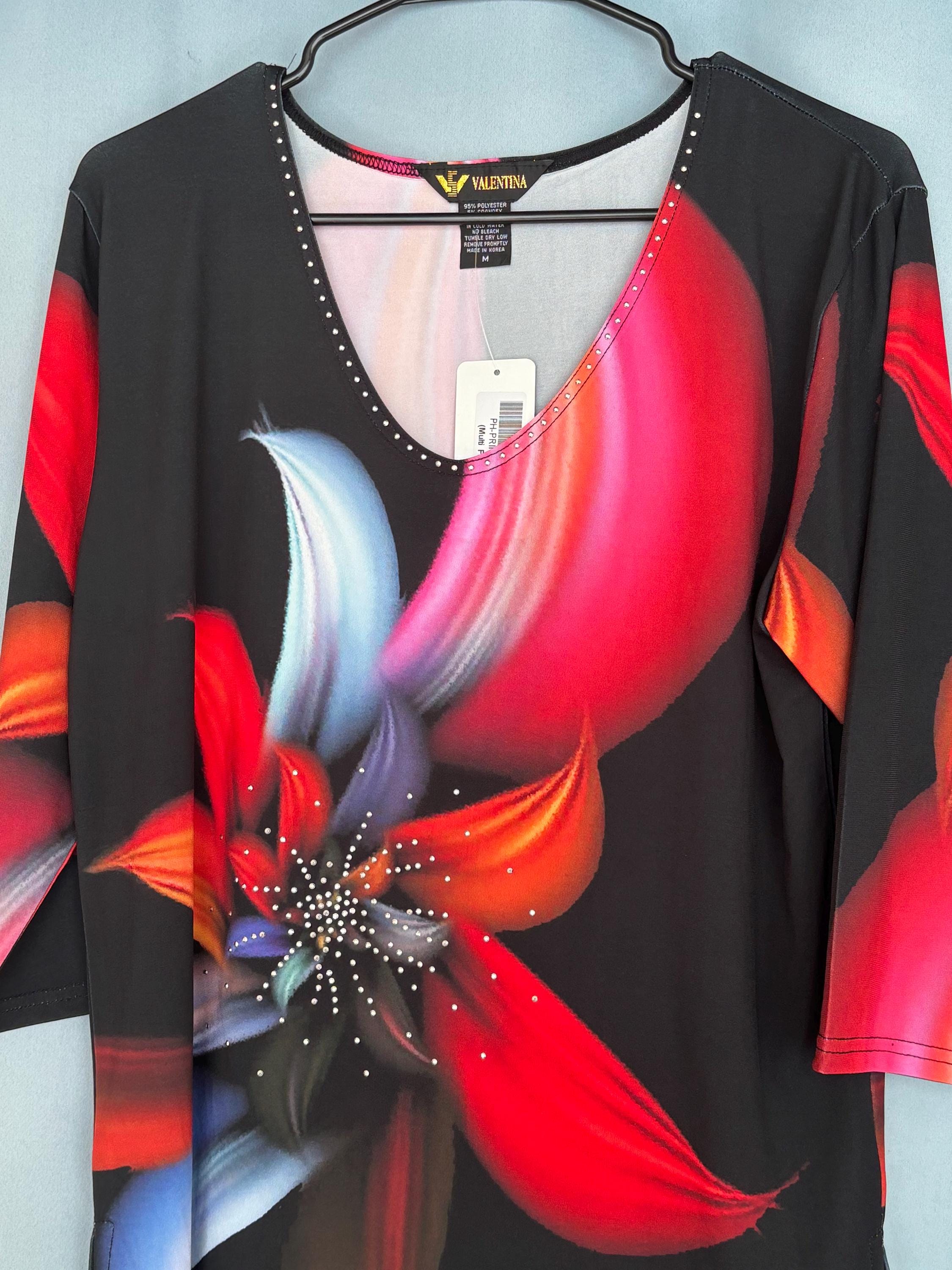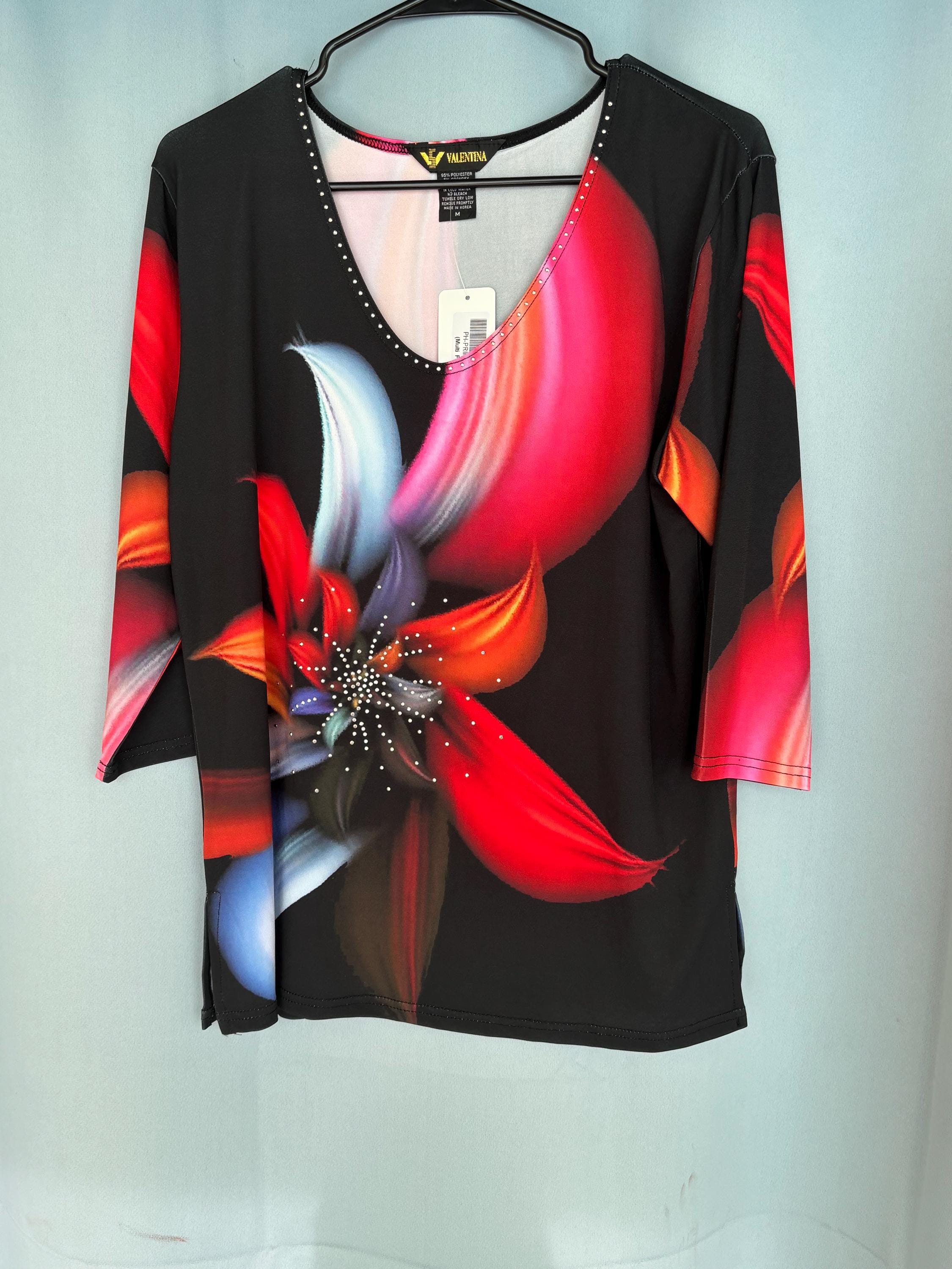 VISIT jaxinabox.com FOR ALL OUR LISTINGS!Valentina PH-22876 Multi Floral Star Top Blouse Shirt Medium New