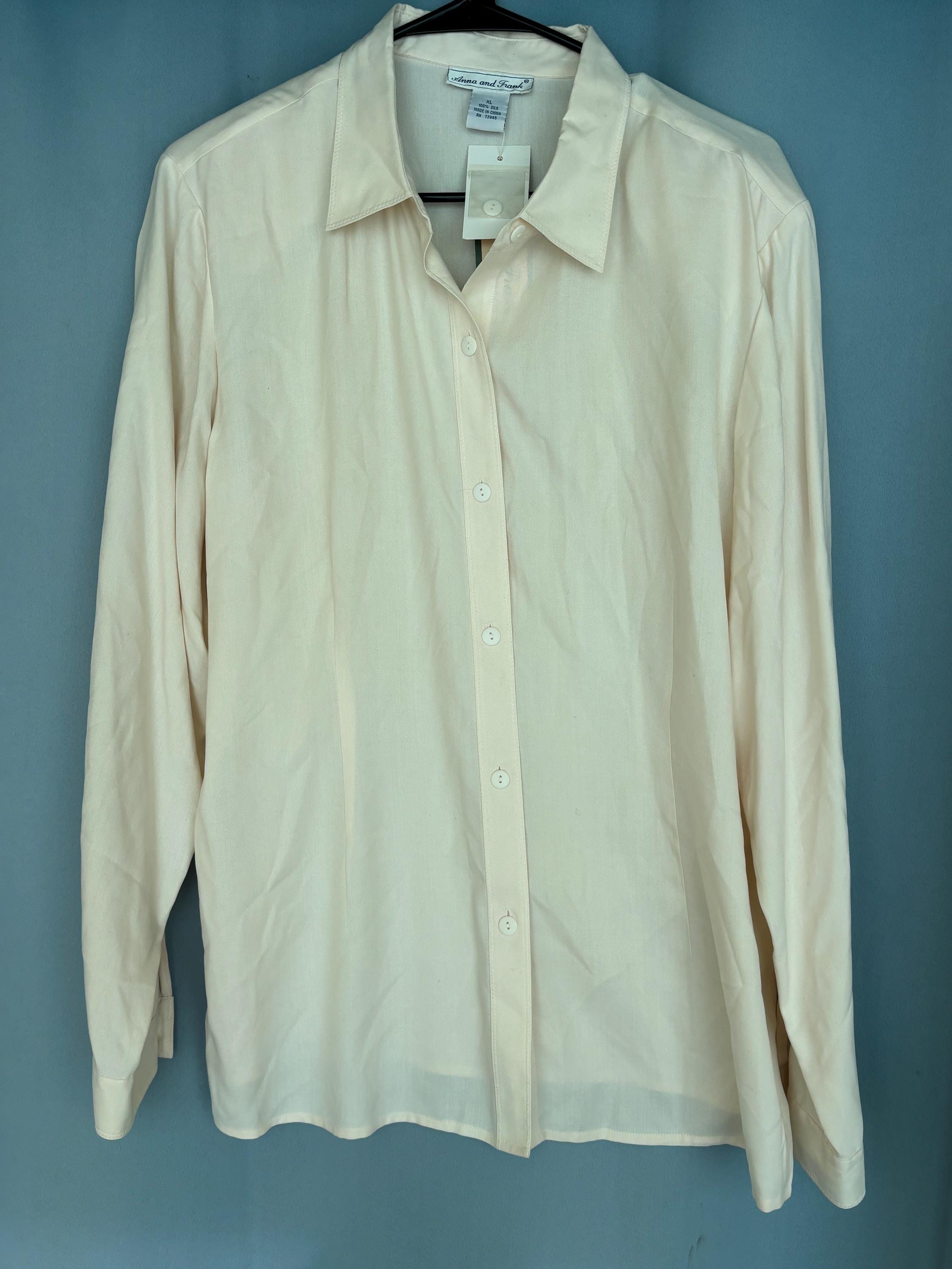 VISIT jaxinabox.com FOR ALL OUR LISTINGS!Anna and Frank Cream Ivory Pullover Blouse Shirt Women's Size XL New with shoulder pads