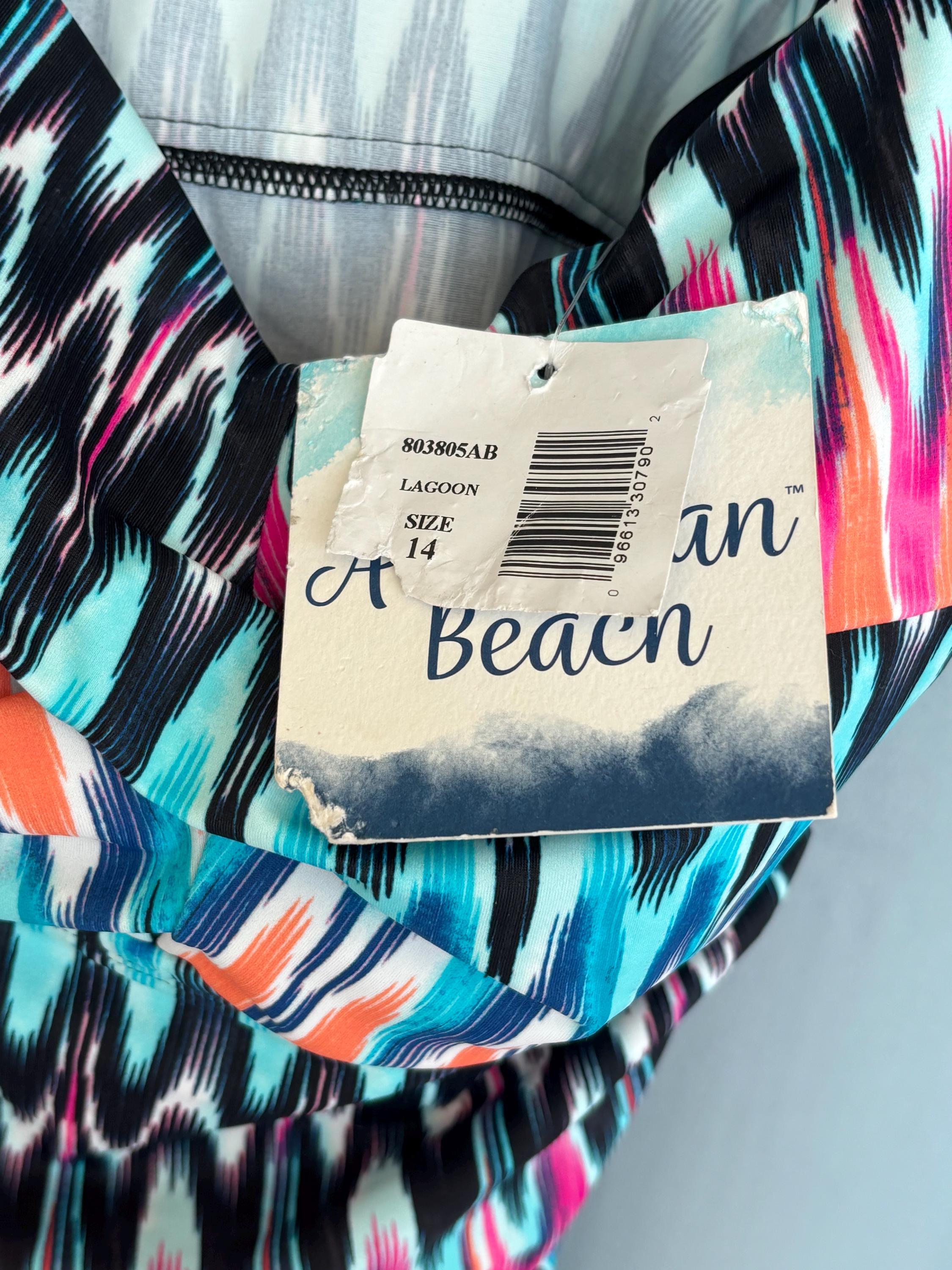 VISIT jaxinabox.com FOR ALL OUR LISTINGS!American Beach Lagoon Multi Color Swim Top Suit Size 14 NWT