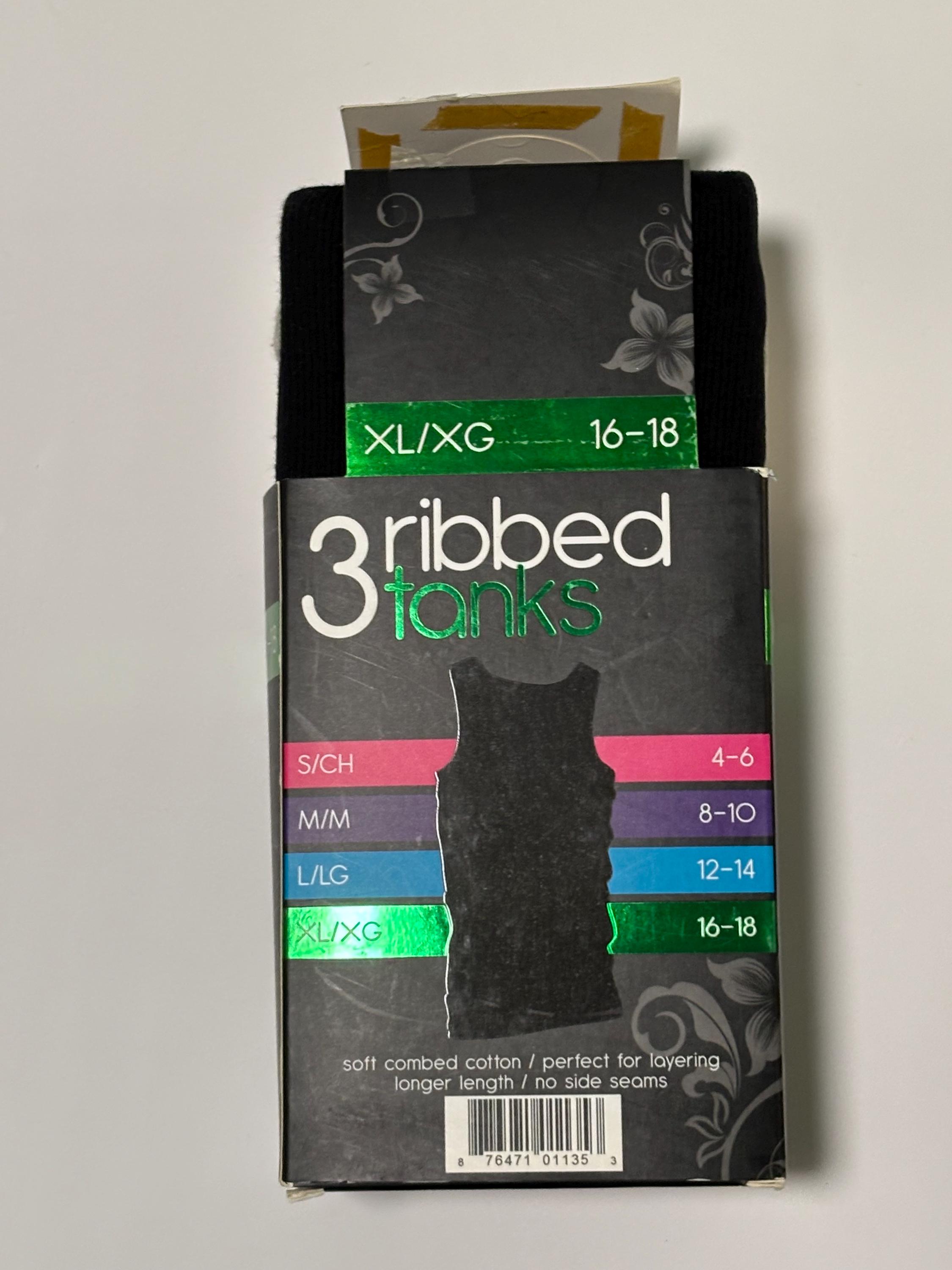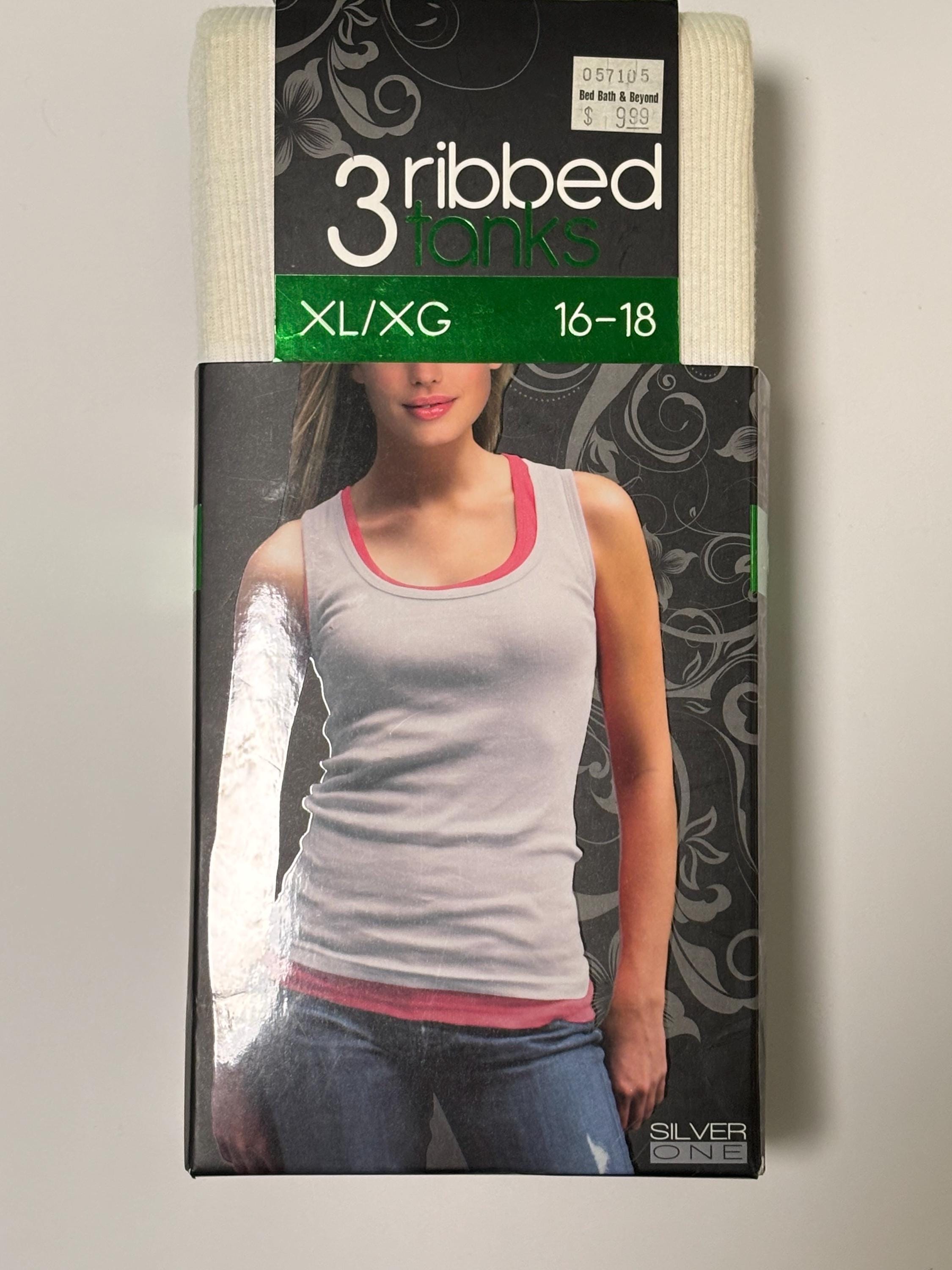 VISIT jaxinabox.com FOR ALL OUR LISTINGS!Silver One Set of 3 Ribbed Tanks XL 16-18 White Grey Black NWT