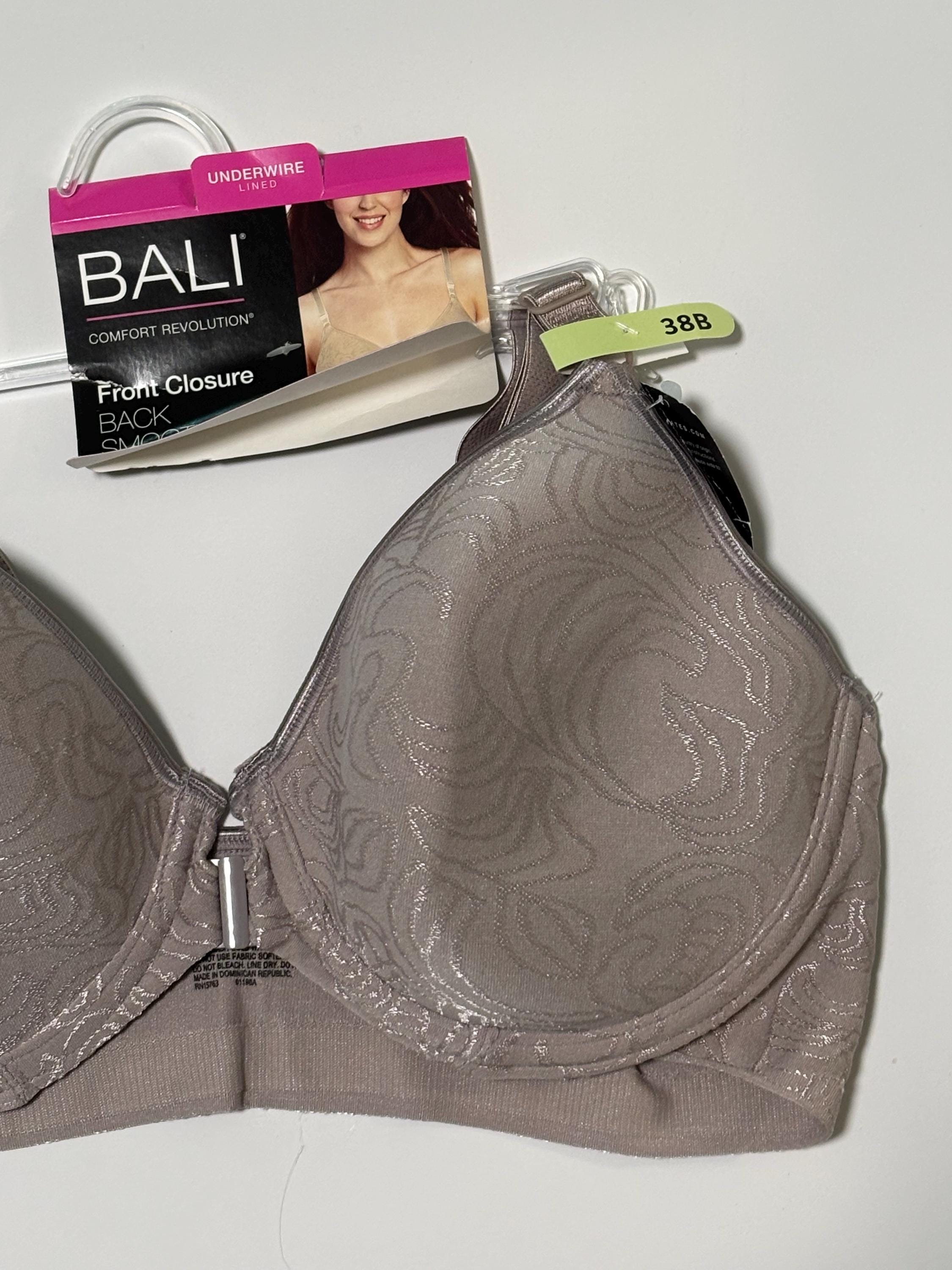 VISIT jaxinabox.com FOR ALL OUR LISTINGS!Bali bra Front Closure 38B underwire style 3P66 Comfort warm steel NWT