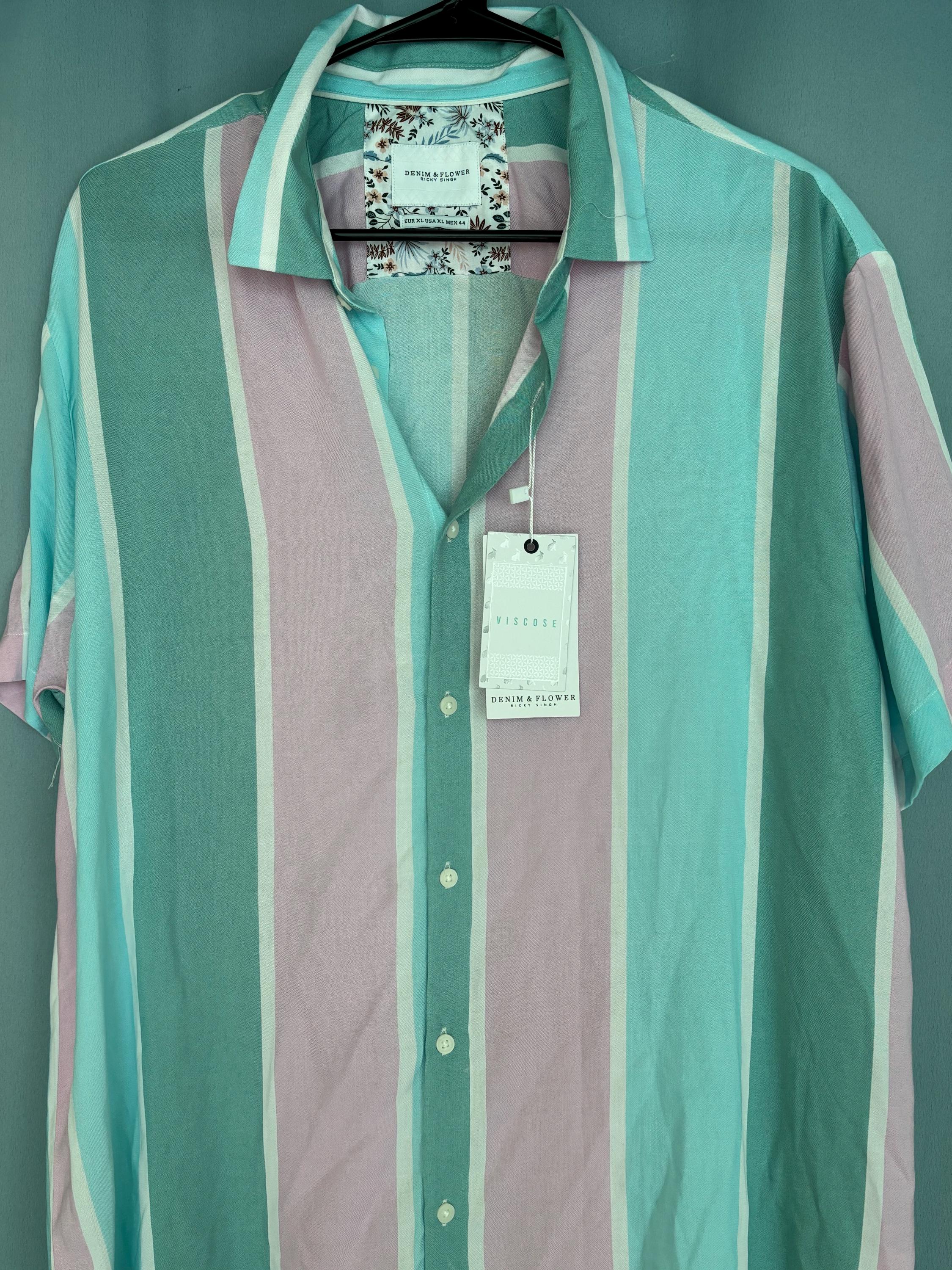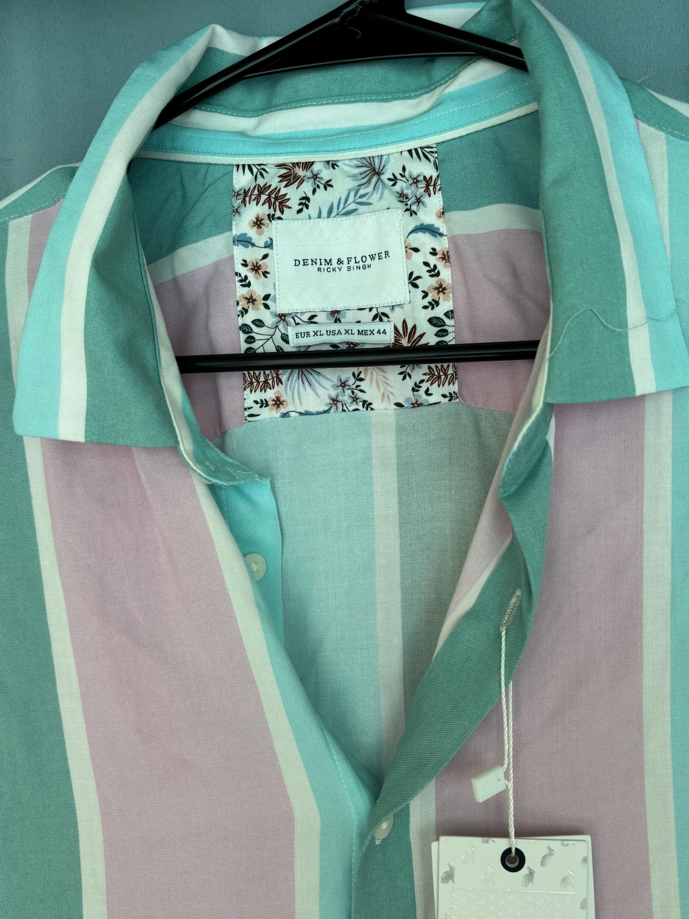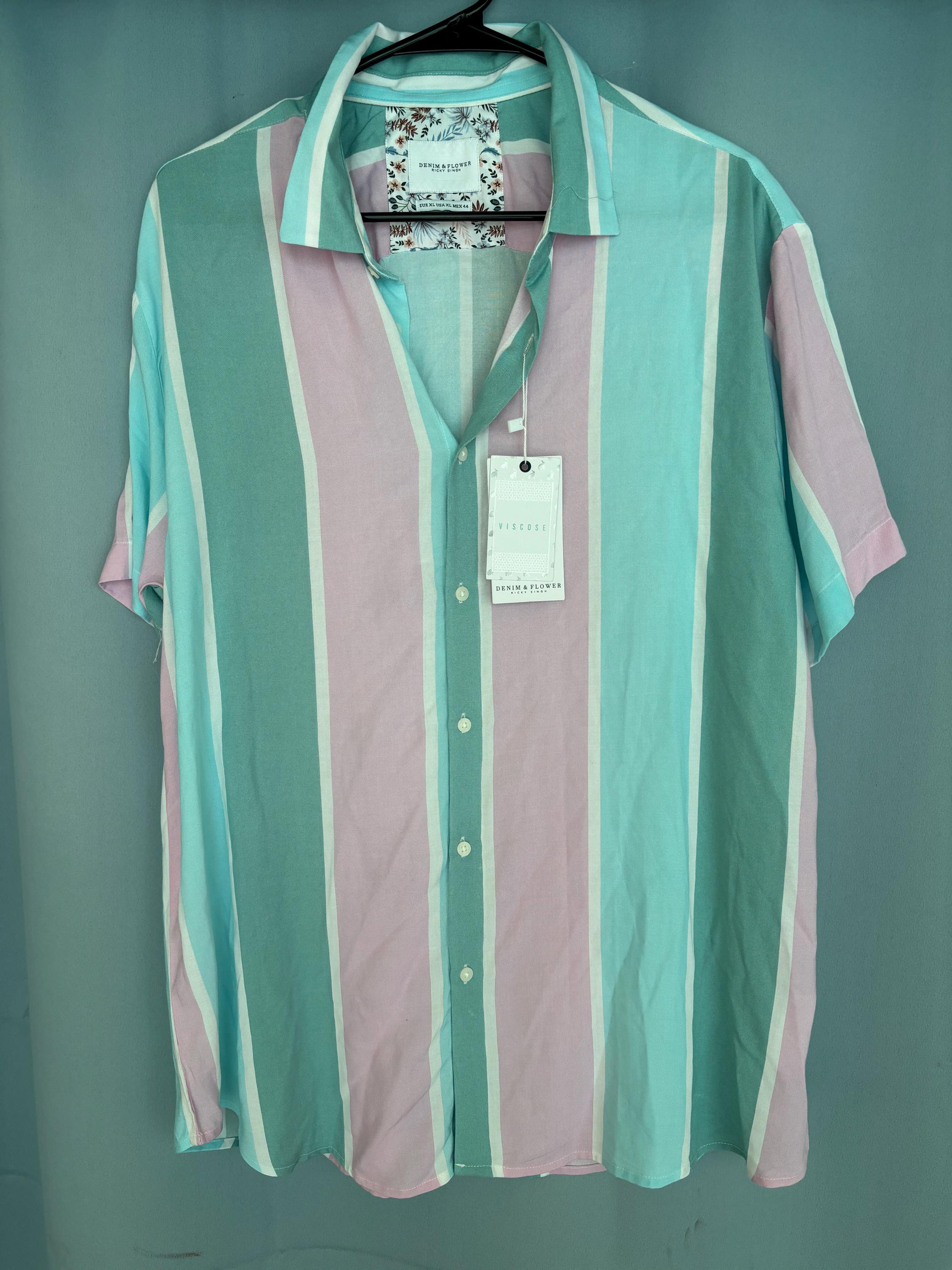 VISIT jaxinabox.com FOR ALL OUR LISTINGS!Denim & Flower Ricky Singh Top Womens Viscose Pink Blue Green Button-Up XL NWT