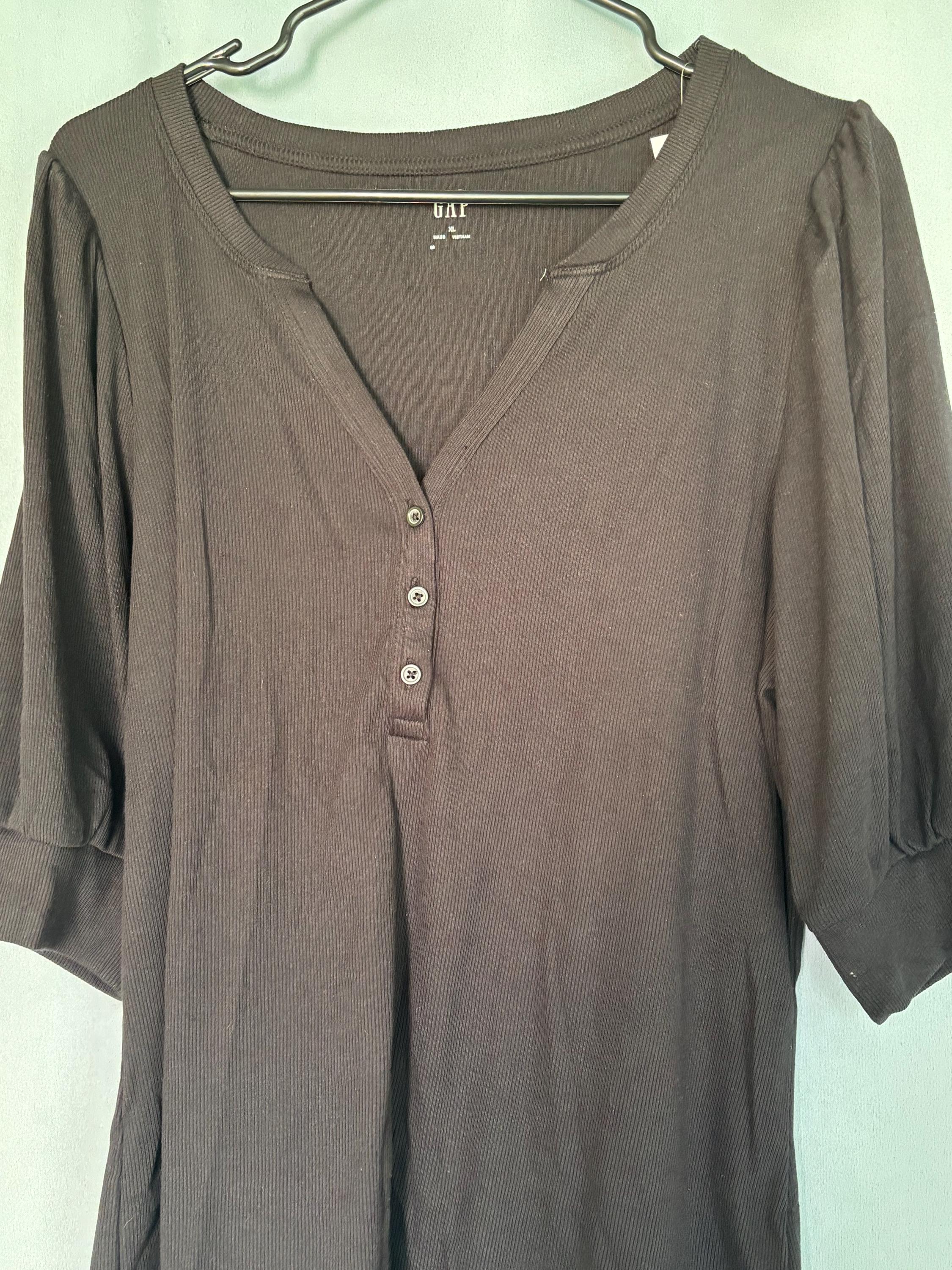 VISIT jaxinabox.com FOR ALL OUR LISTINGS!The Gap Fitted Henley Puff Sleeve Top Shirt Ribbed Black XL NWT