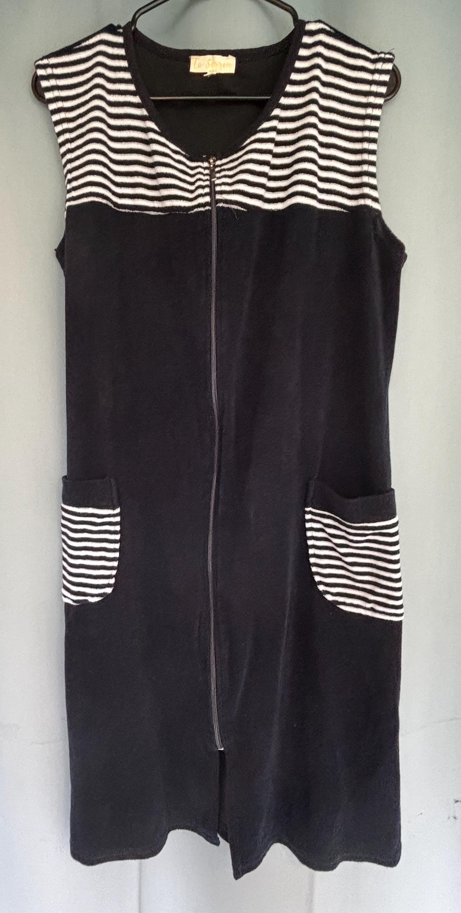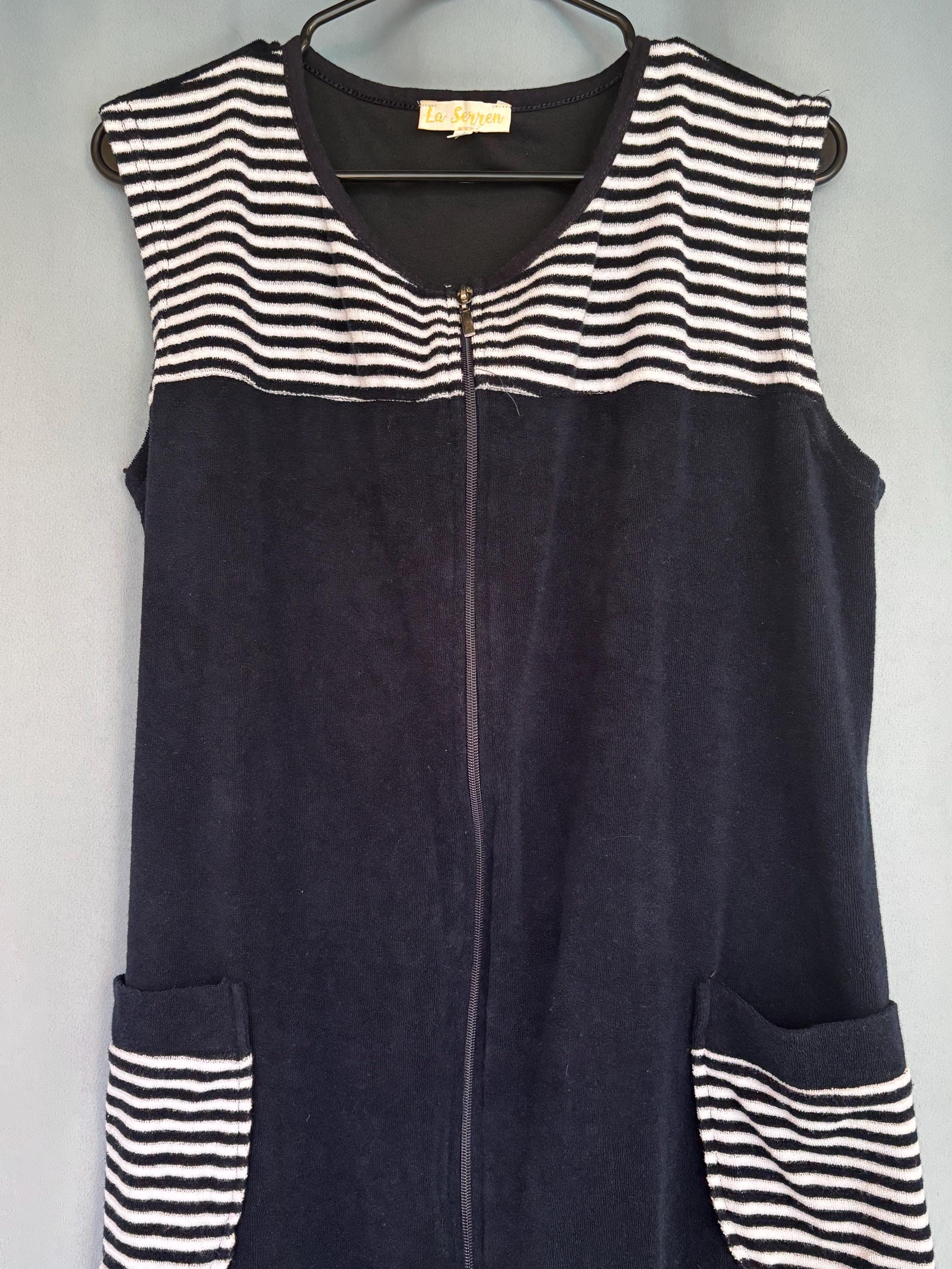 VISIT jaxinabox.com FOR ALL OUR LISTINGS!Vintage La Serren Swim Cover Up House Dress Women XL Navy Blue White Sleeveless