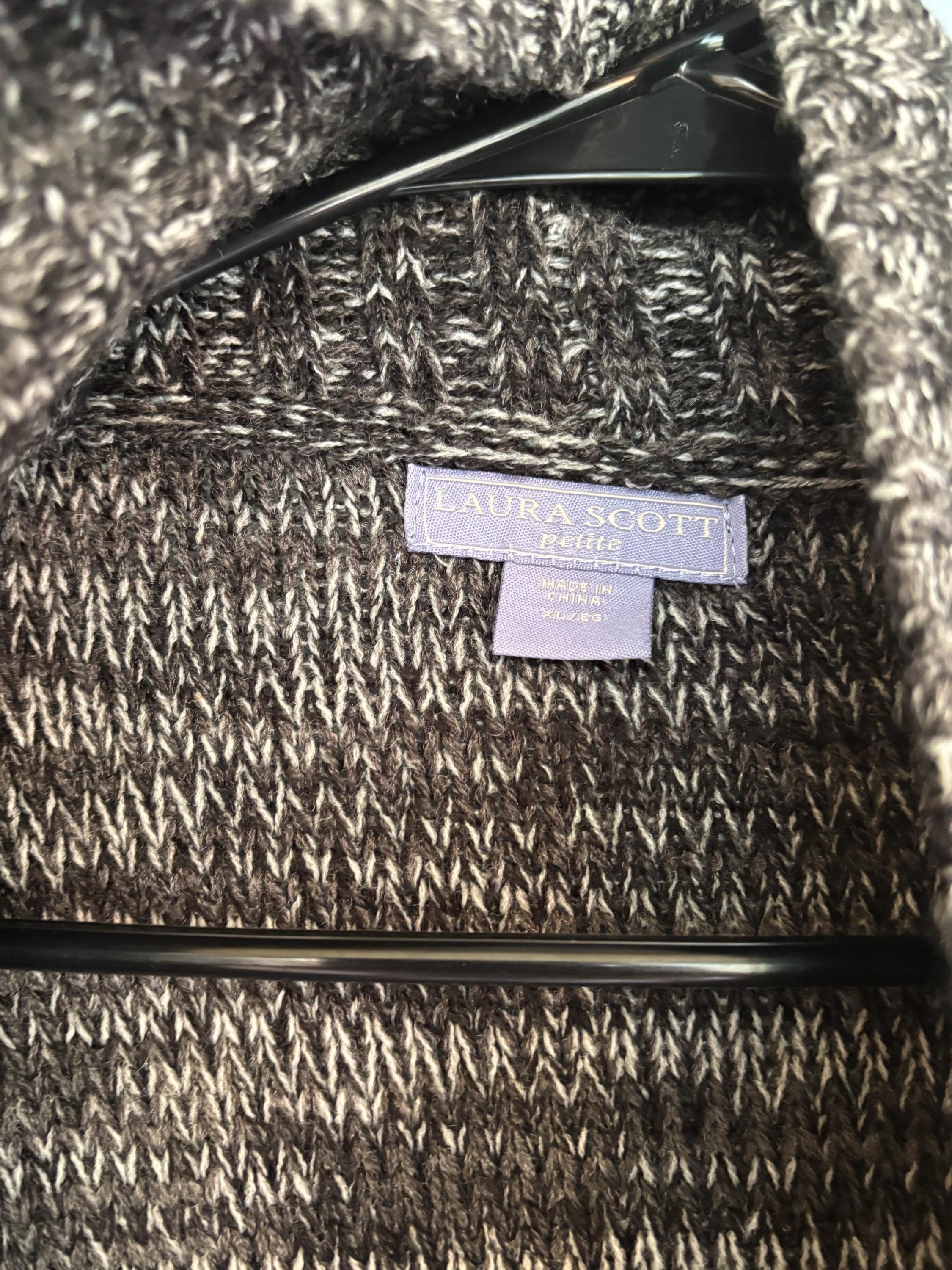 VISIT jaxinabox.com FOR ALL OUR LISTINGS!Laura Scott Ladies Petite Knit Cardigan Sweater Gray White Size XL Petite
