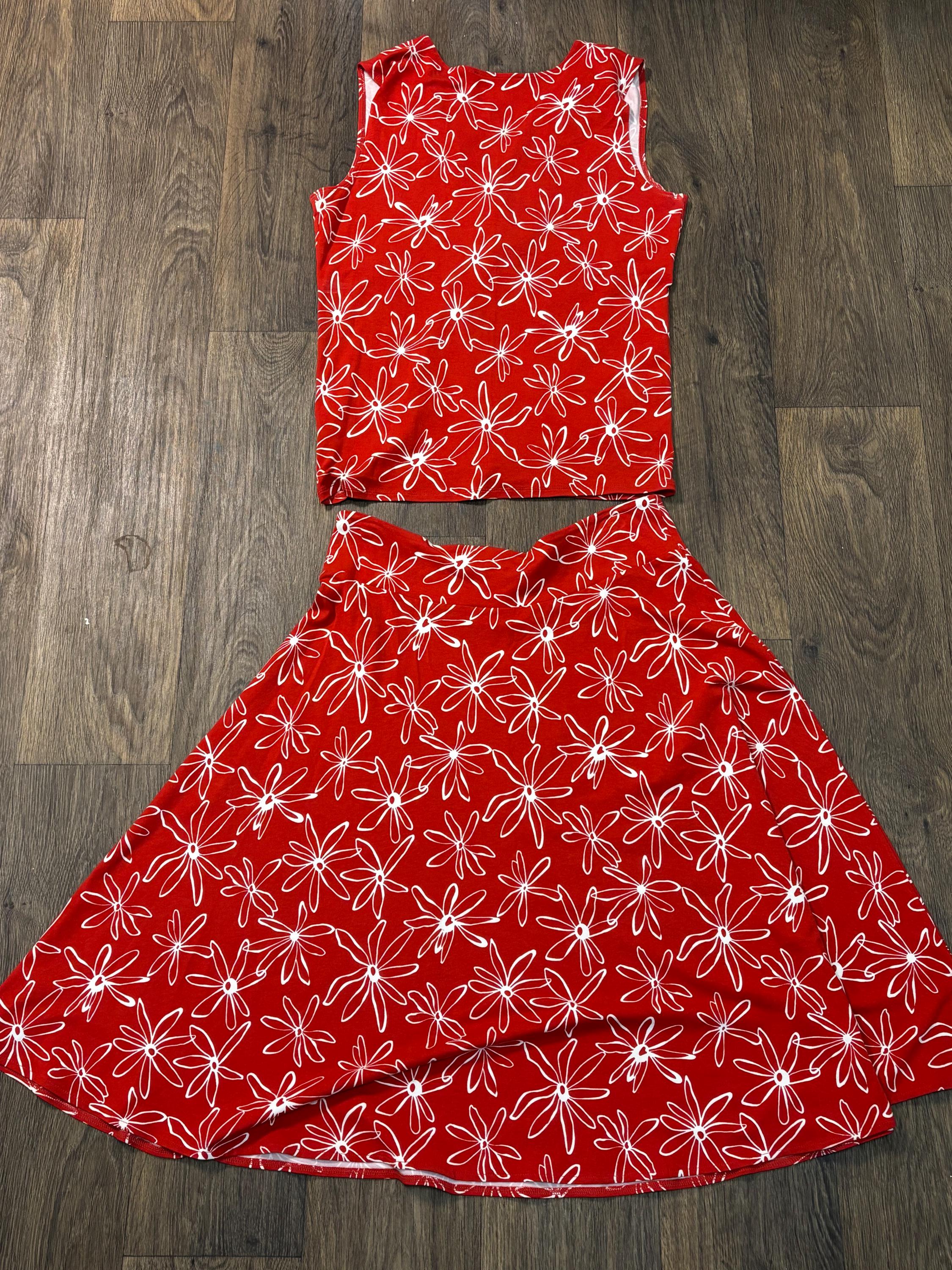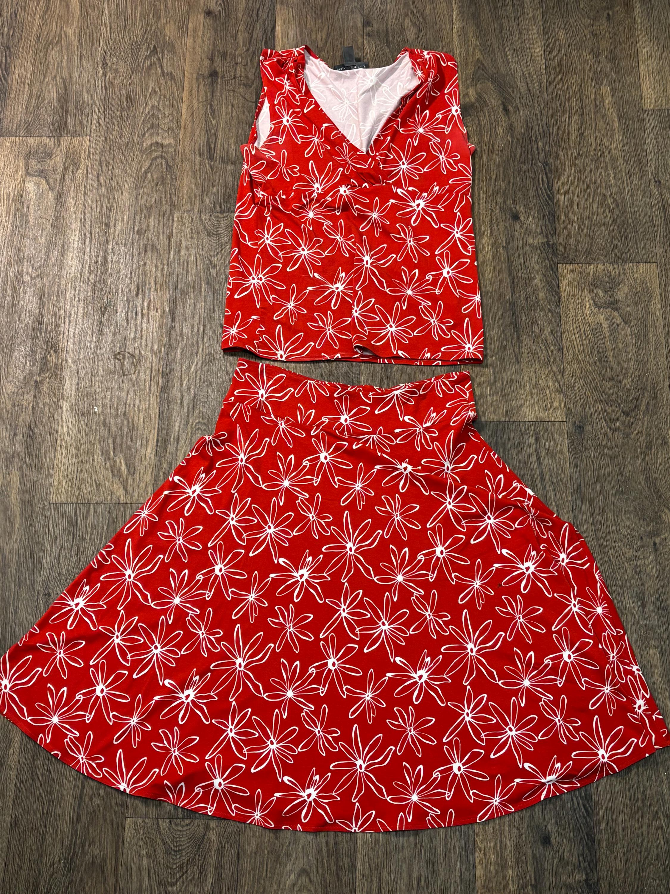 VISIT jaxinabox.com FOR ALL OUR LISTINGS!Vintage Josephine Chaus Red White Flower Floral set Skirt & Top Shirt XL