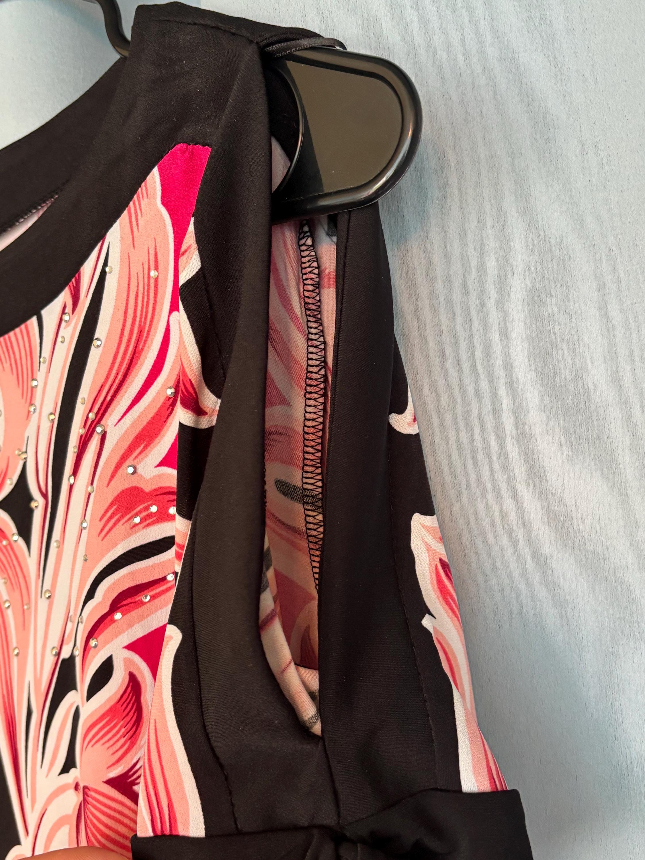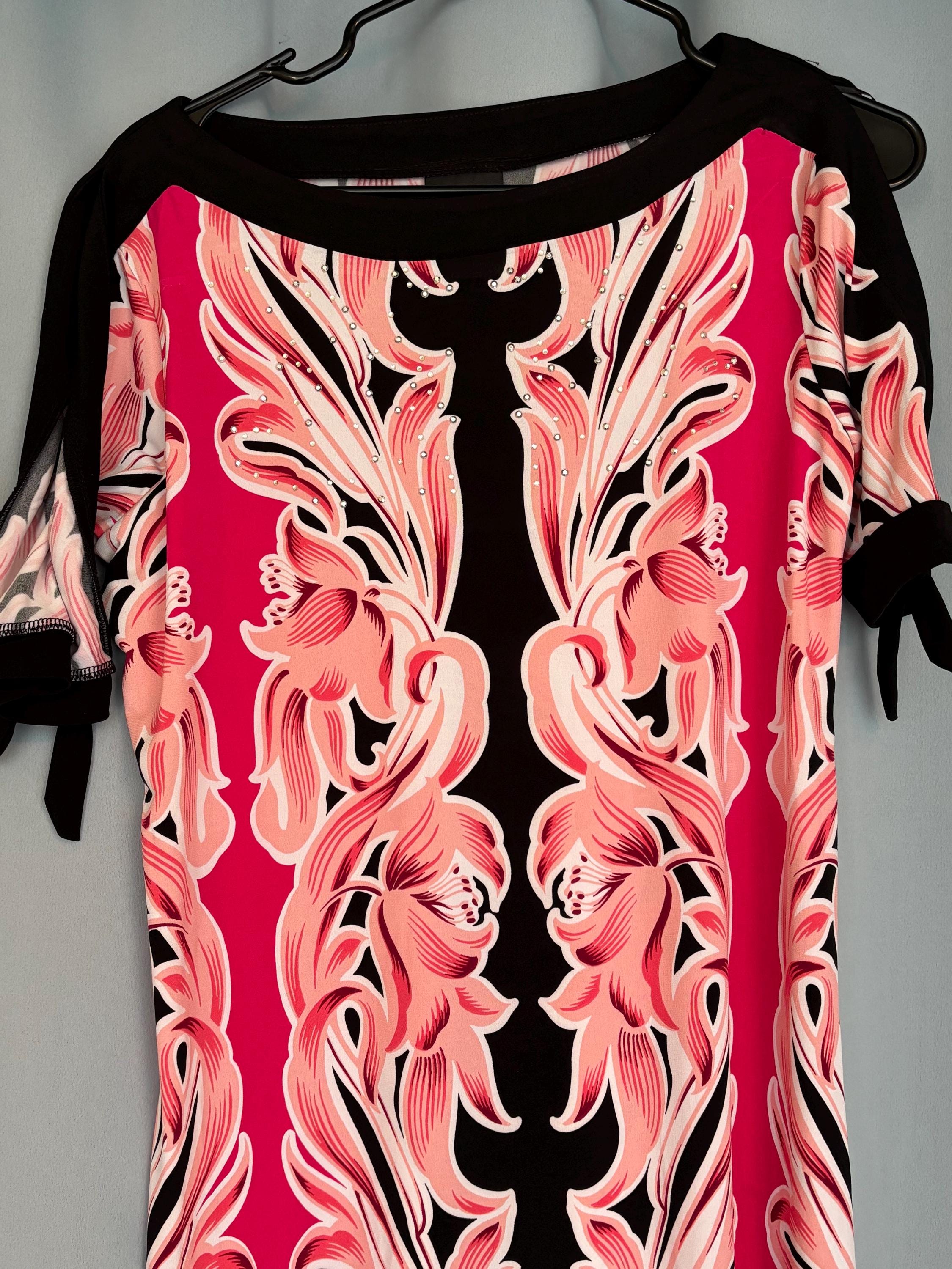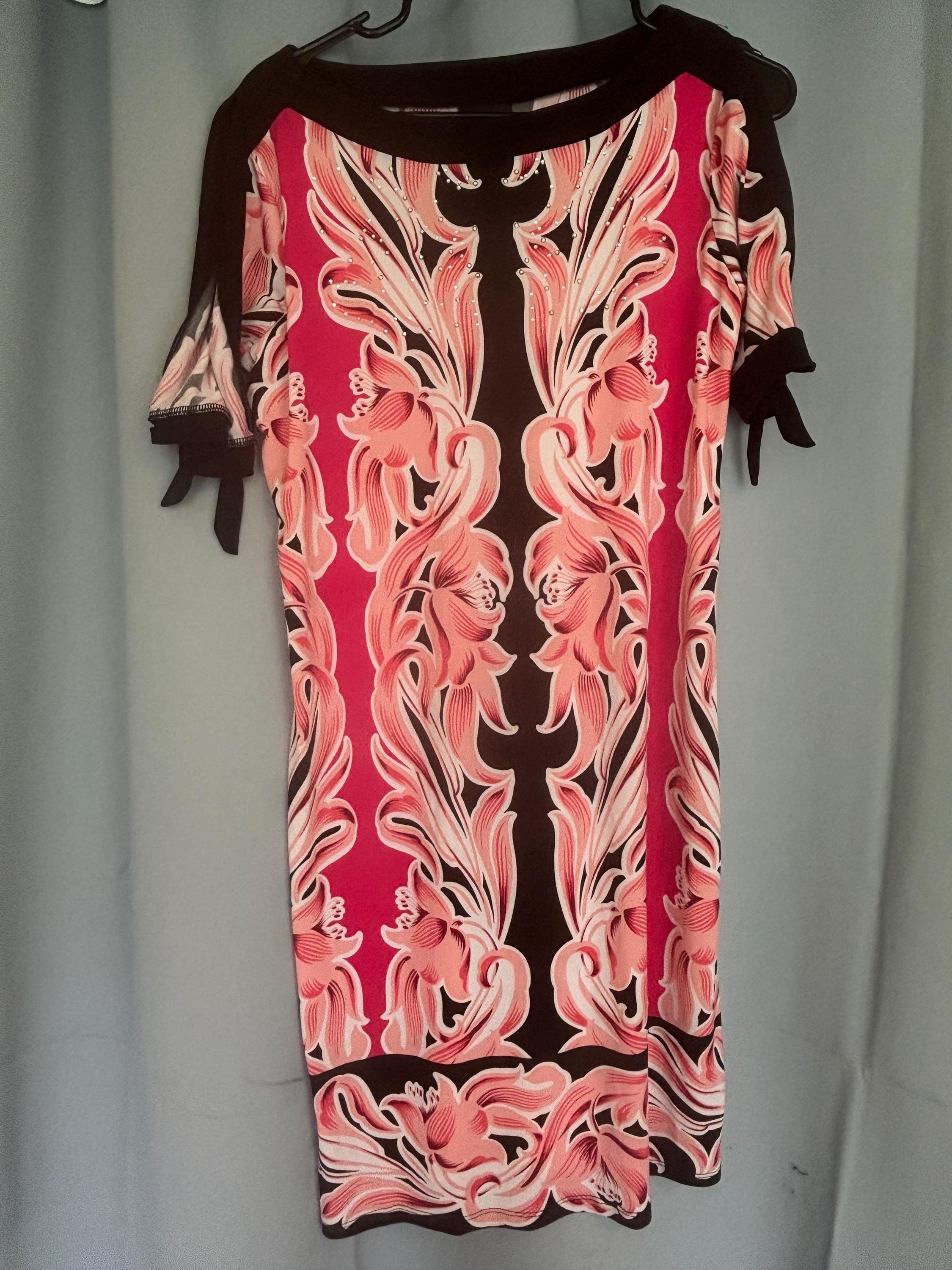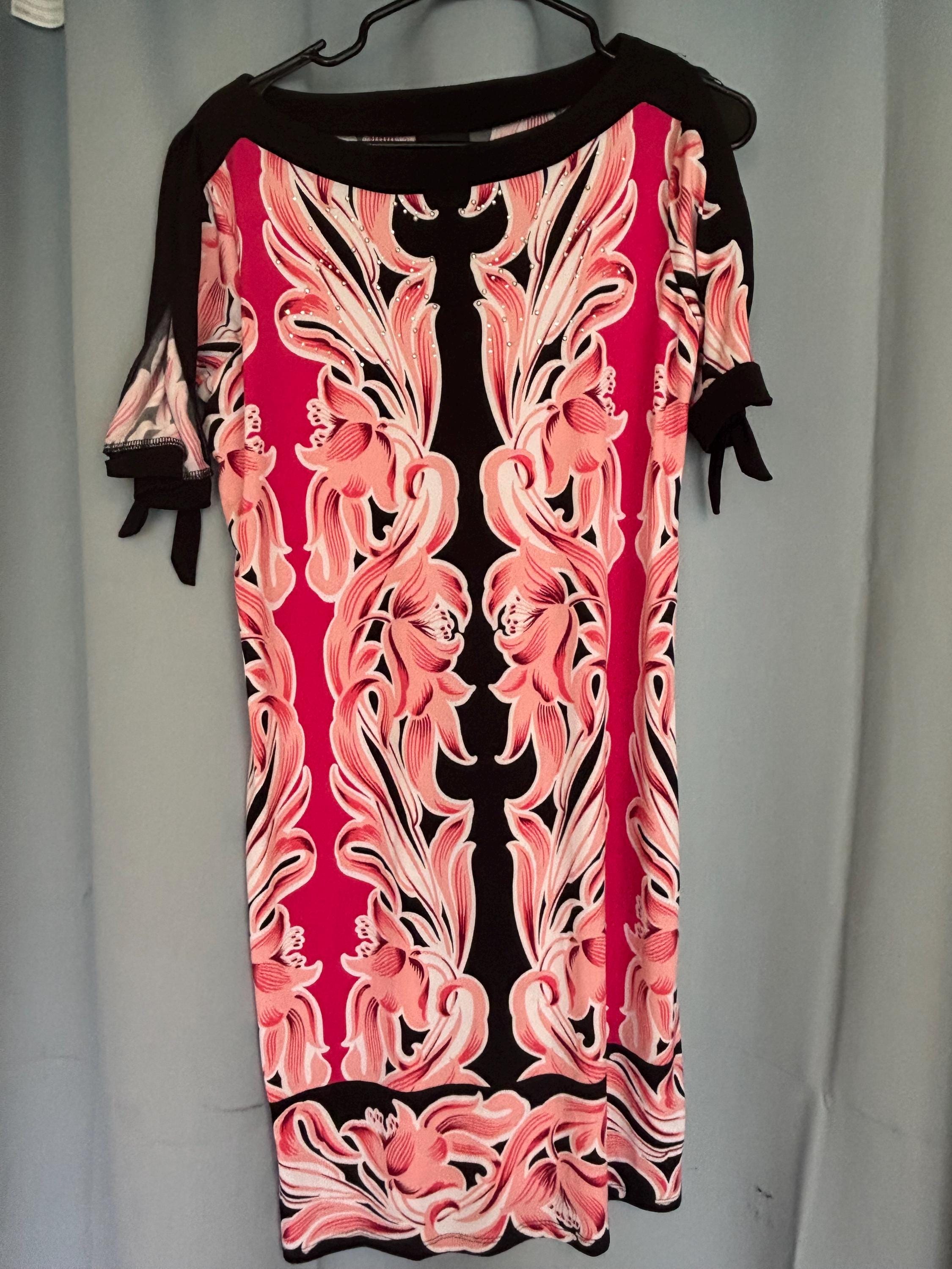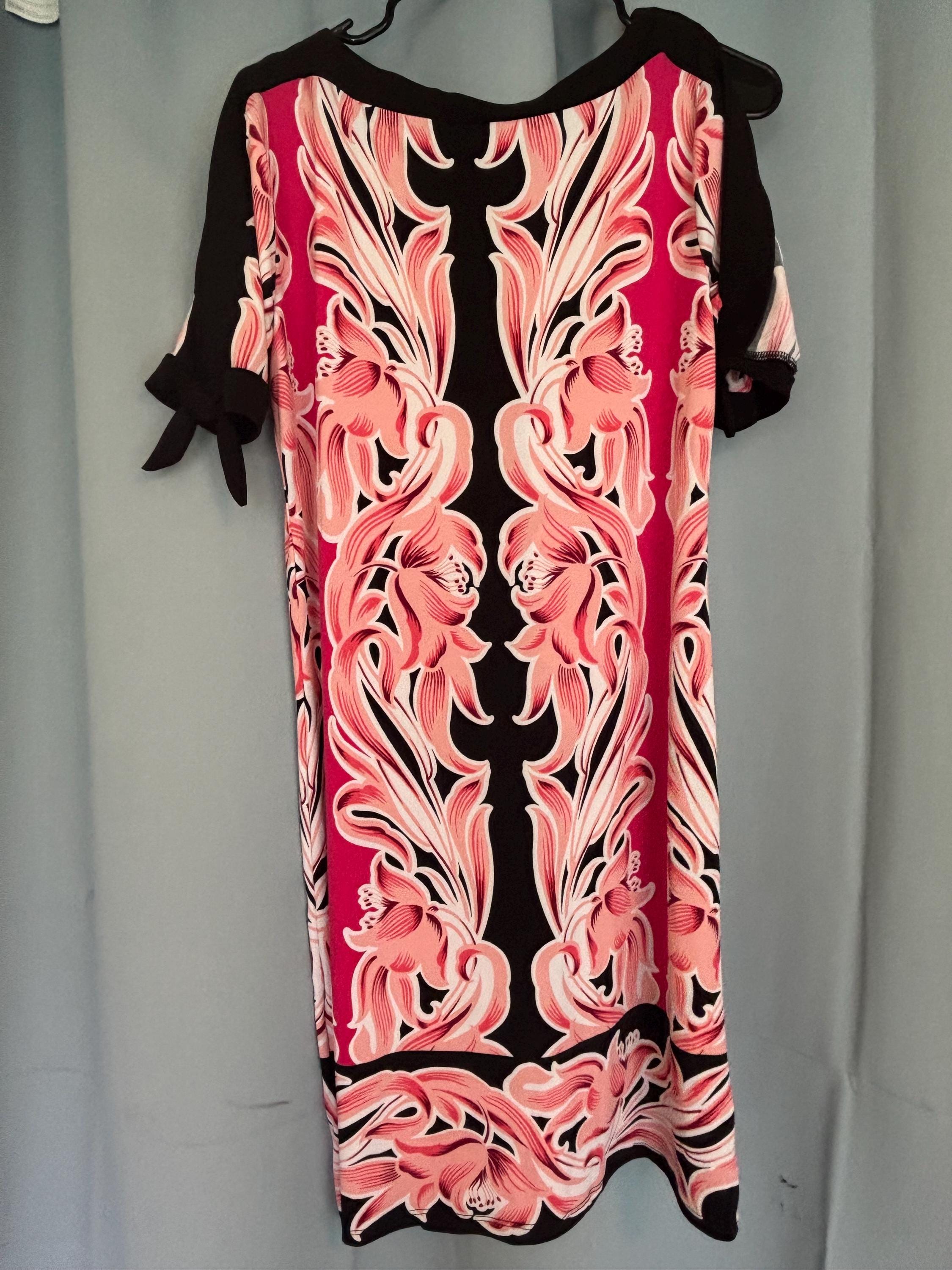 VISIT jaxinabox.com FOR ALL OUR LISTINGS!JM Collection Pink Black Floral Stretchy Summer Tropical Beach Dress Petite XL
