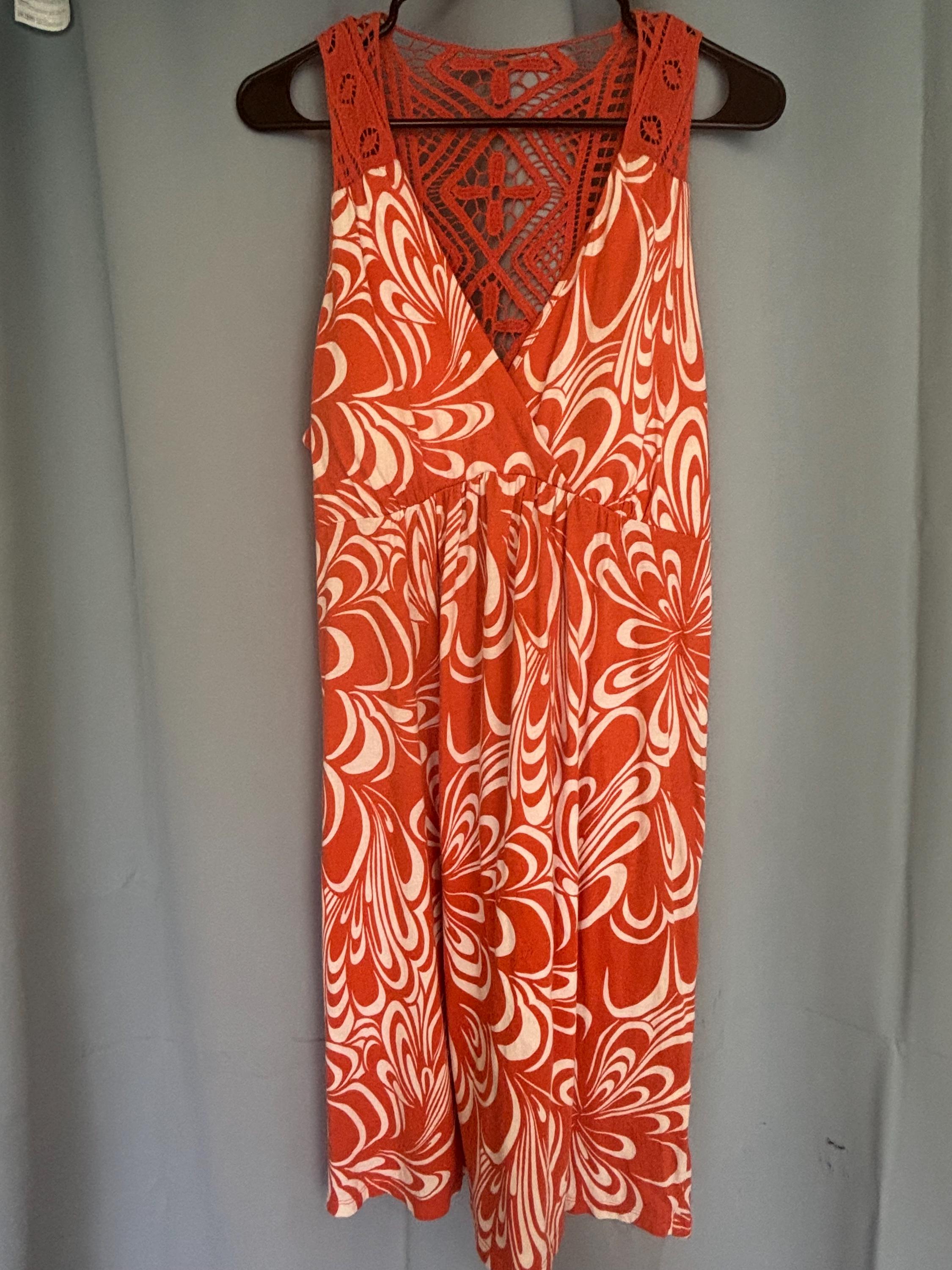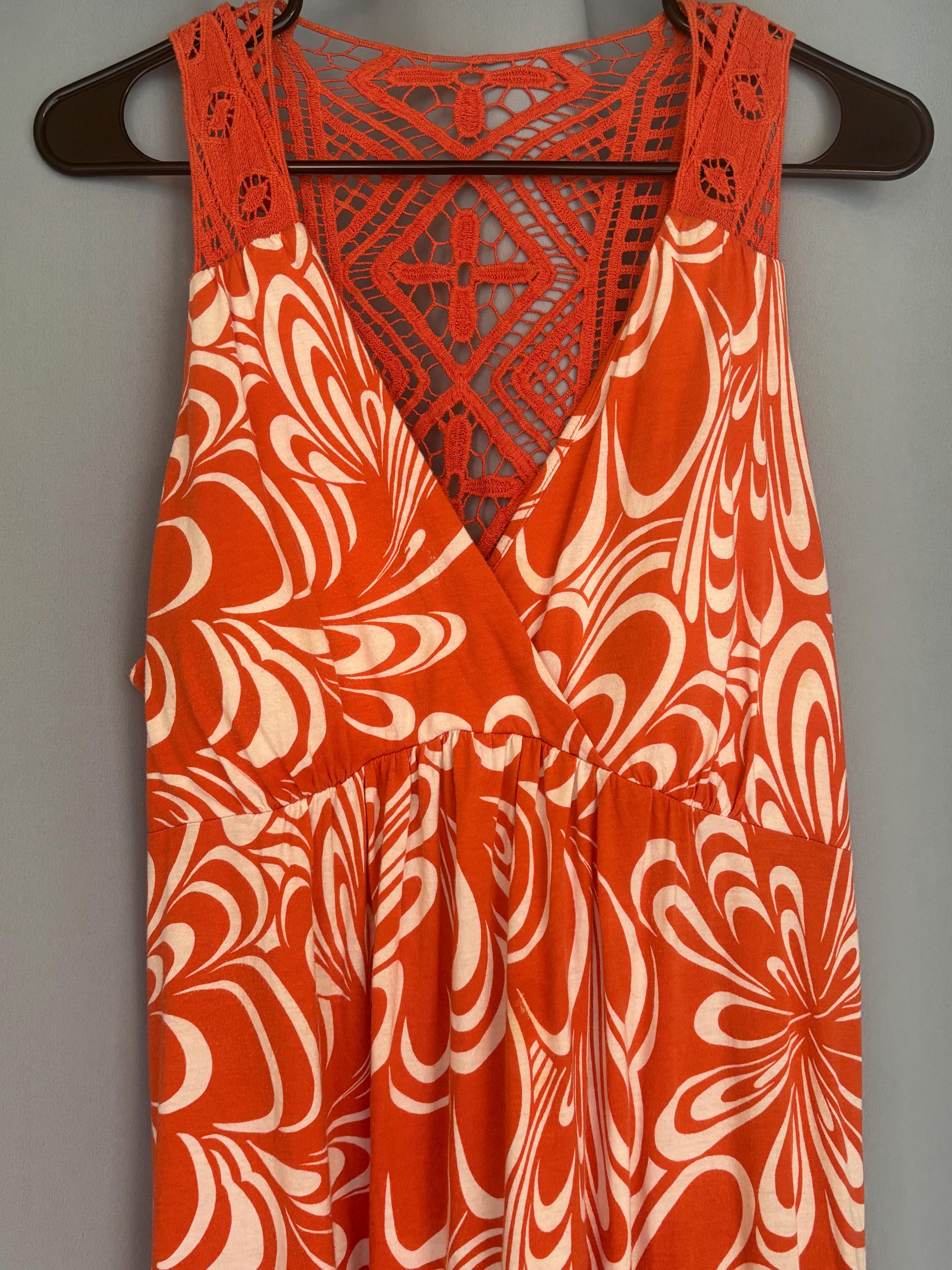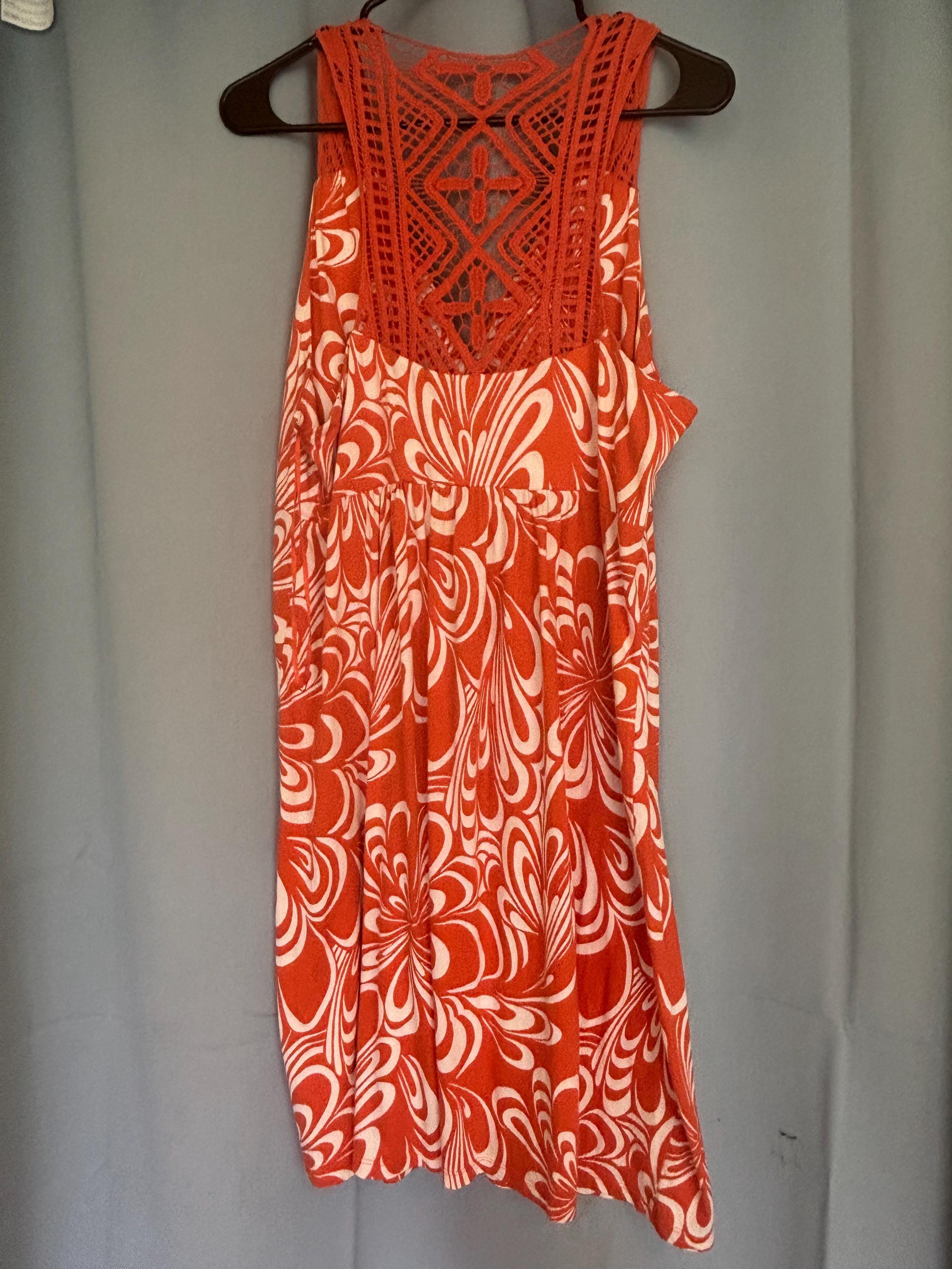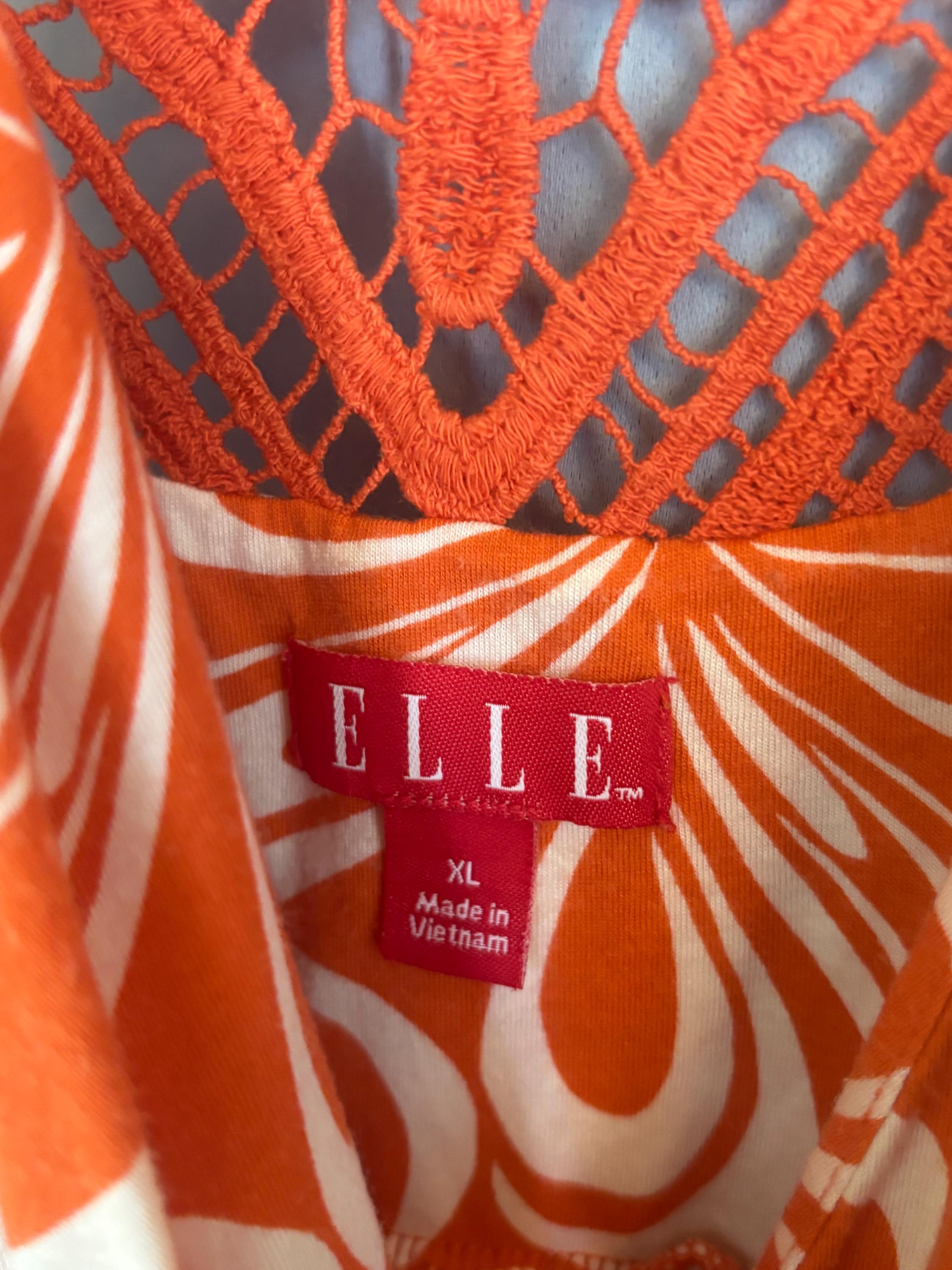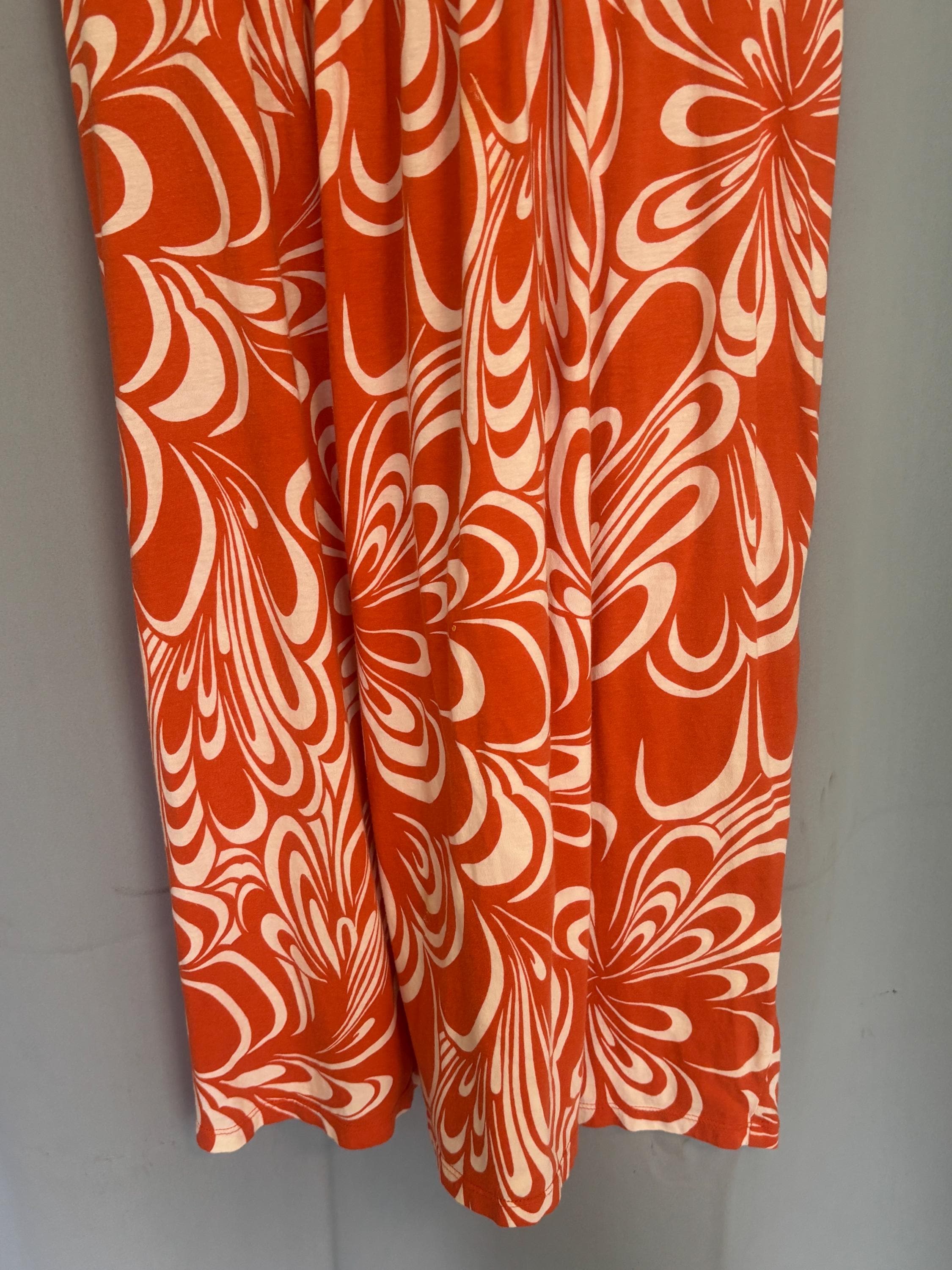 VISIT jaxinabox.com FOR ALL OUR LISTINGS!Vintage Elle Orange White Floral Stretchy Summer Tropical Beach Dress XL