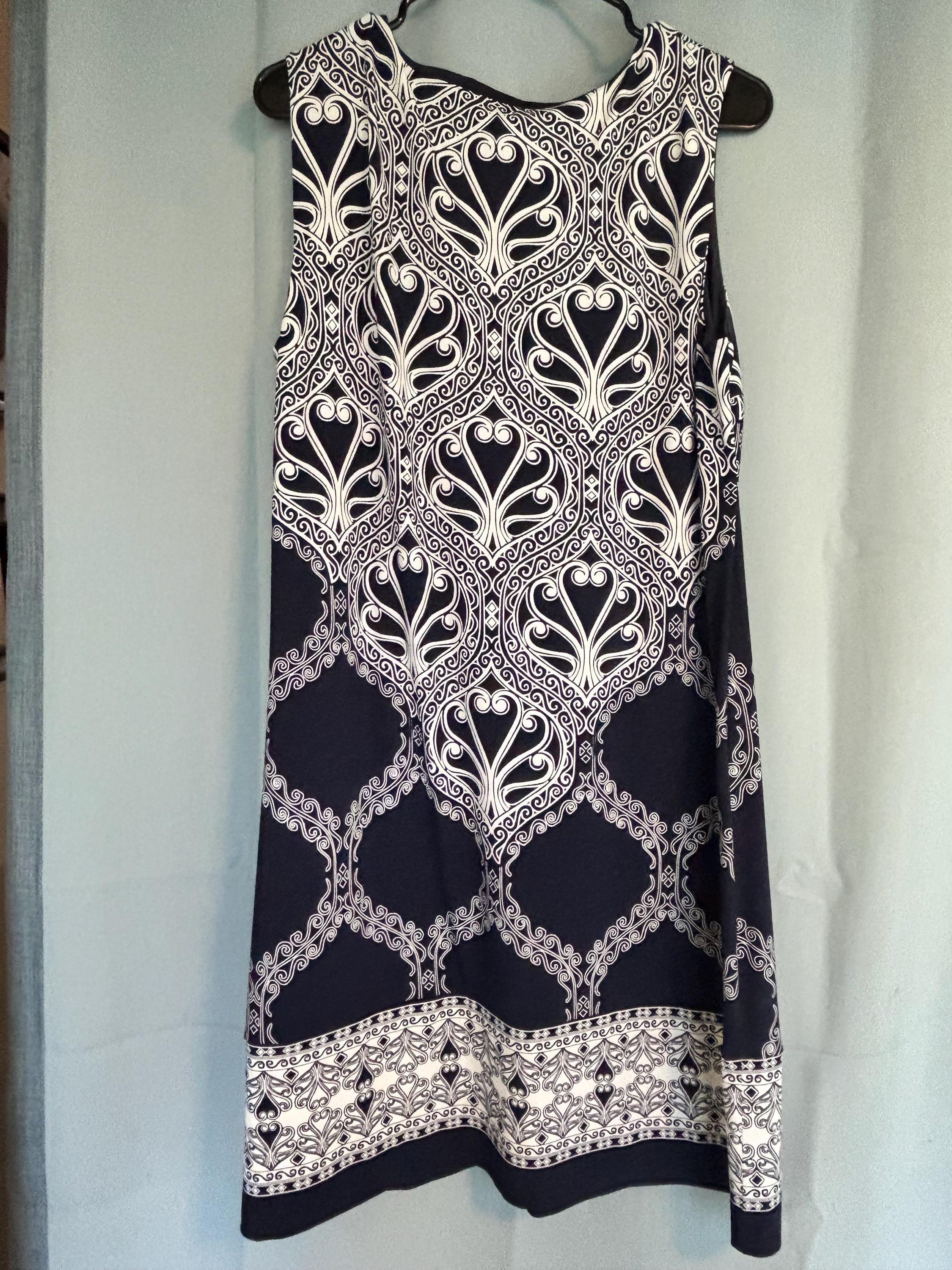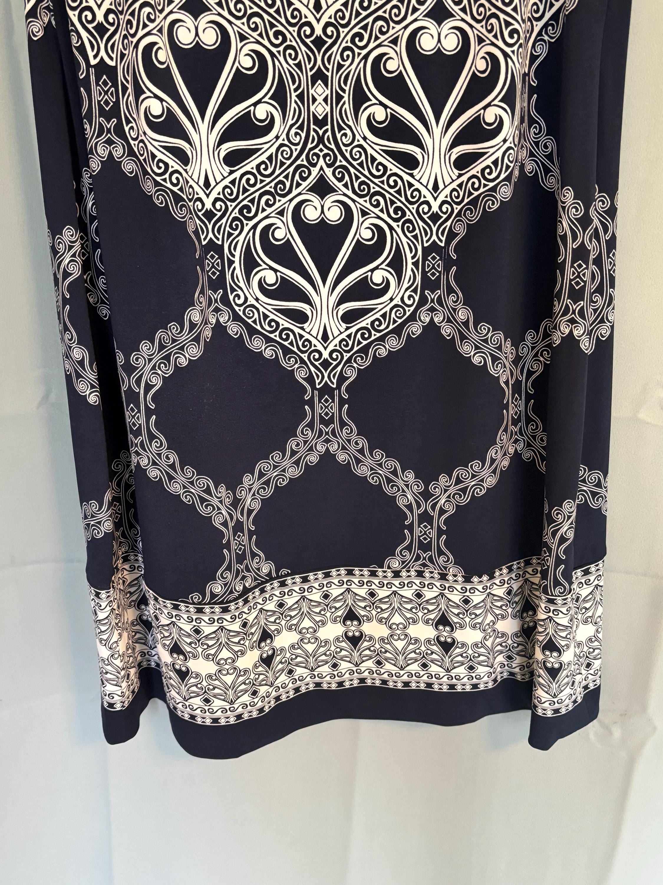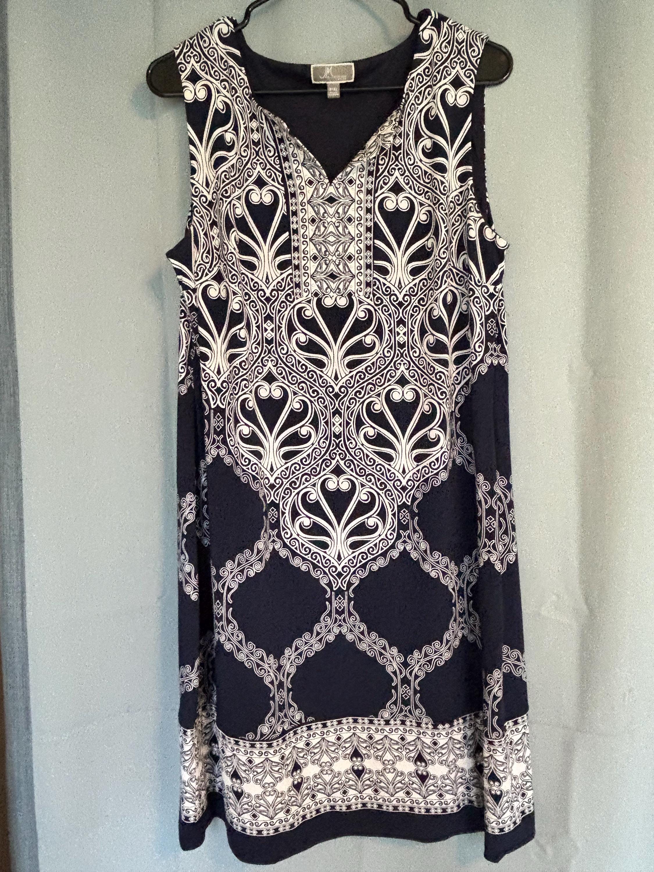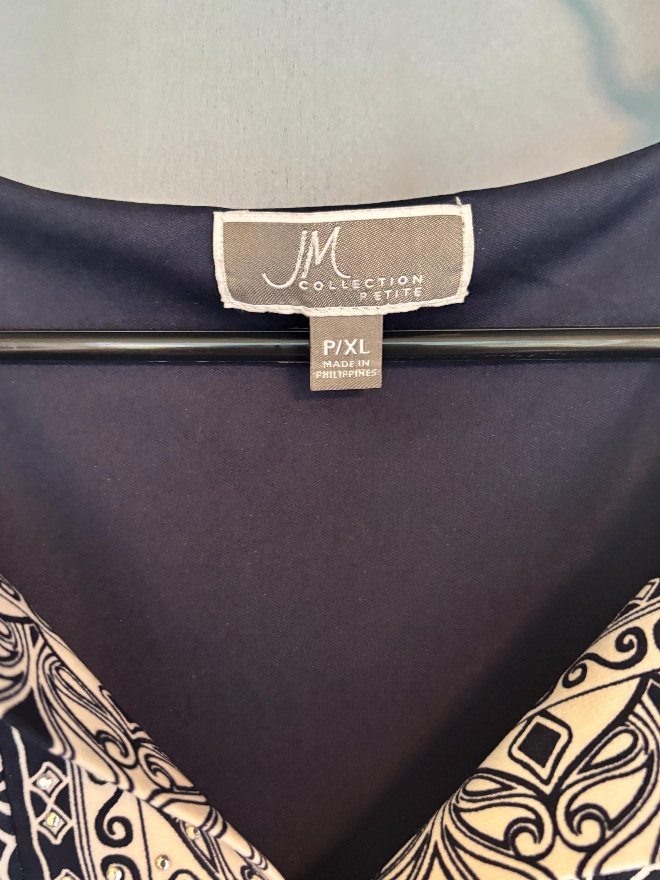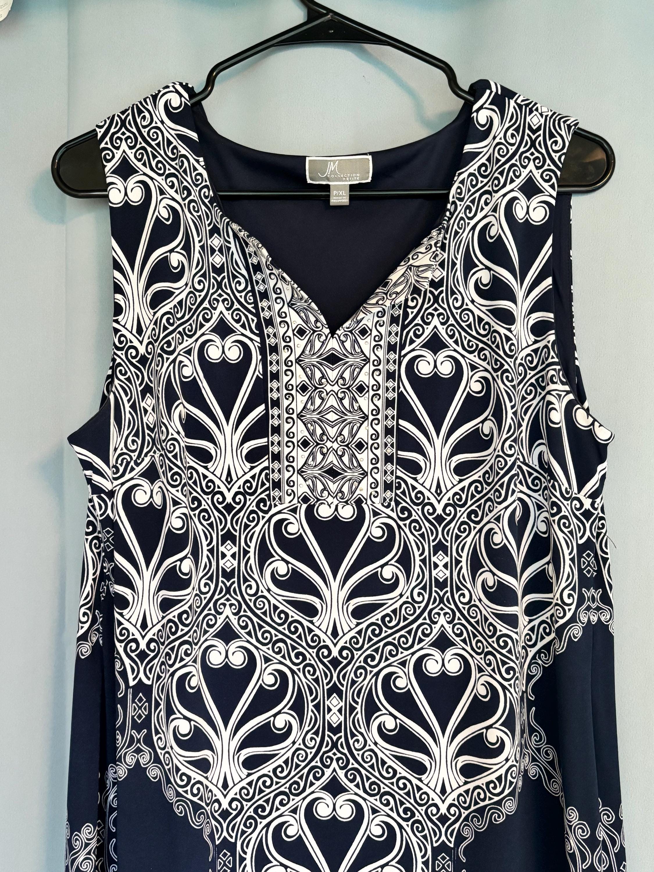 VISIT jaxinabox.com FOR ALL OUR LISTINGS!JM Collection Navy Blue White Dress V Neck Jeweled Stretch PXL Petite XL