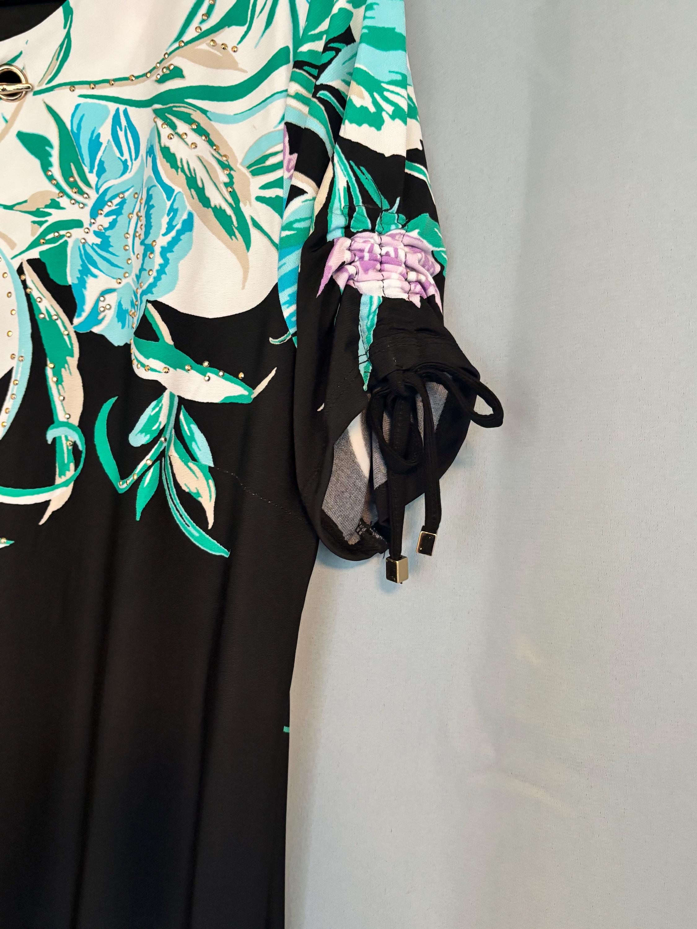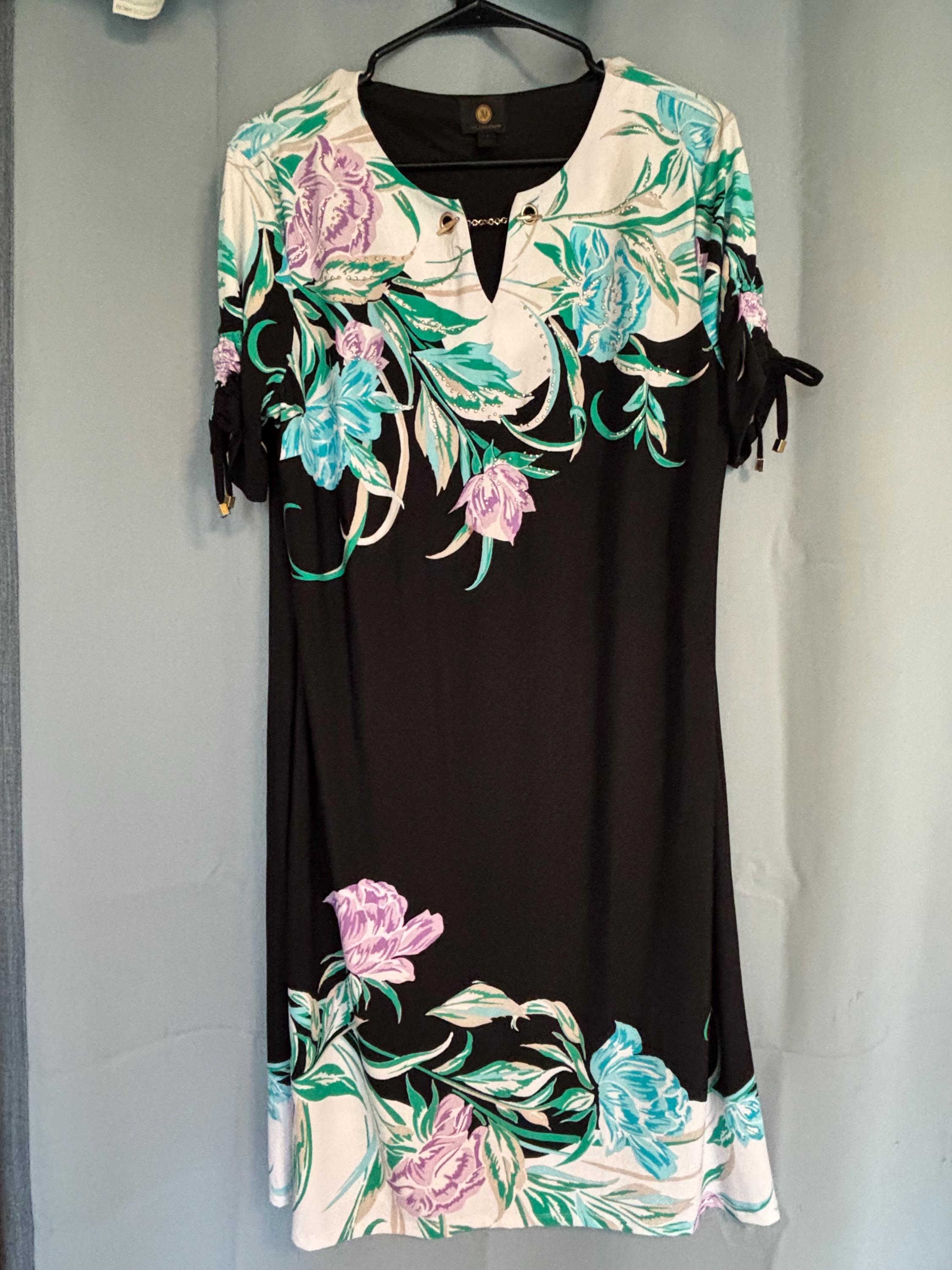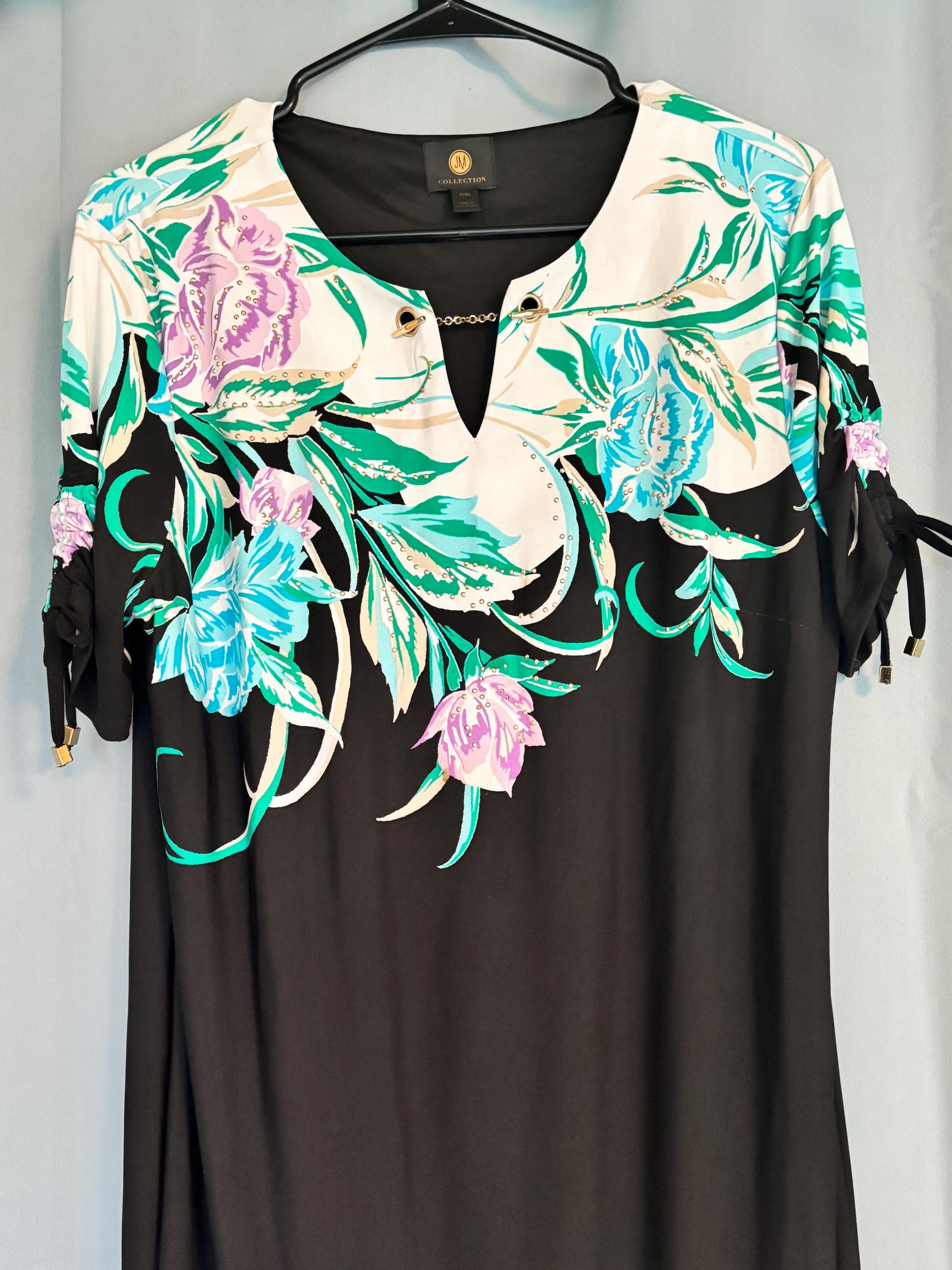 VISIT jaxinabox.com FOR ALL OUR LISTINGS!JM Collection Short Sleeve Black Floral Bouquet Dress Women's Petite XL