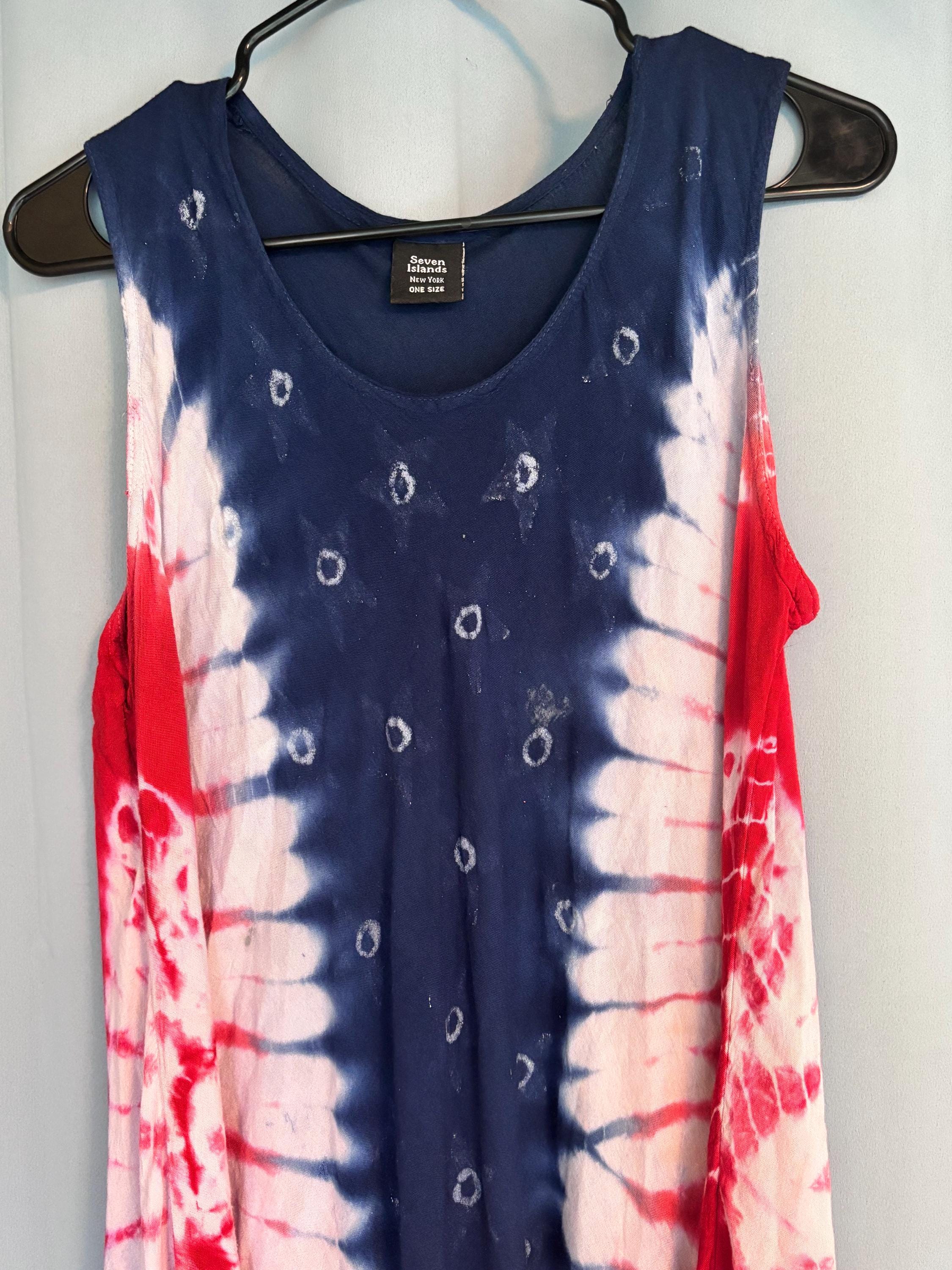 VISIT jaxinabox.com FOR ALL OUR LISTINGS!Seven Islands New York Red White Blue Summer Beach Dress One Size