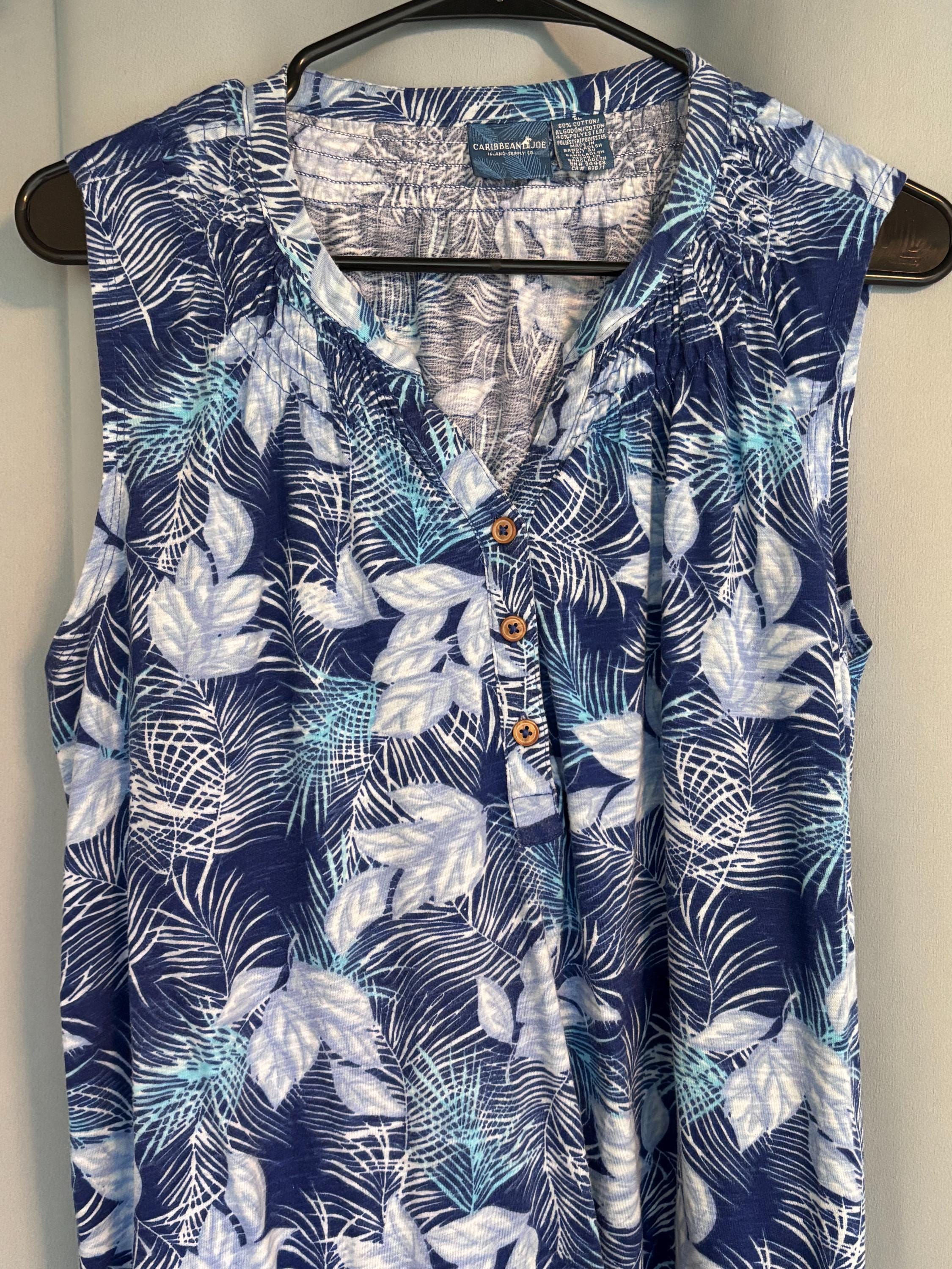 VISIT jaxinabox.com FOR ALL OUR LISTINGS!Caribbean Joe Hawaiian Dress Women’s Blue Leaves Beach Sleeveless XL