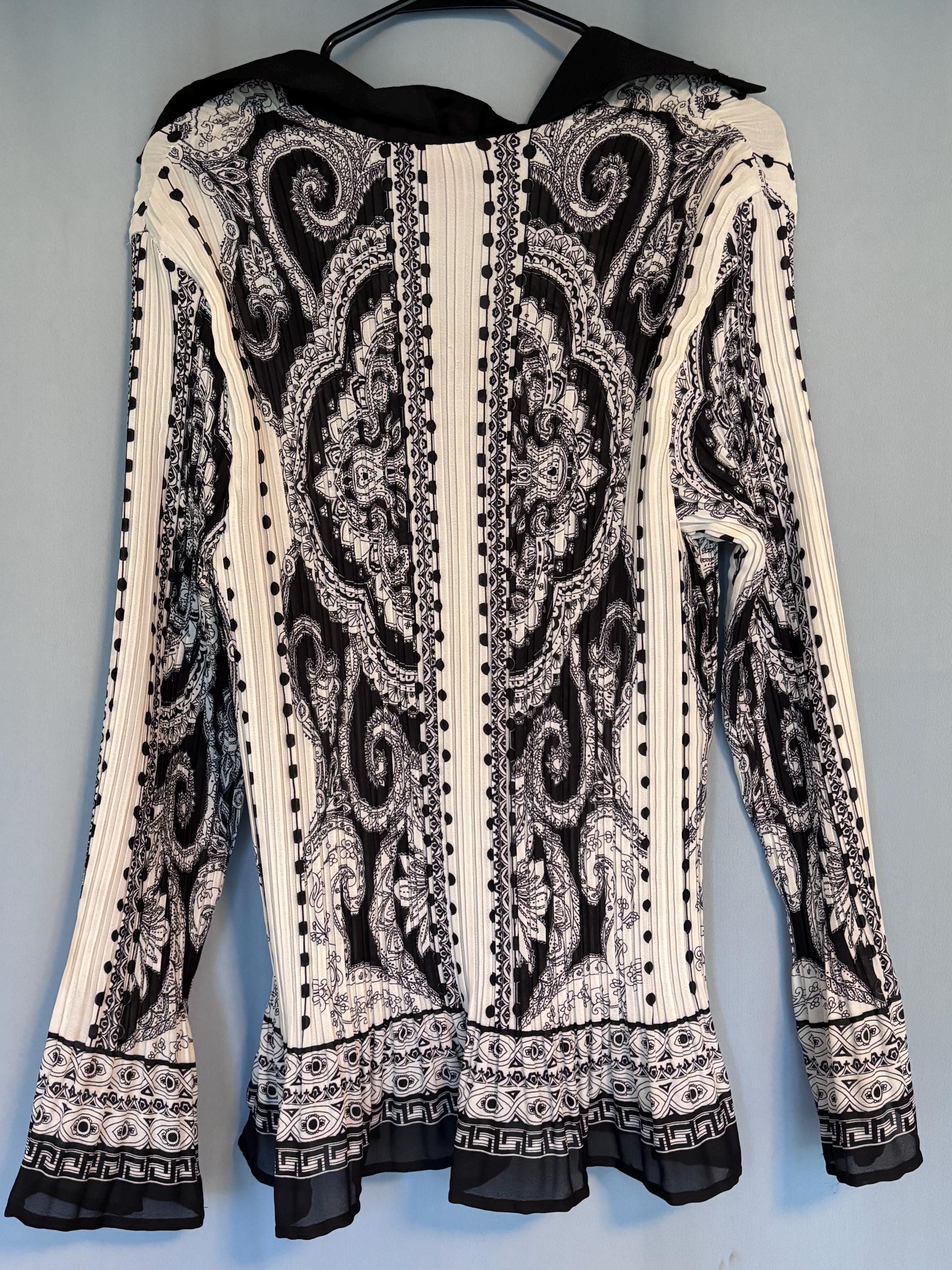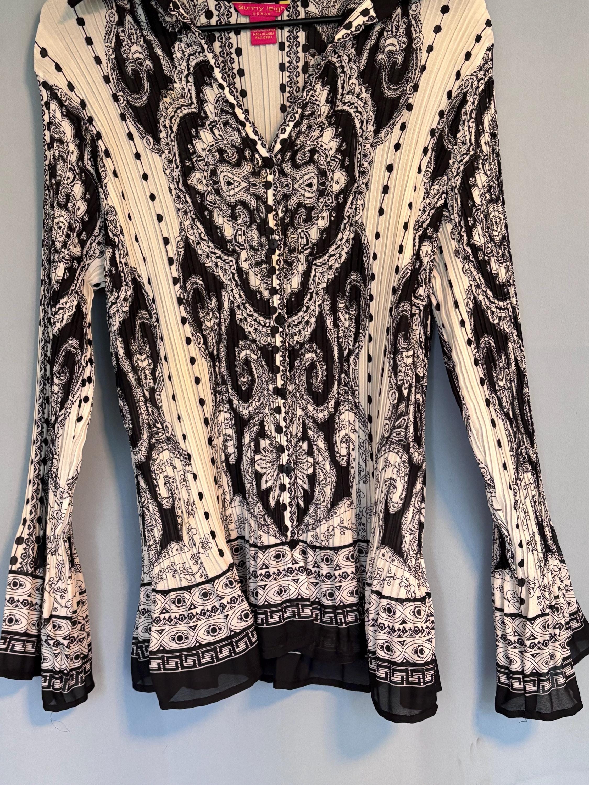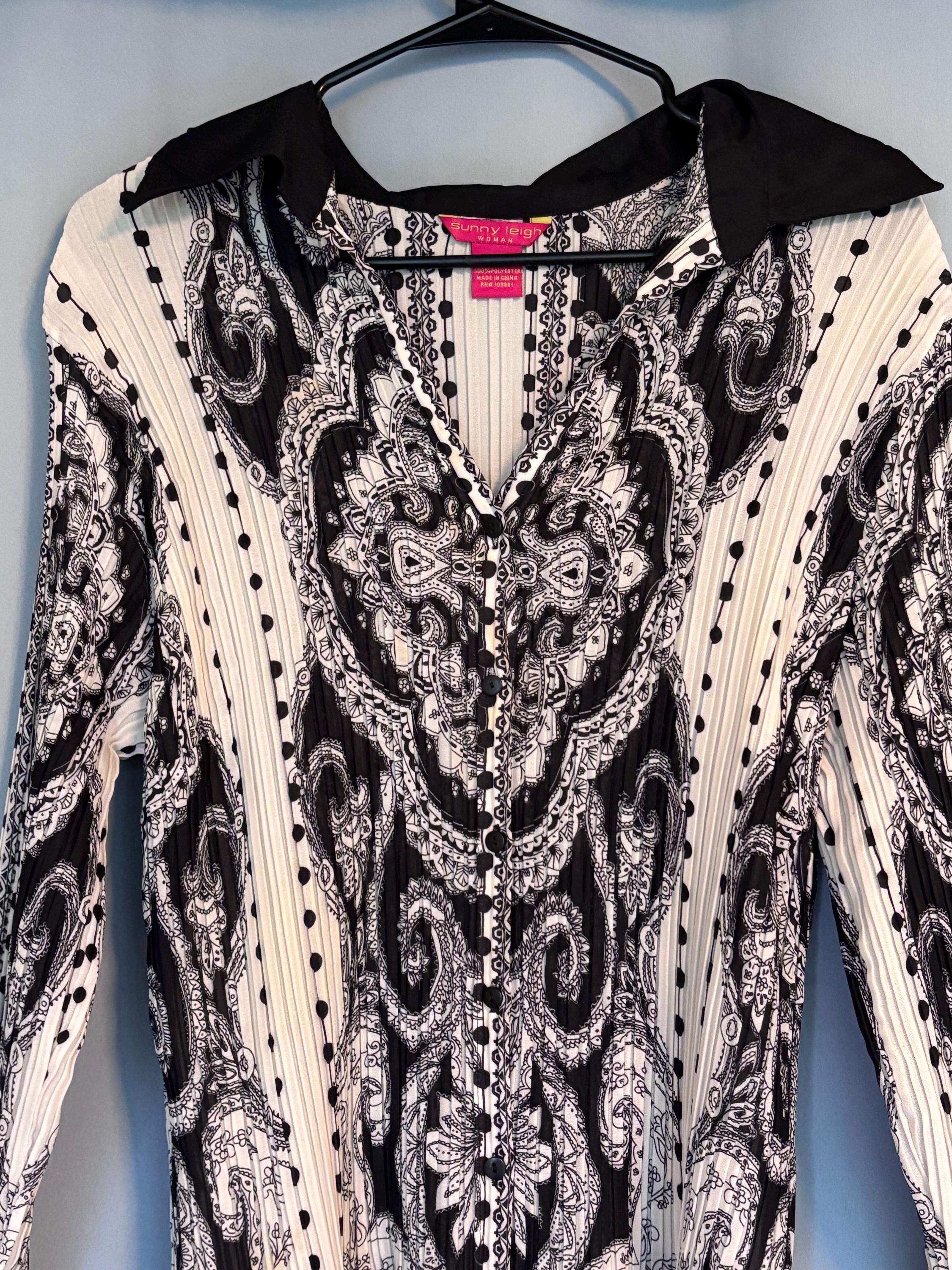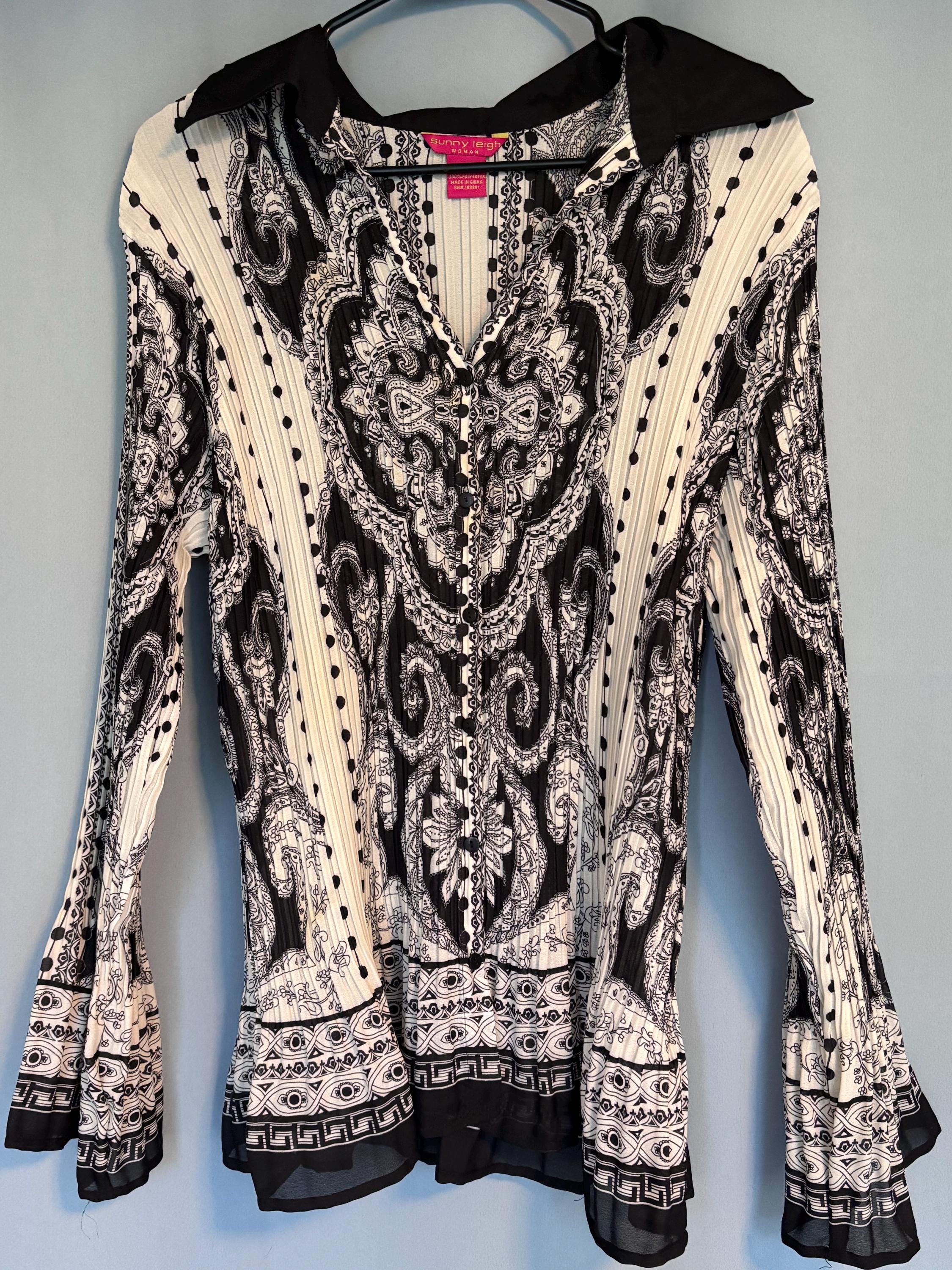 VISIT jaxinabox.com FOR ALL OUR LISTINGS!Vintage Sunny Leigh Women’s Black and White Paisley Blouse Shirt Top 1X