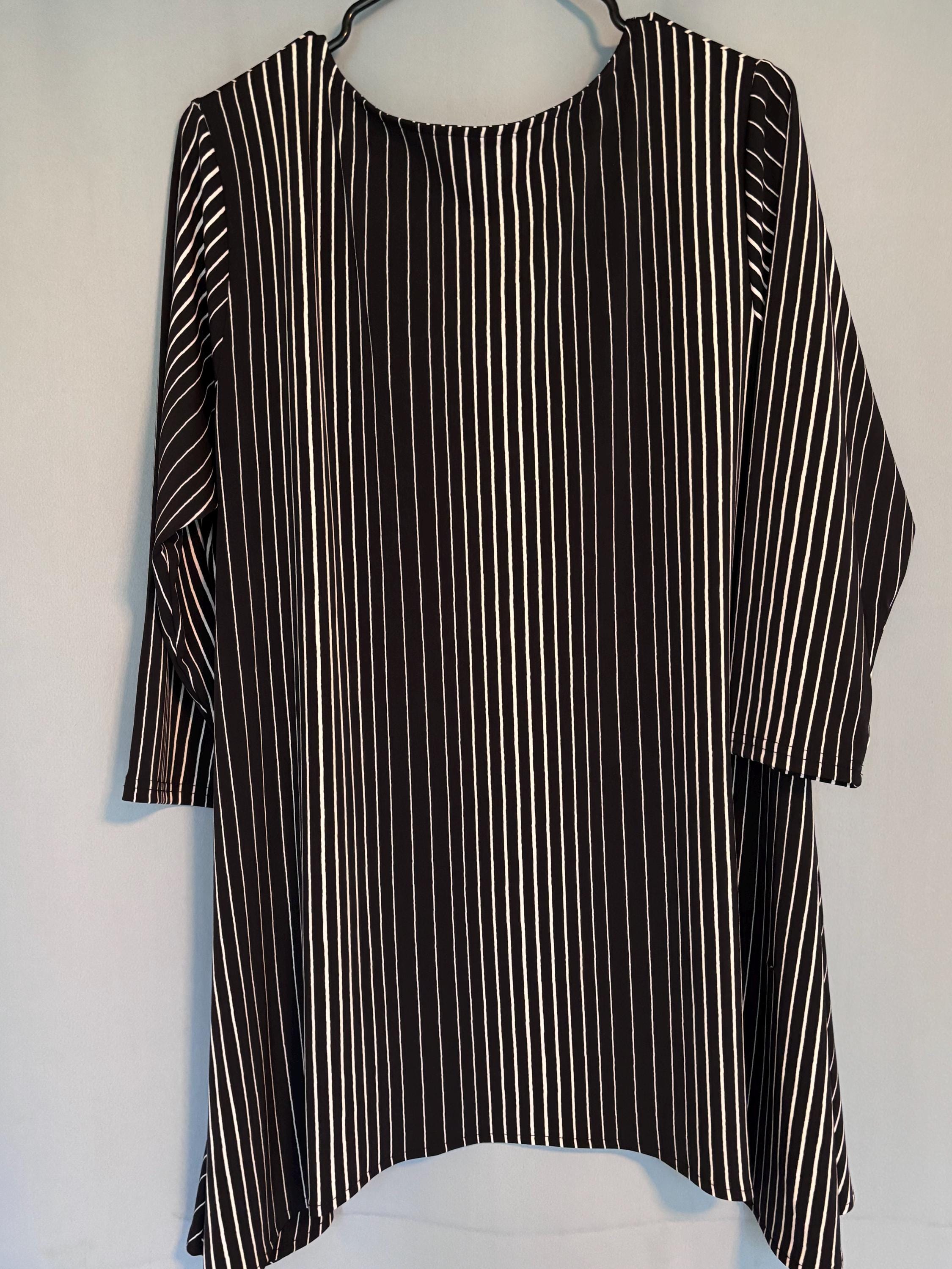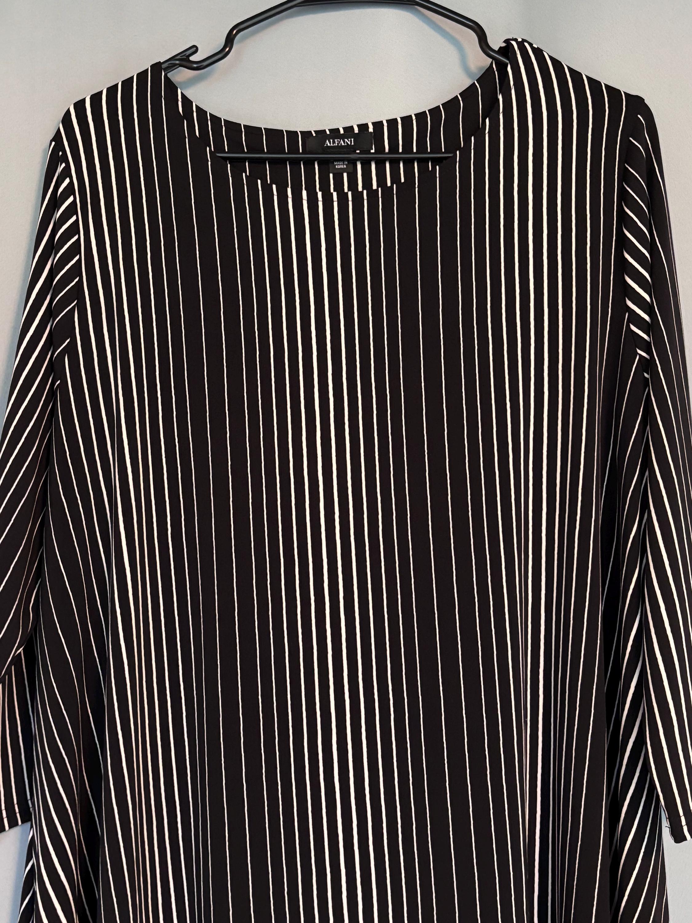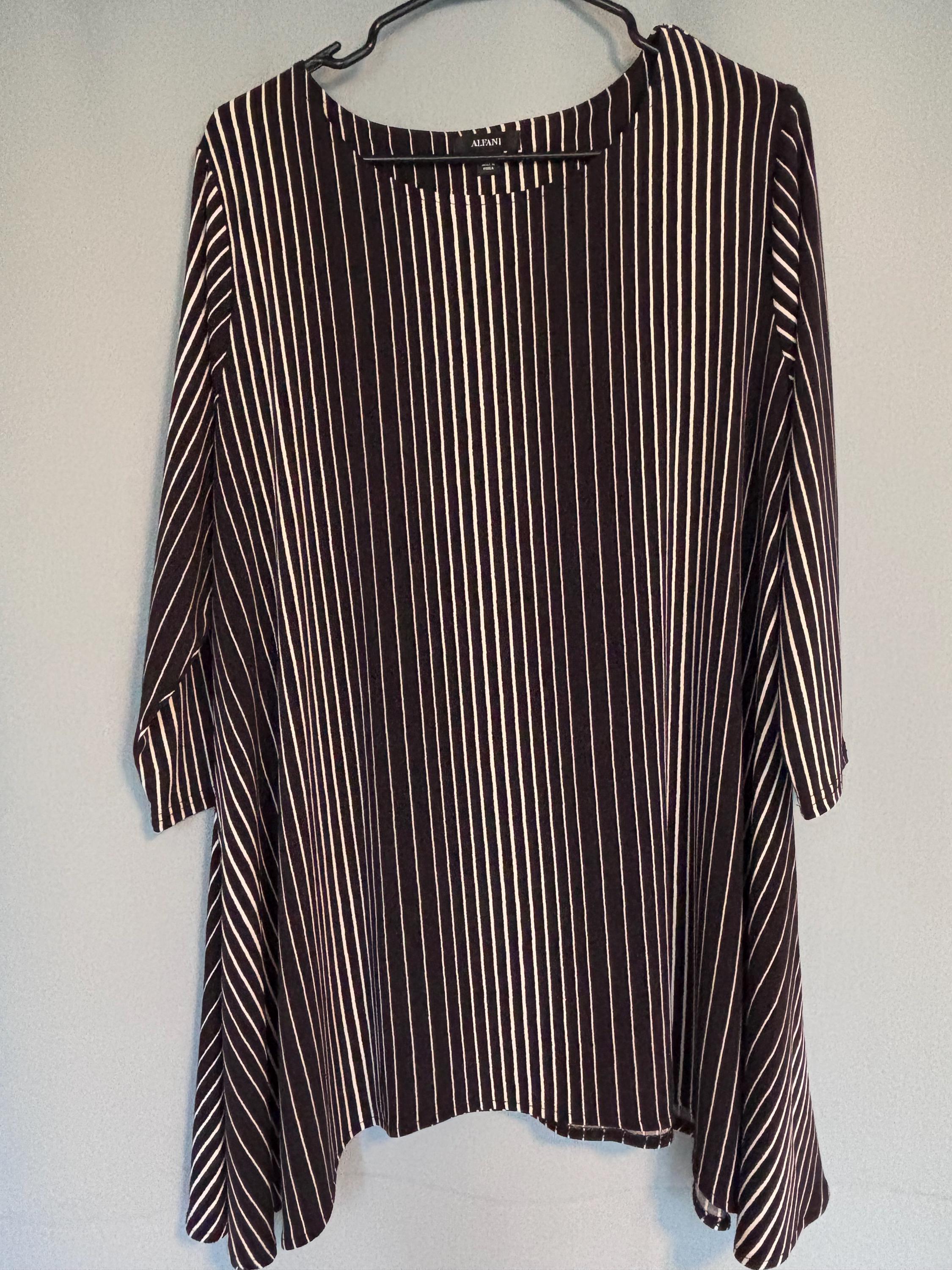 VISIT jaxinabox.com FOR ALL OUR LISTINGS!Alfani Womens Striped Flared Blouse Shirt Top Black Whitw Striped XL