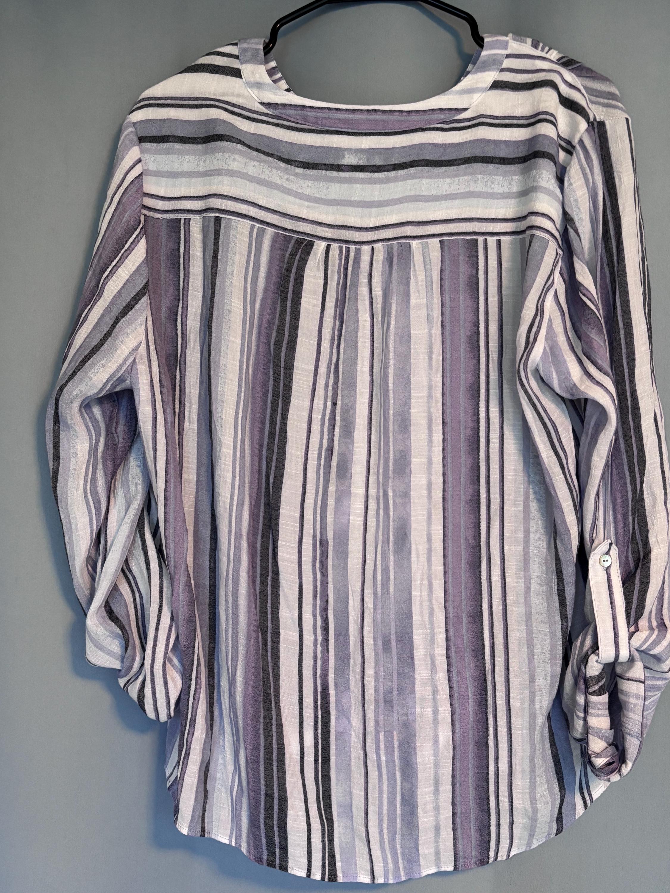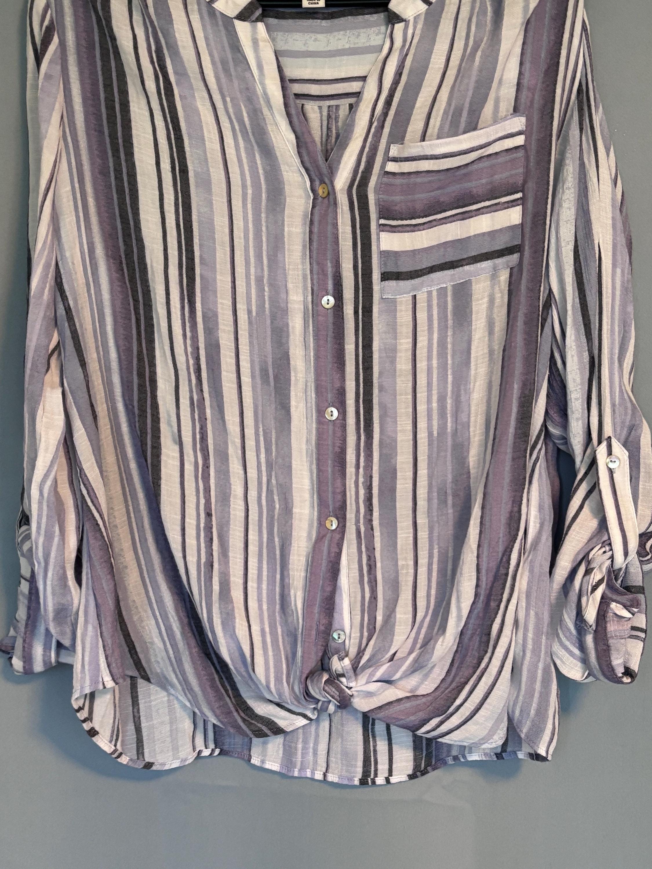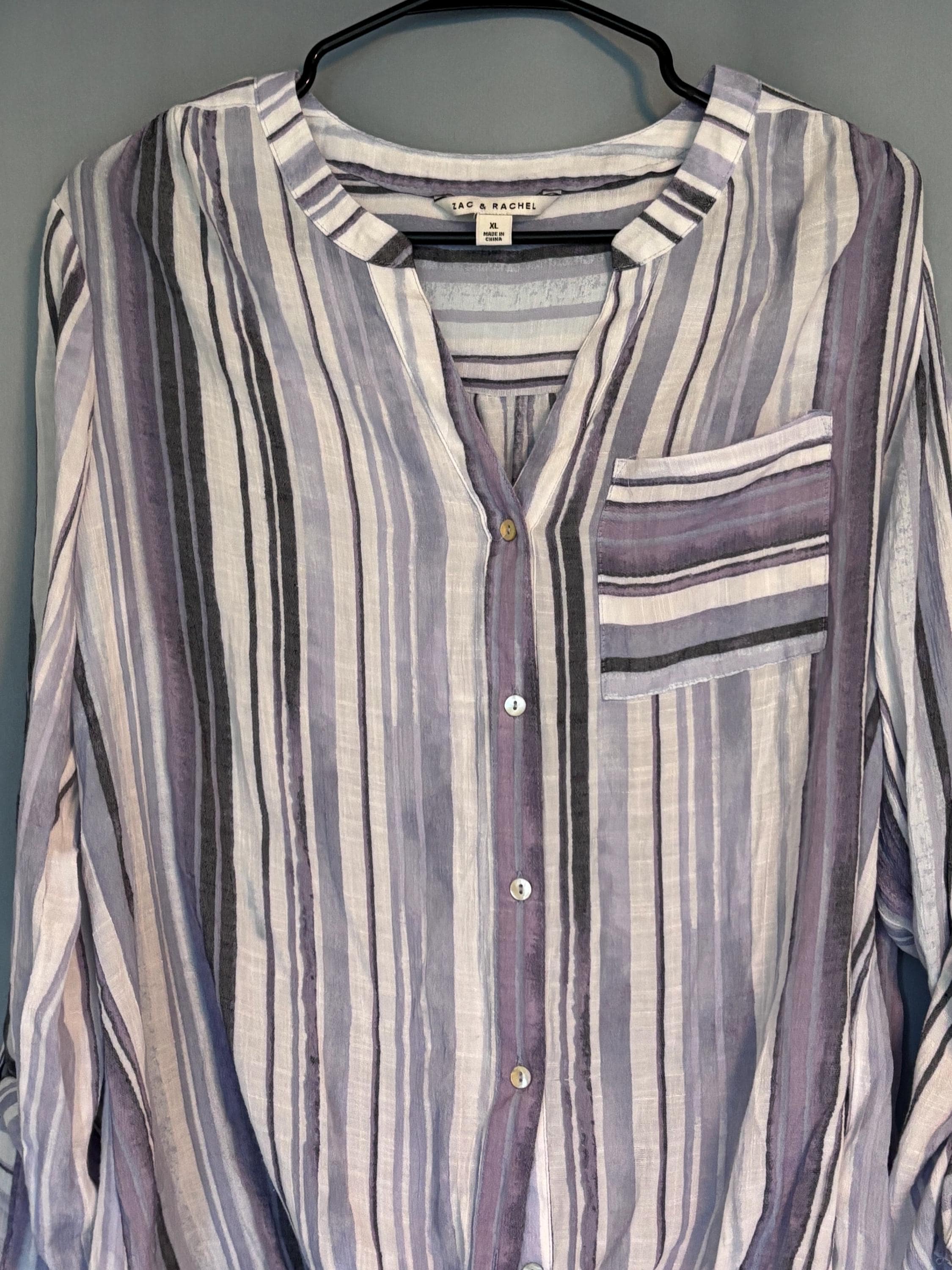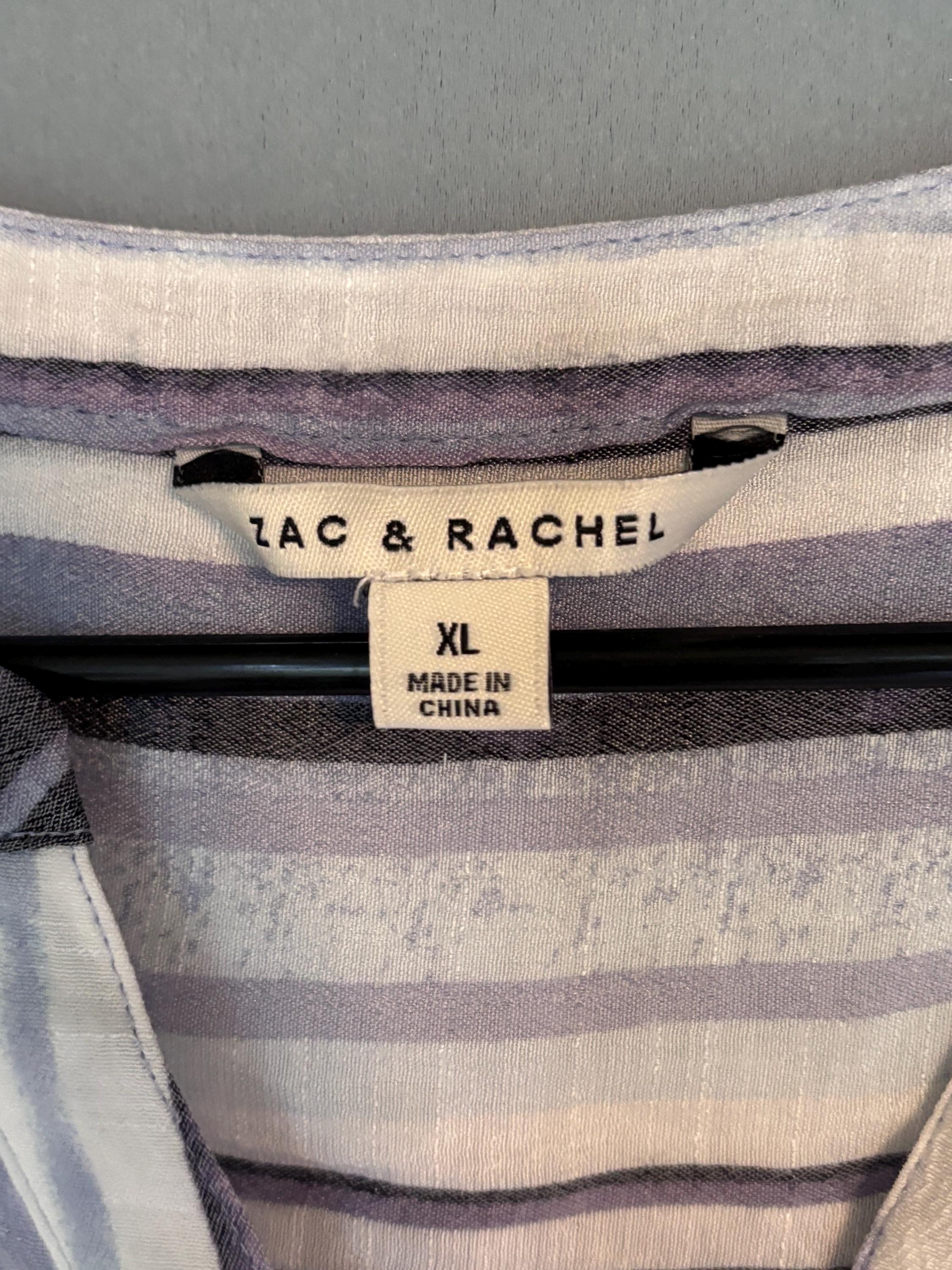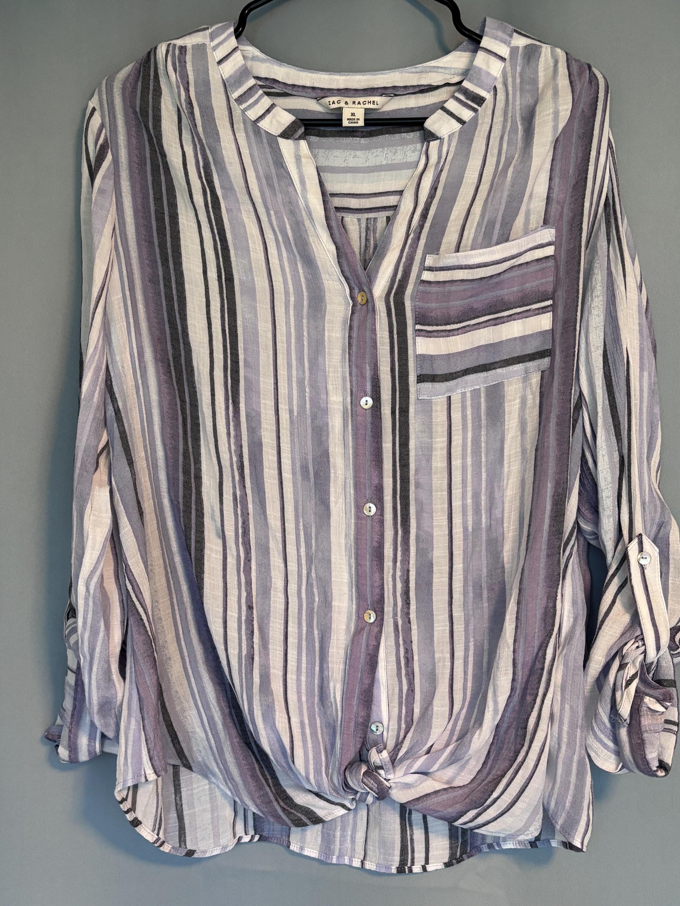 VISIT jaxinabox.com FOR ALL OUR LISTINGS!Zac & Rachel Purple Black White Striped Button Down Tie Top Size XL