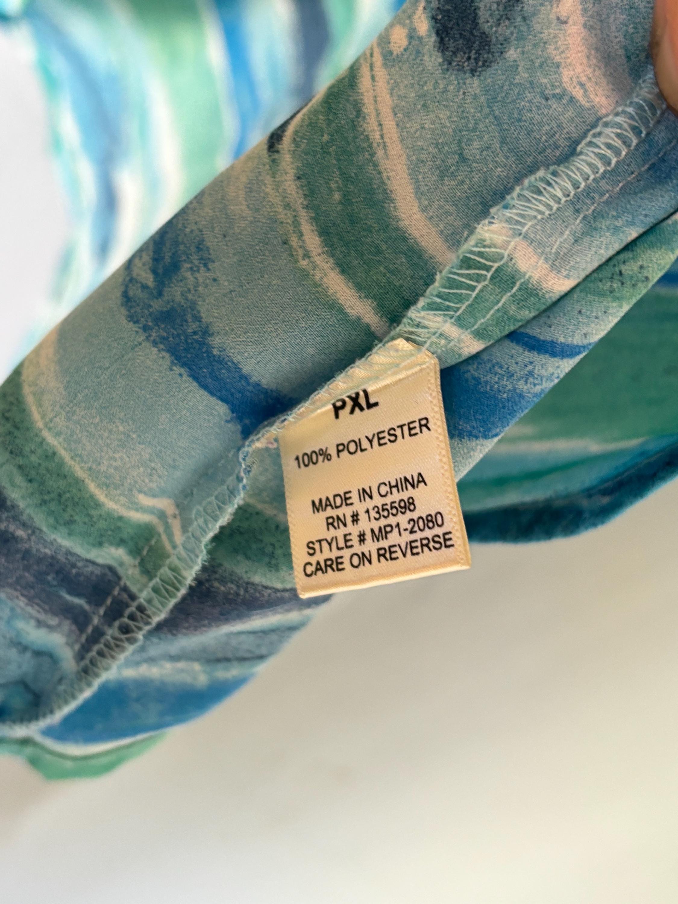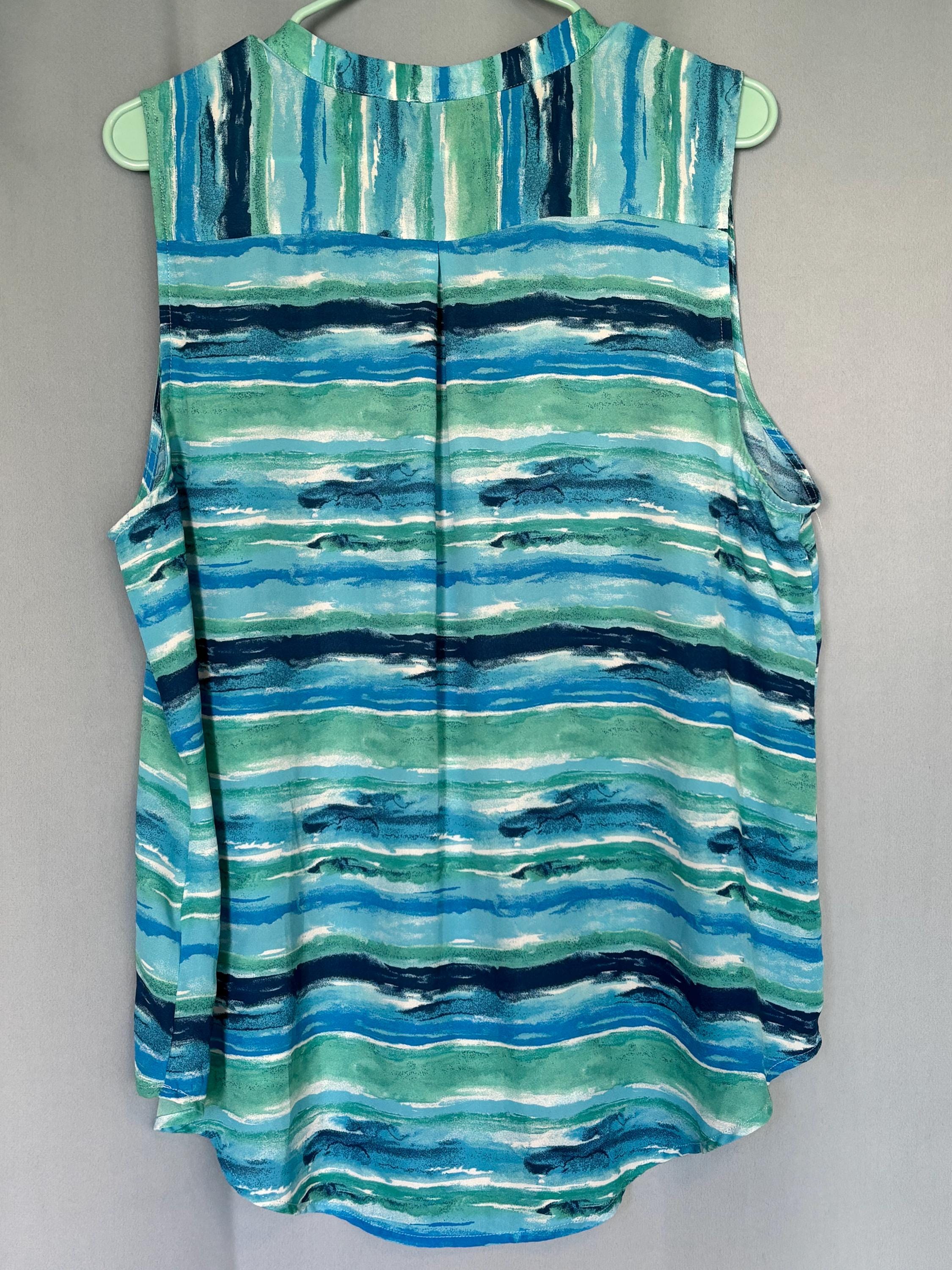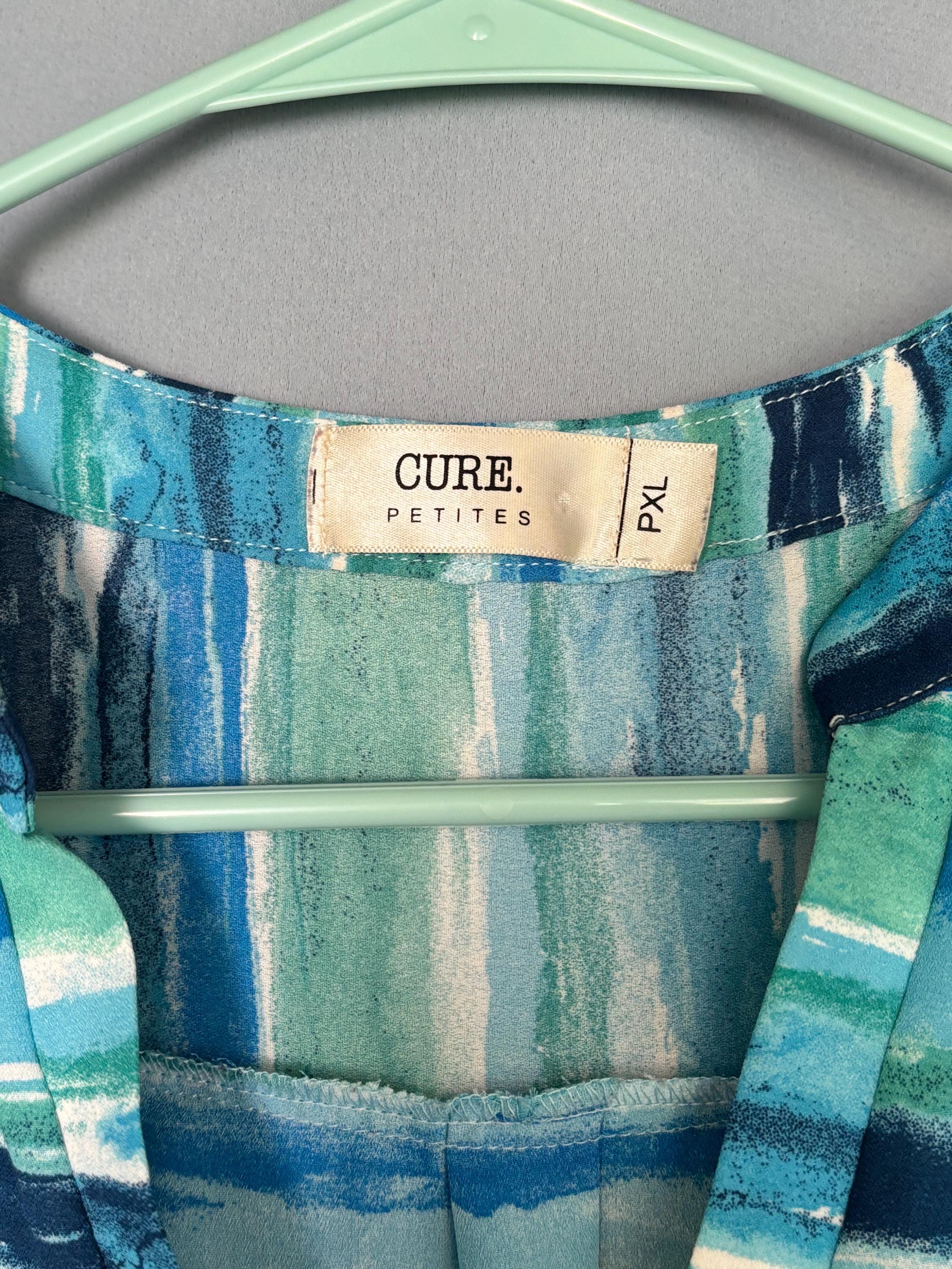 VISIT jaxinabox.com FOR ALL OUR LISTINGS!Cure Pullover Blouse Blue Green Ocean Sleeveless V Neck Asymmetrical Petite PXL