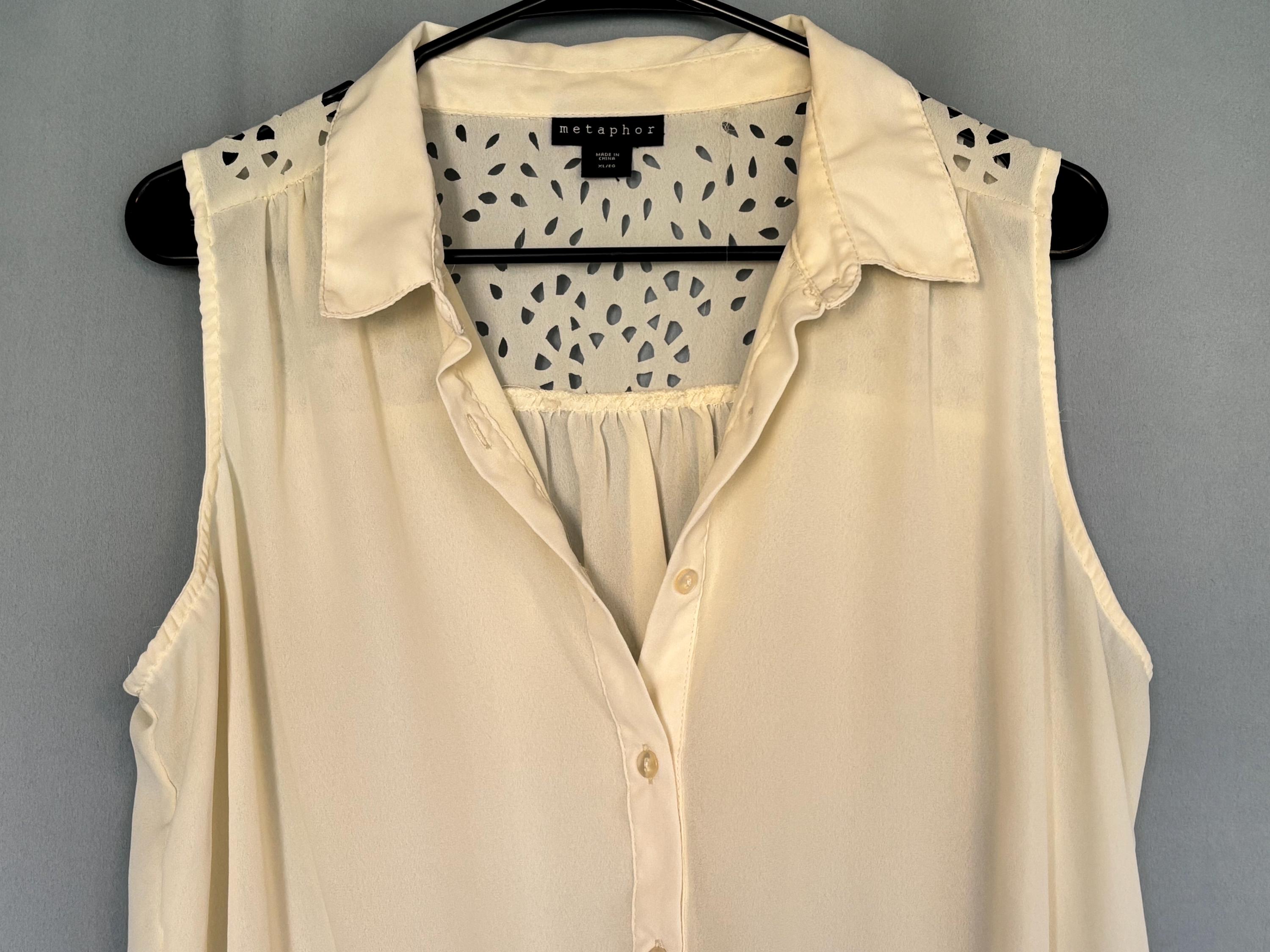 VISIT jaxinabox.com FOR ALL OUR LISTINGS!Metaphor Woman’s Sheer Button Up Tank Top Blouse Shirt Cream XL