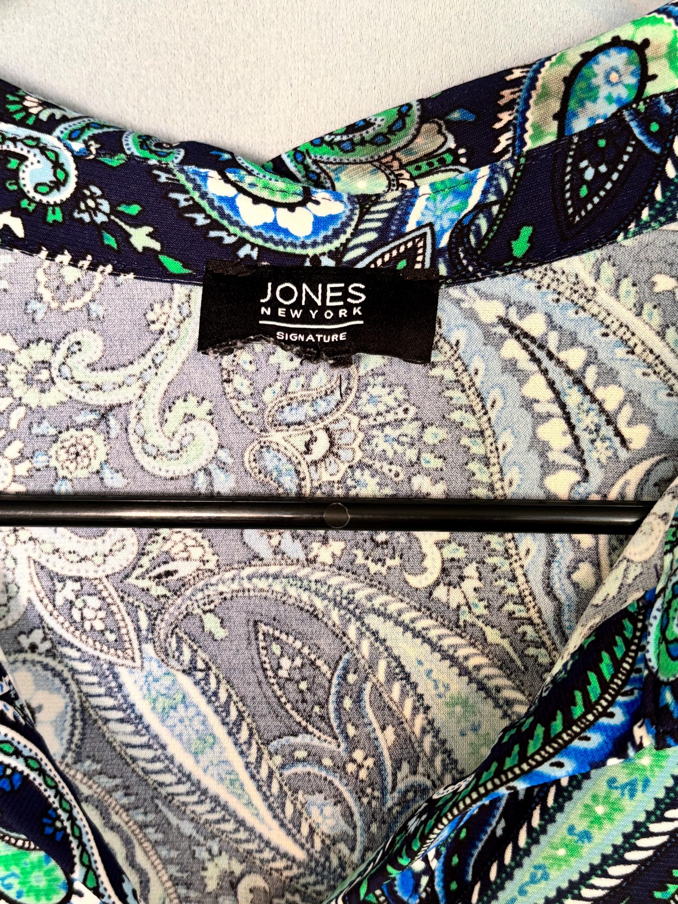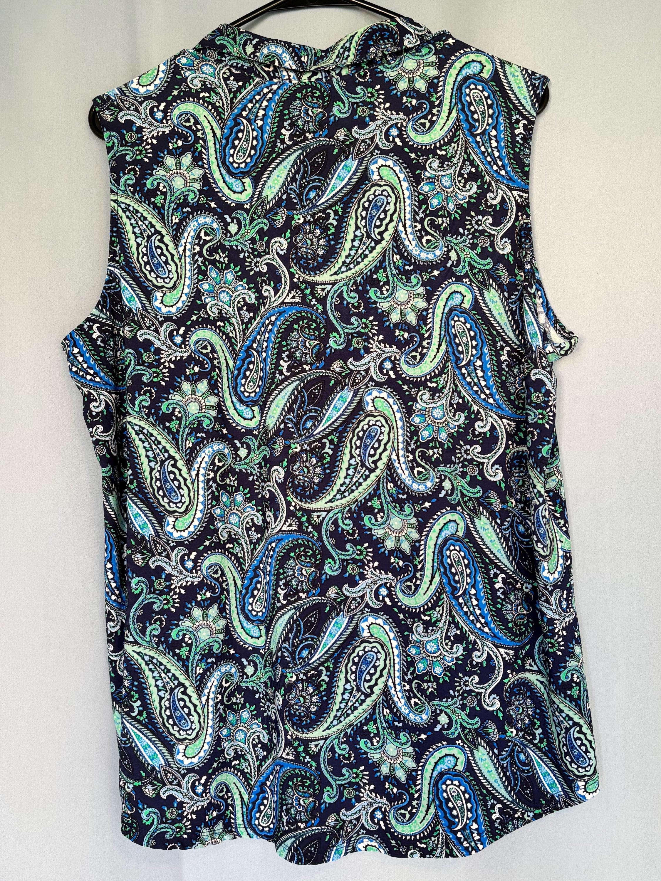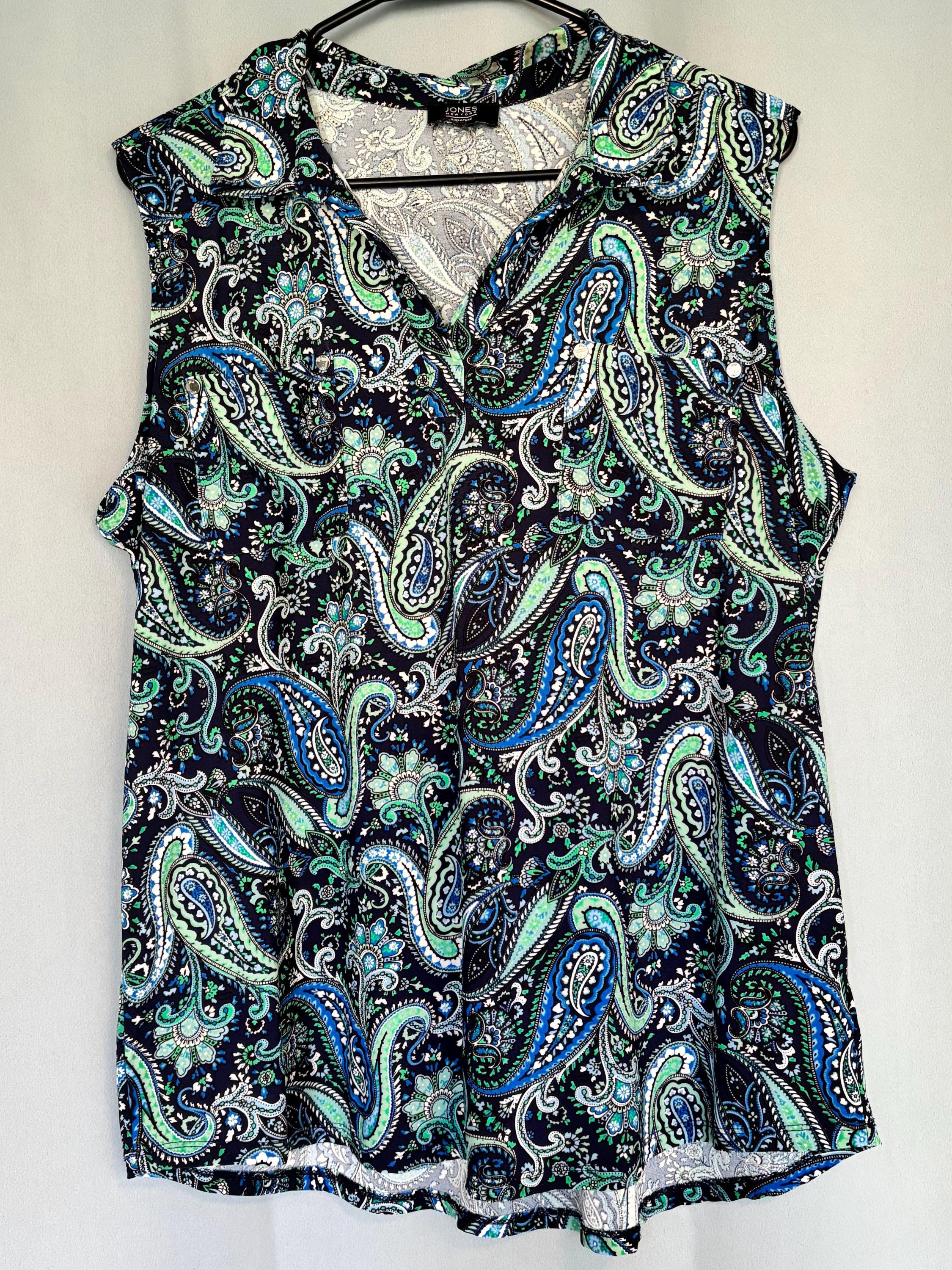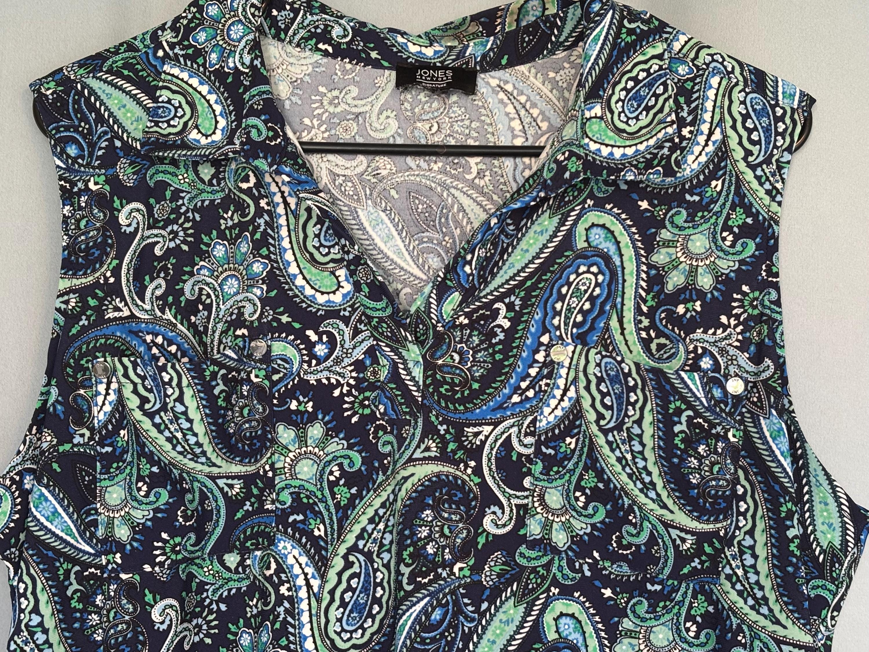 VISIT jaxinabox.com FOR ALL OUR LISTINGS!Jones New York Women's Sleeveless Paisley Flower Blue Green shirt Blouse Top XL