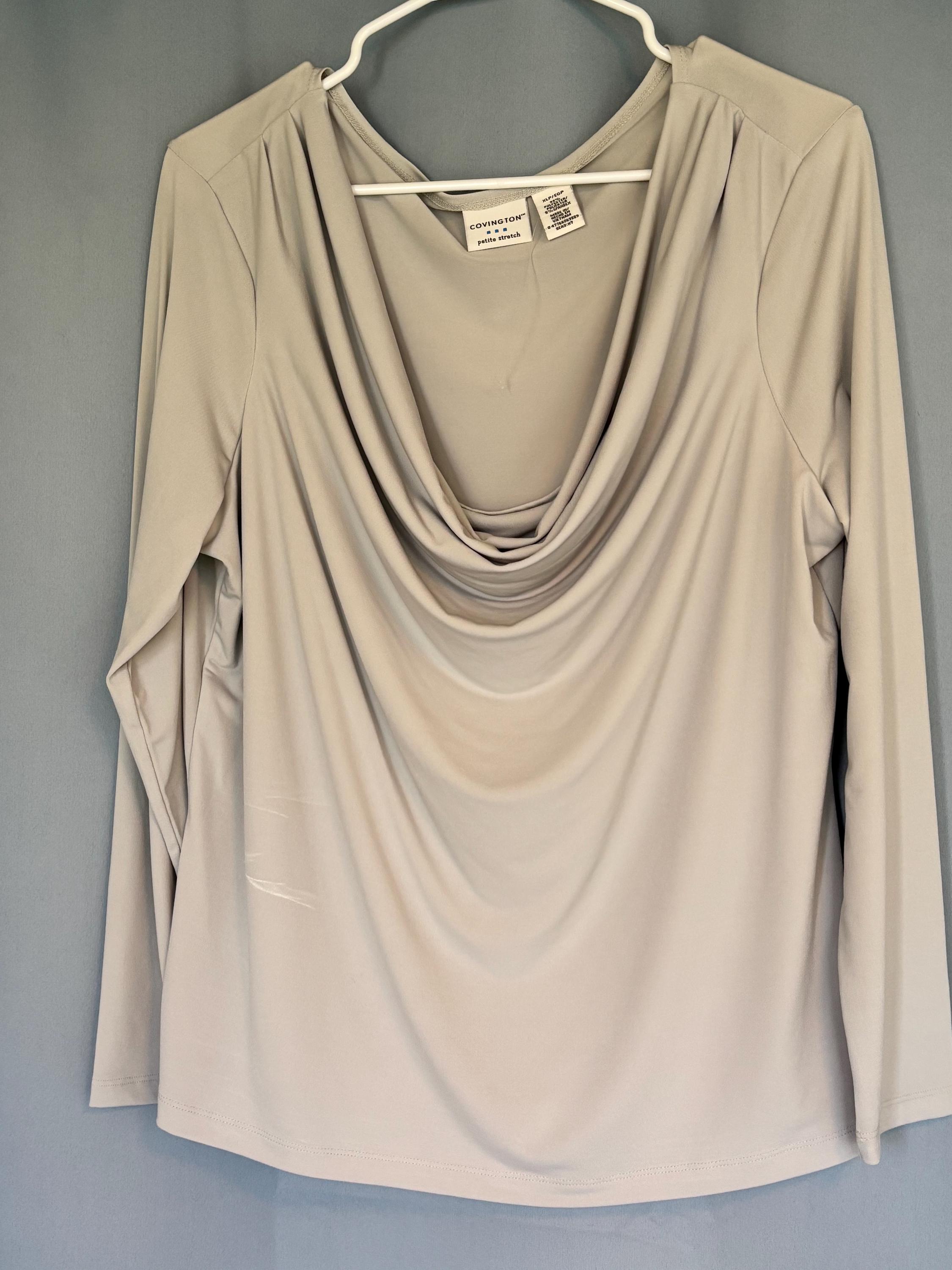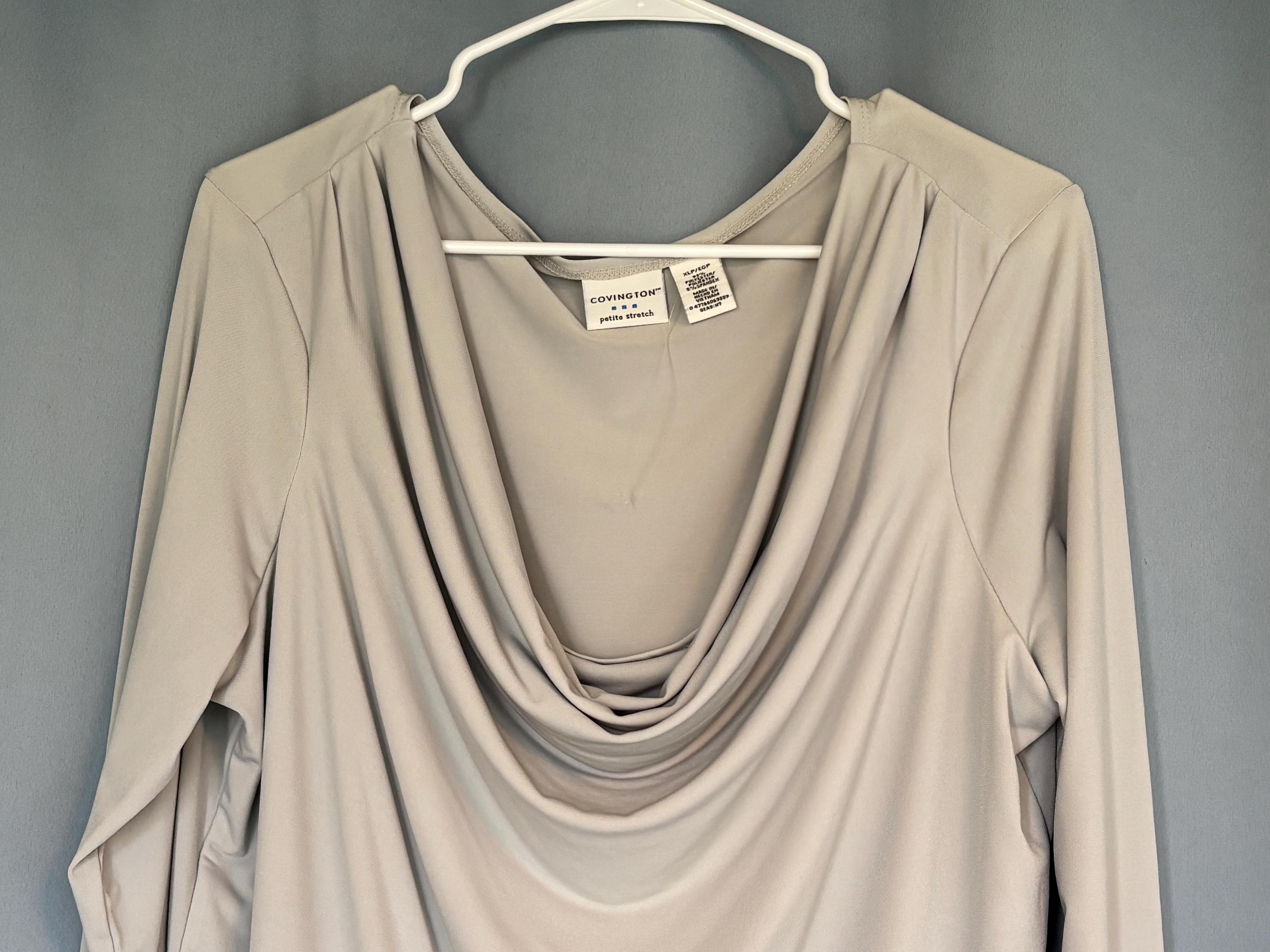 VISIT jaxinabox.com FOR ALL OUR LISTINGS!Covington Womens Drape Neck Knit Top Beige Attached Cami Petite Stretch PXL