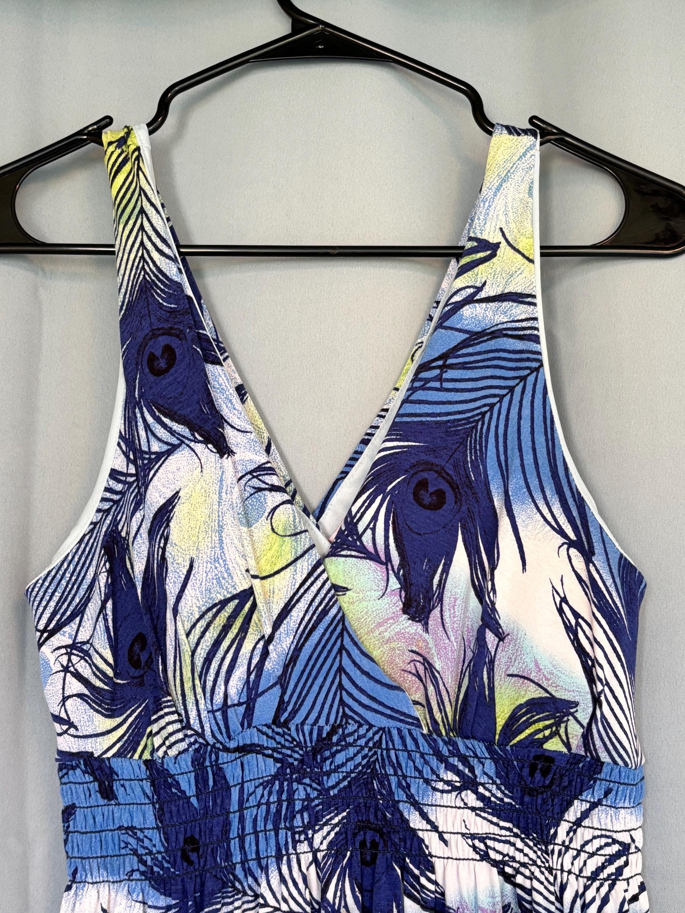 VISIT jaxinabox.com FOR ALL OUR LISTINGS!Blush Woman’s Tropical Halter Neck Dress Flower Blue Green White XL