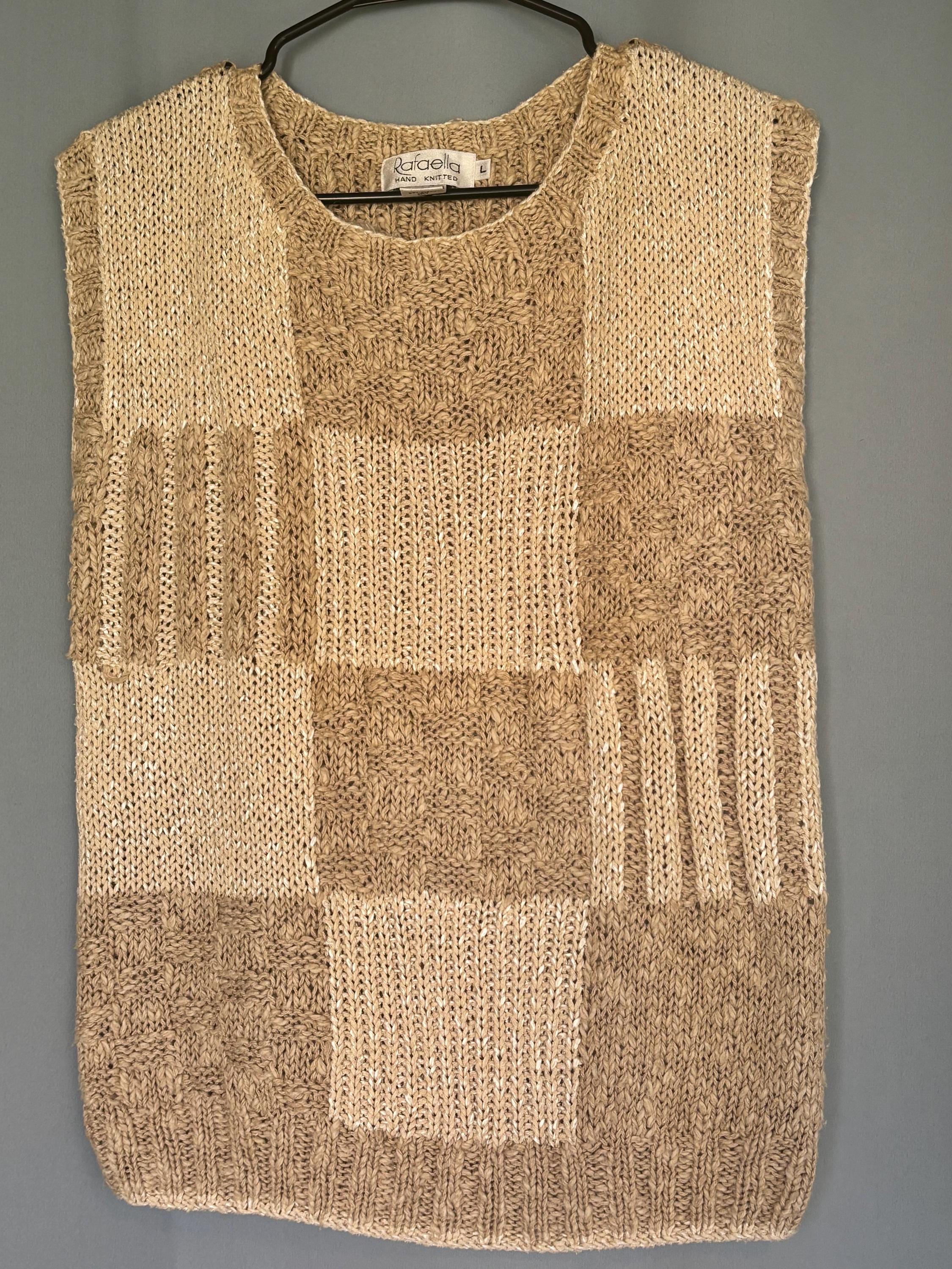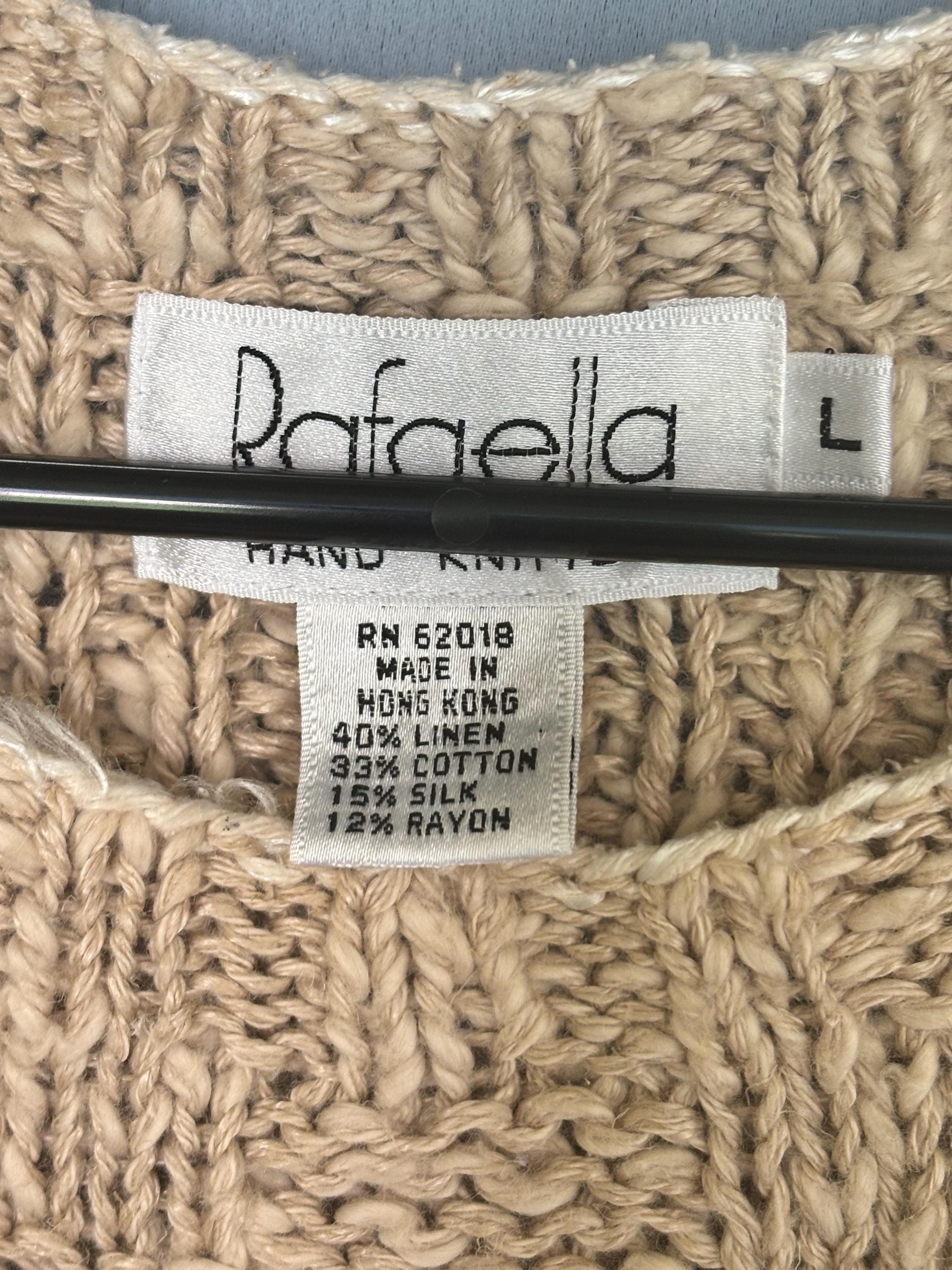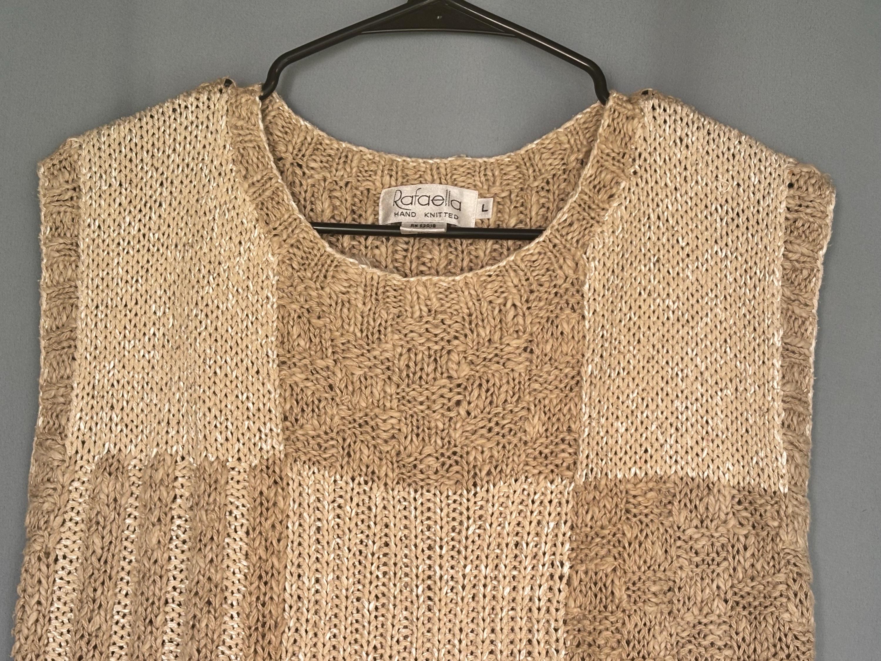 VISIT jaxinabox.com FOR ALL OUR LISTINGS!Rafaella Woman’s Hand Knitted Beige Wool Patch Work Sweater Blouse Shirt L