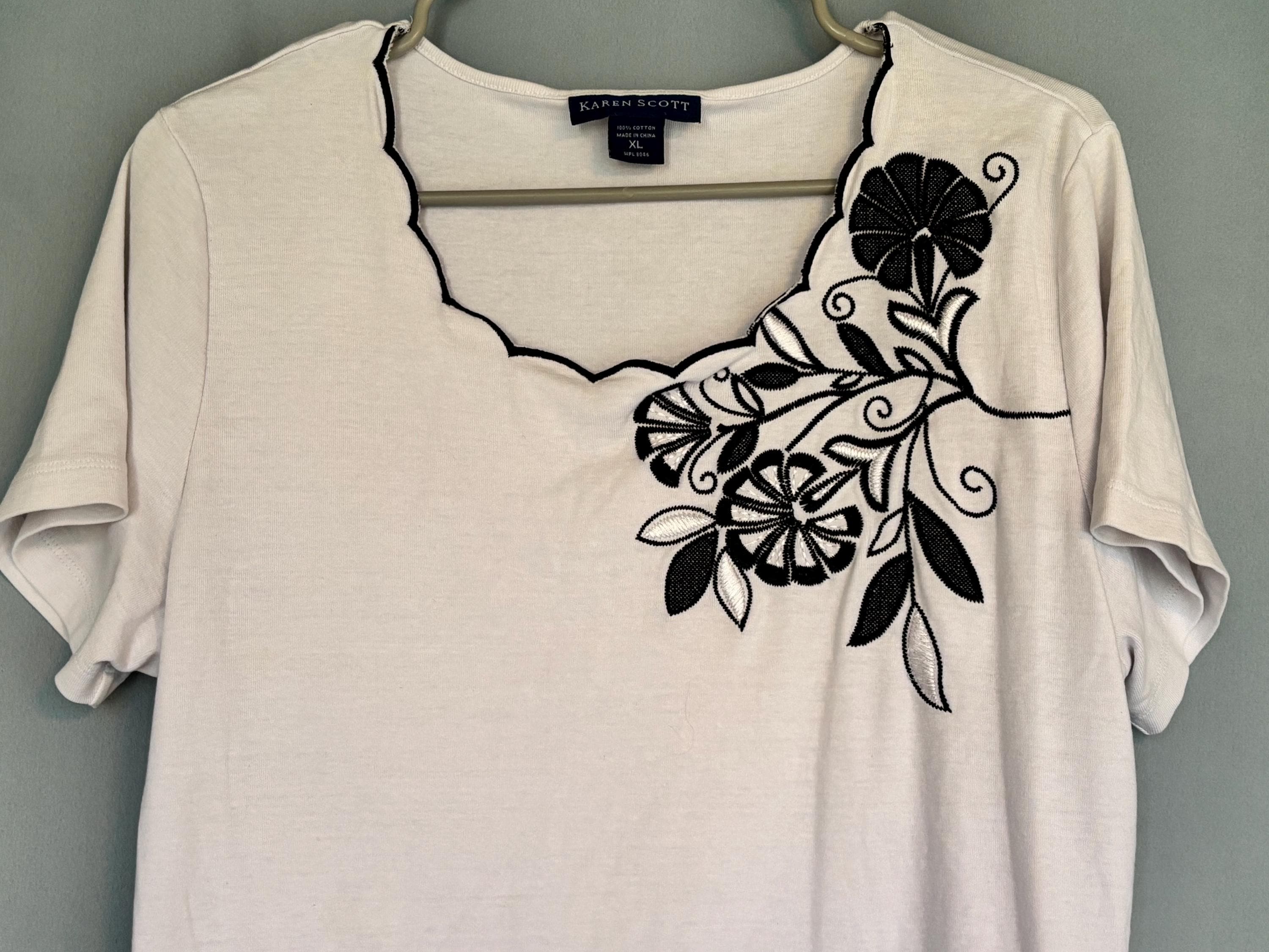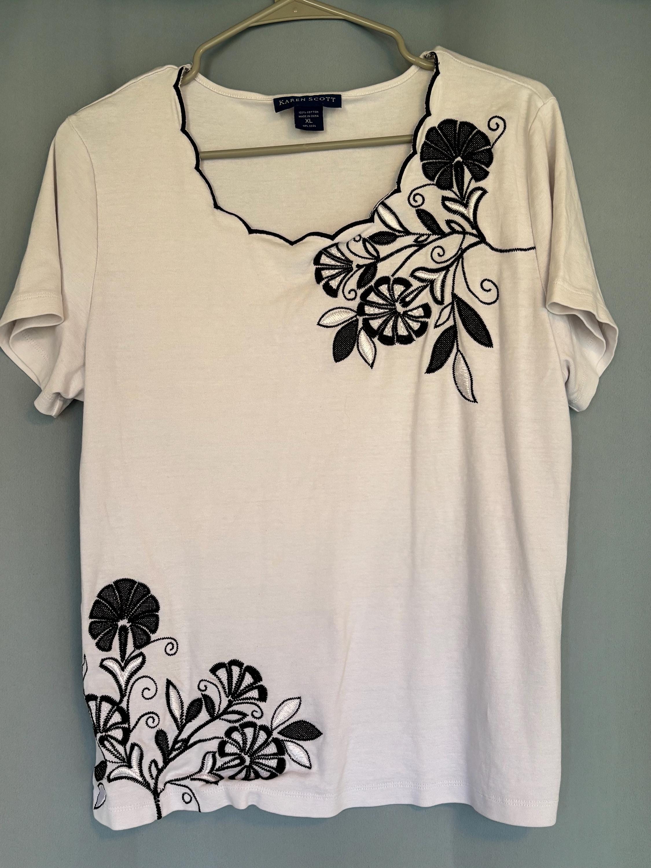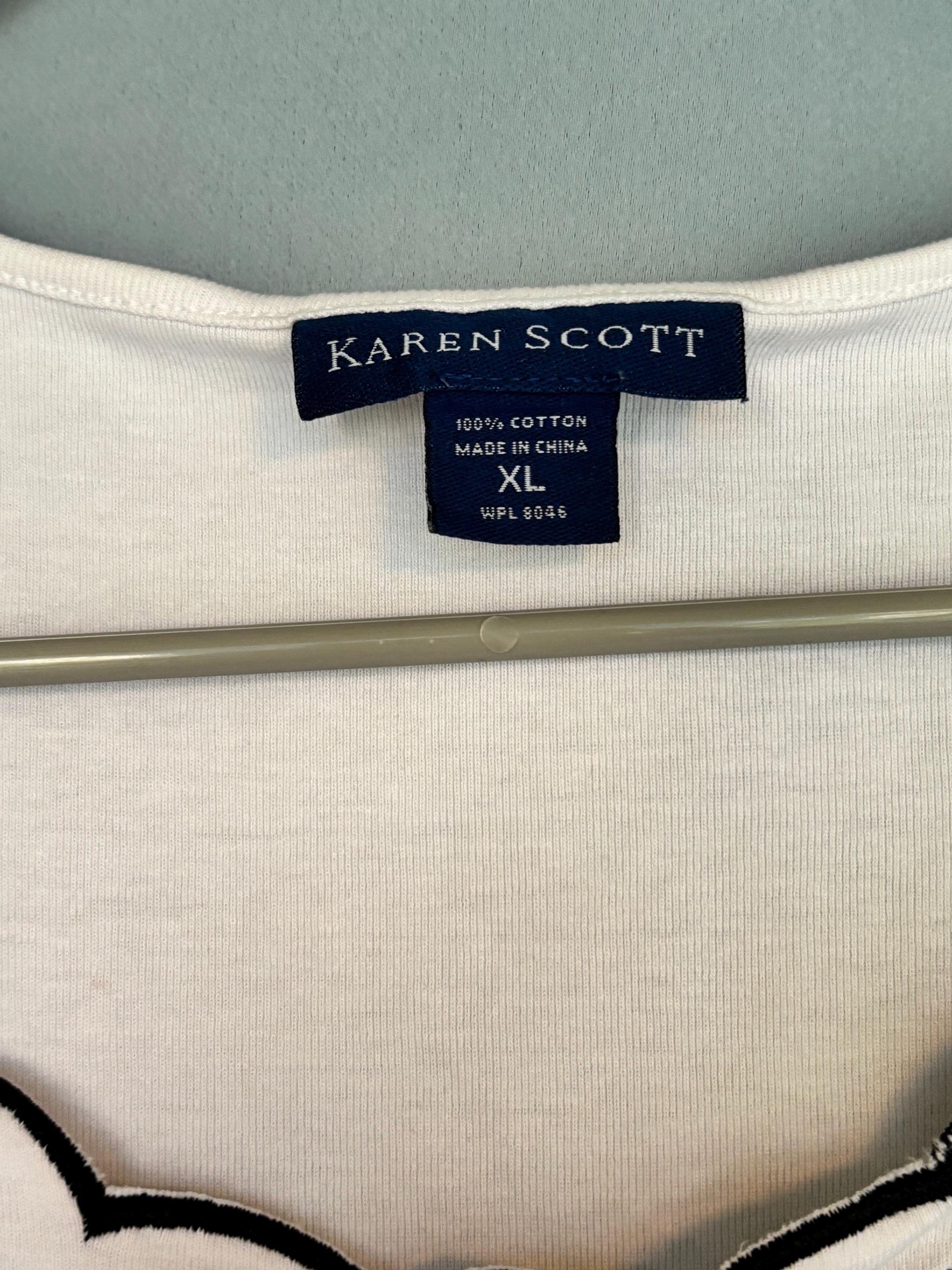 VISIT jaxinabox.com FOR ALL OUR LISTINGS!Karen Scott Womens White Floral Short Sleeve Wide Neck Shitt Top XL