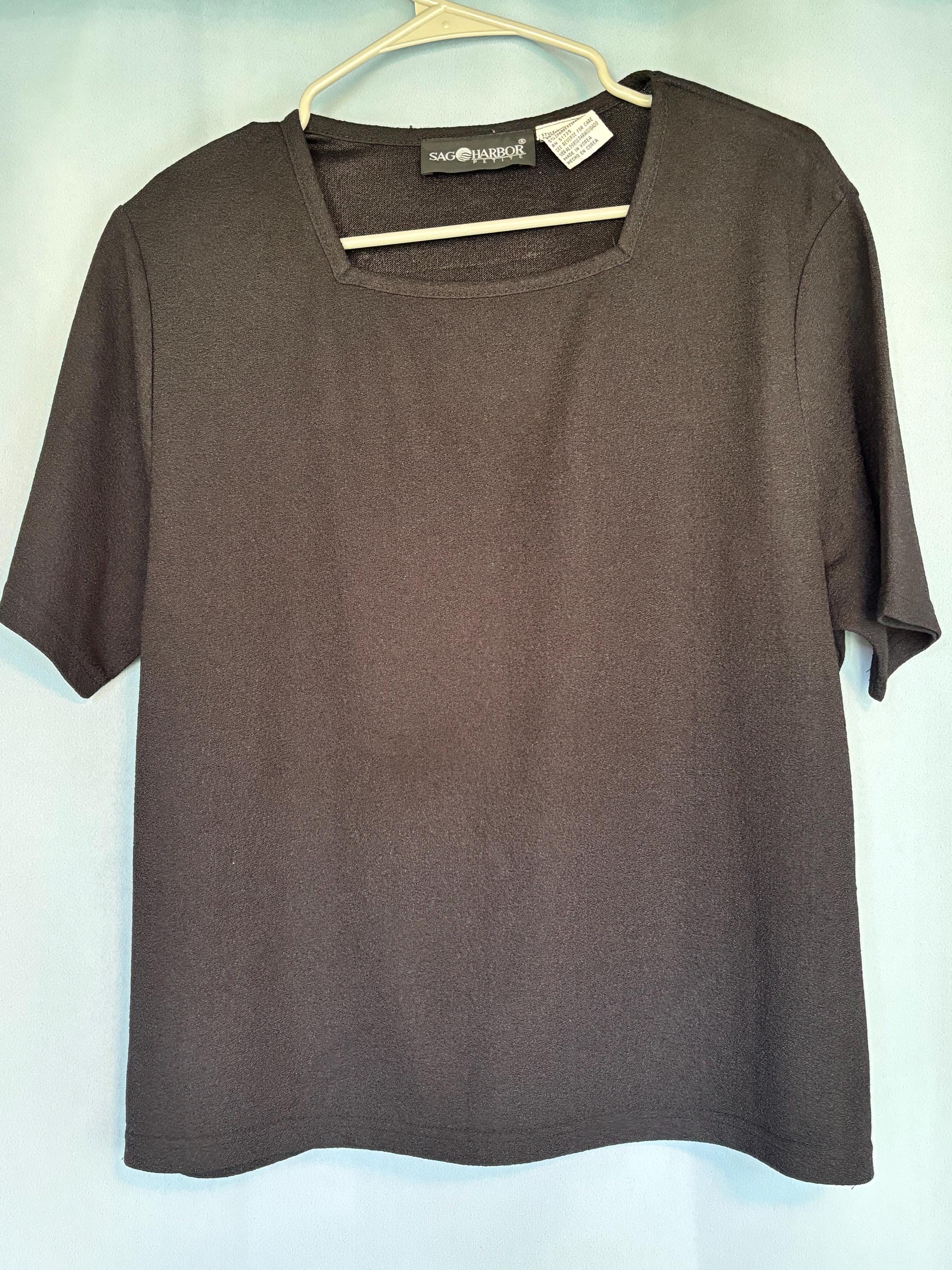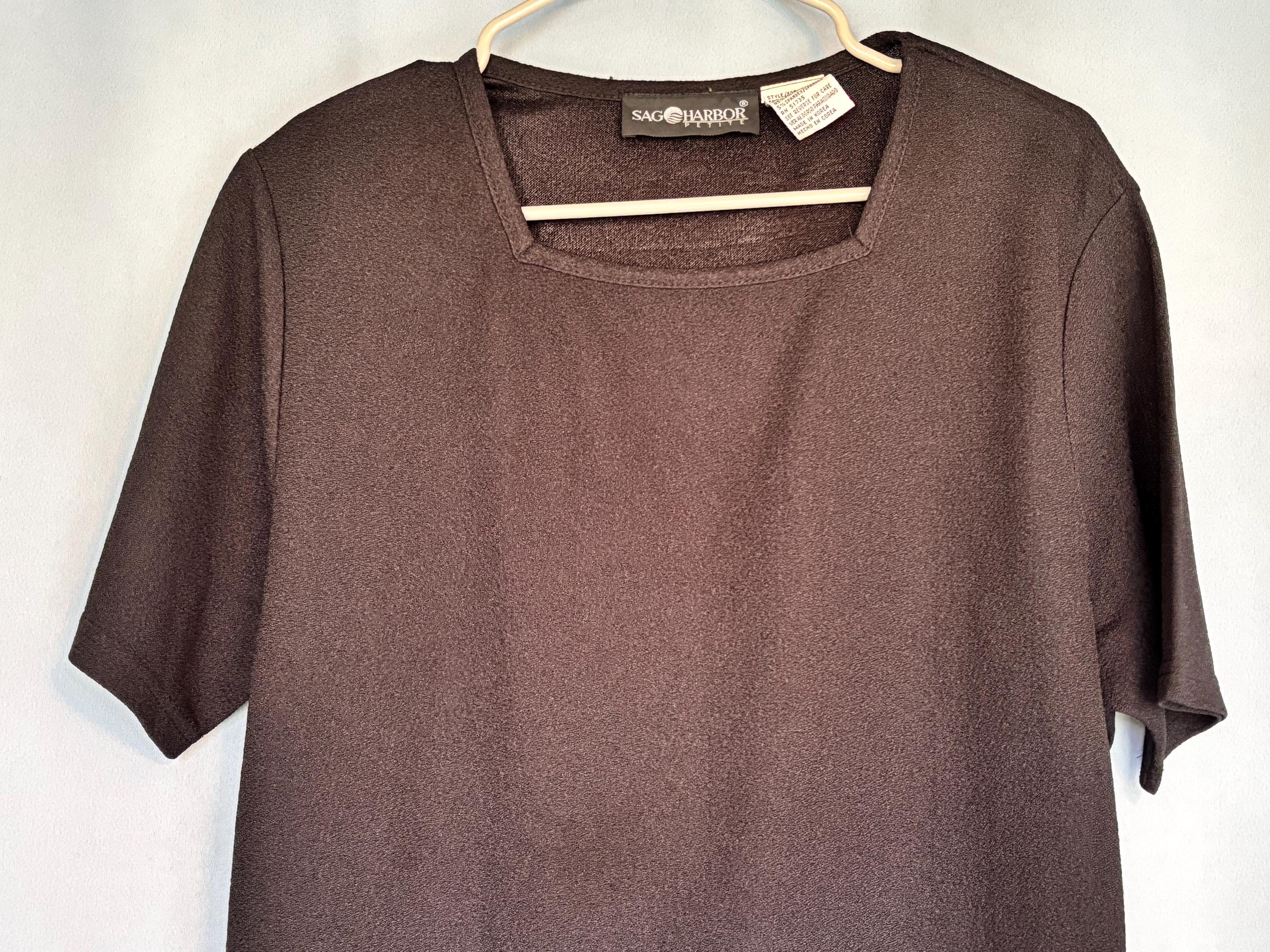VISIT jaxinabox.com FOR ALL OUR LISTINGS!Sag Harbor Top Womens Short Sleeve Pullover Black Side Slits Square Neck Large L