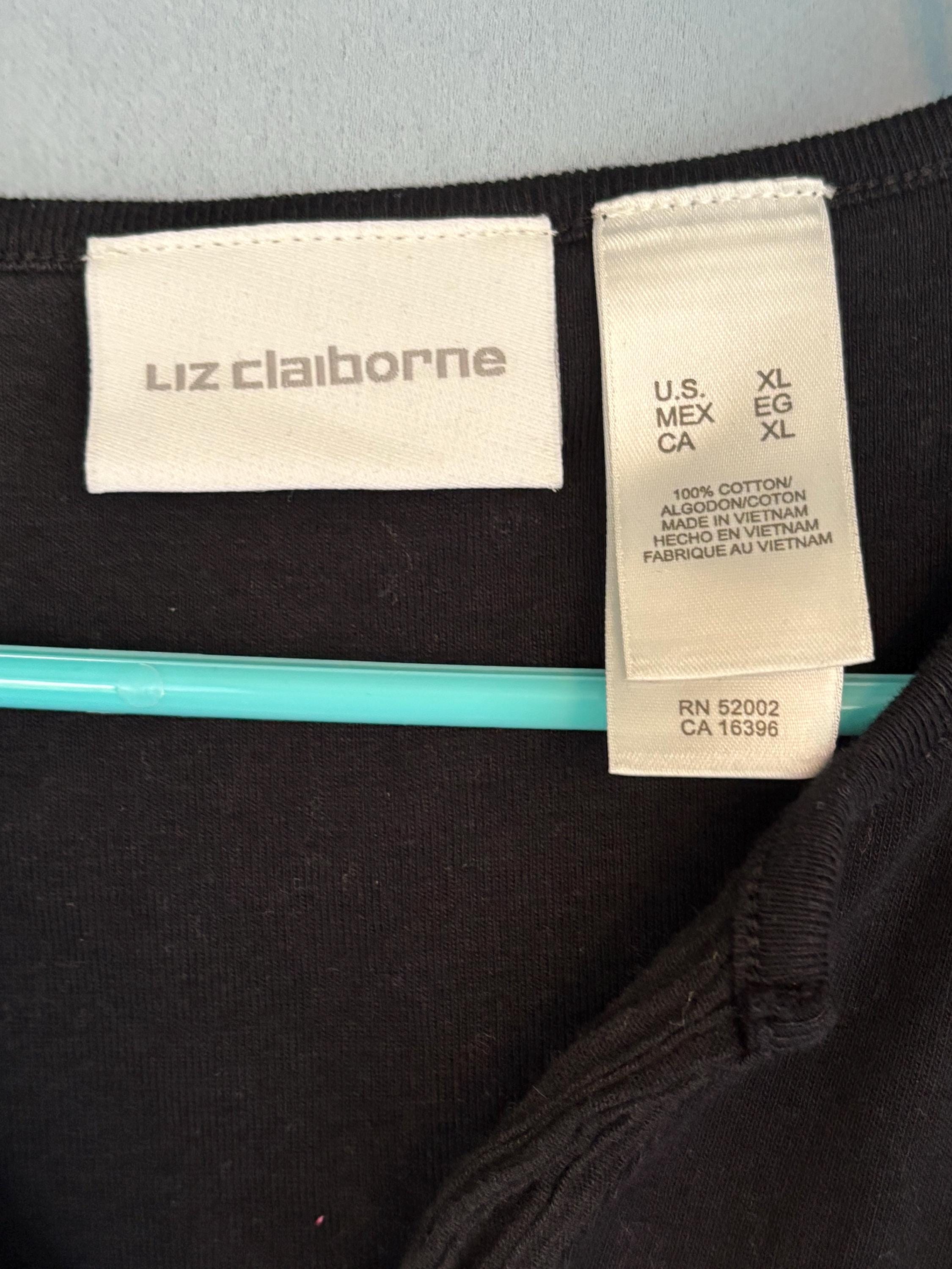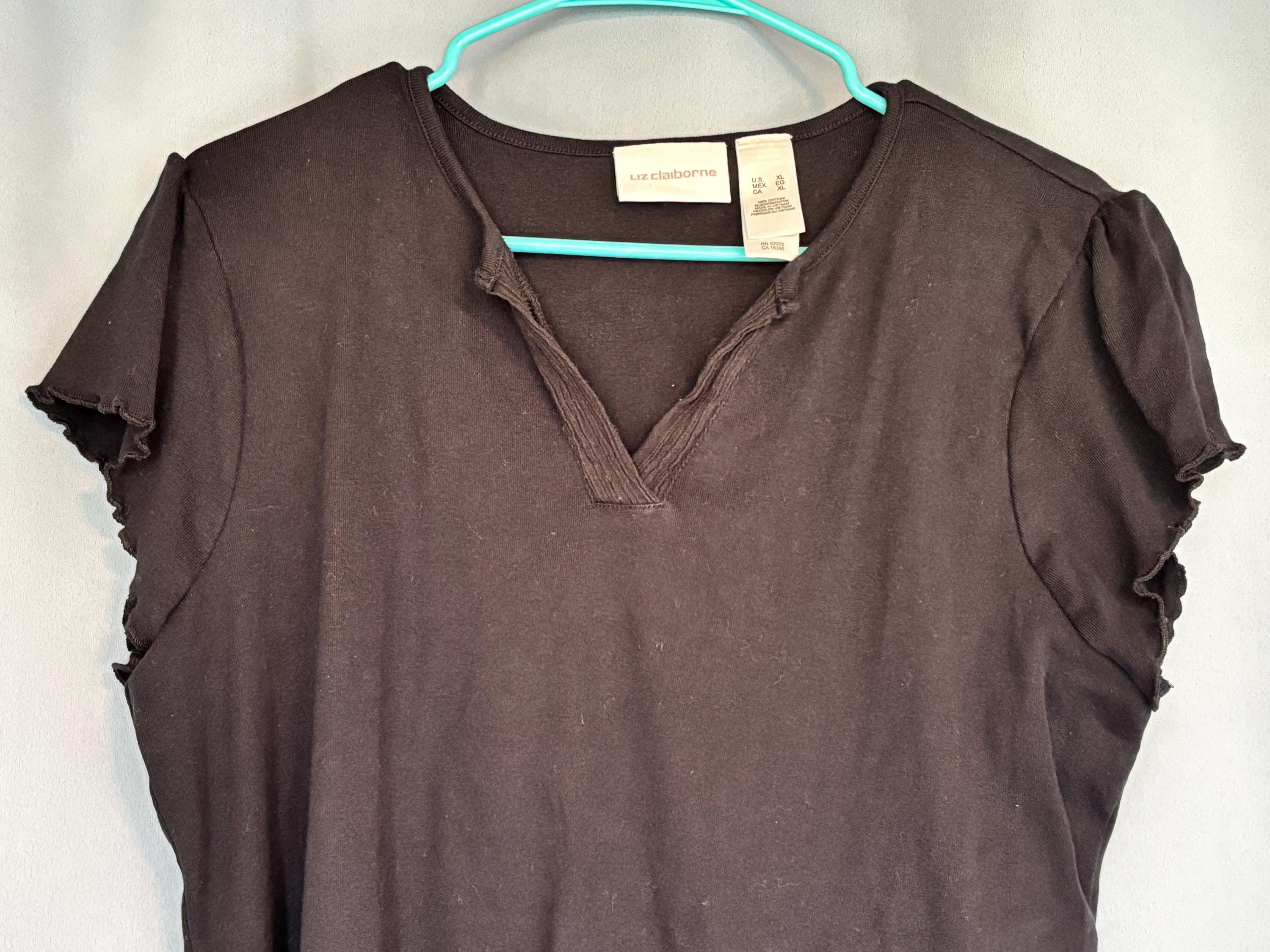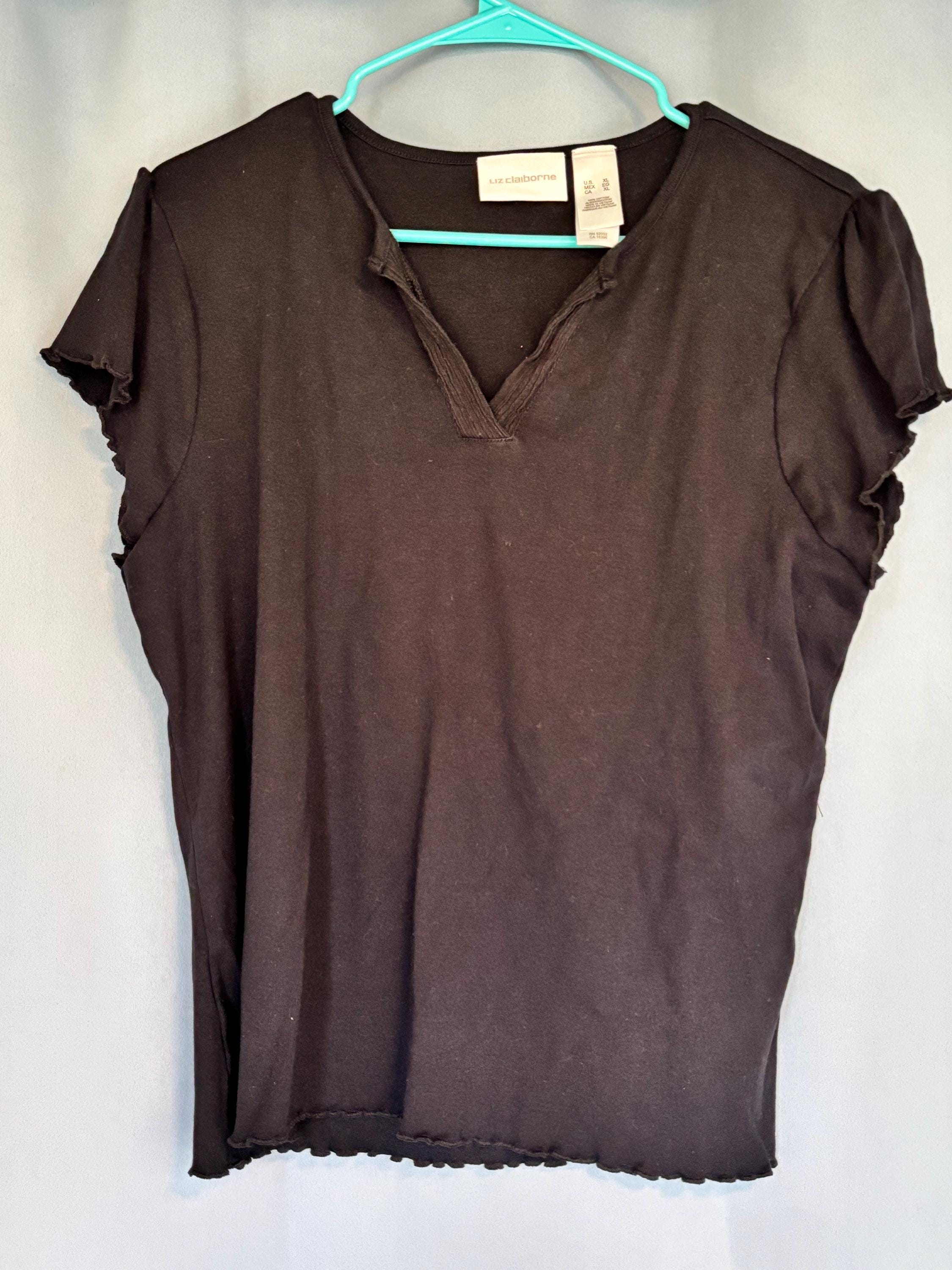 VISIT jaxinabox.com FOR ALL OUR LISTINGS!Liz Claiborne Lizwear Women's Top Tee Shirt Frill Black V-Neck XL
