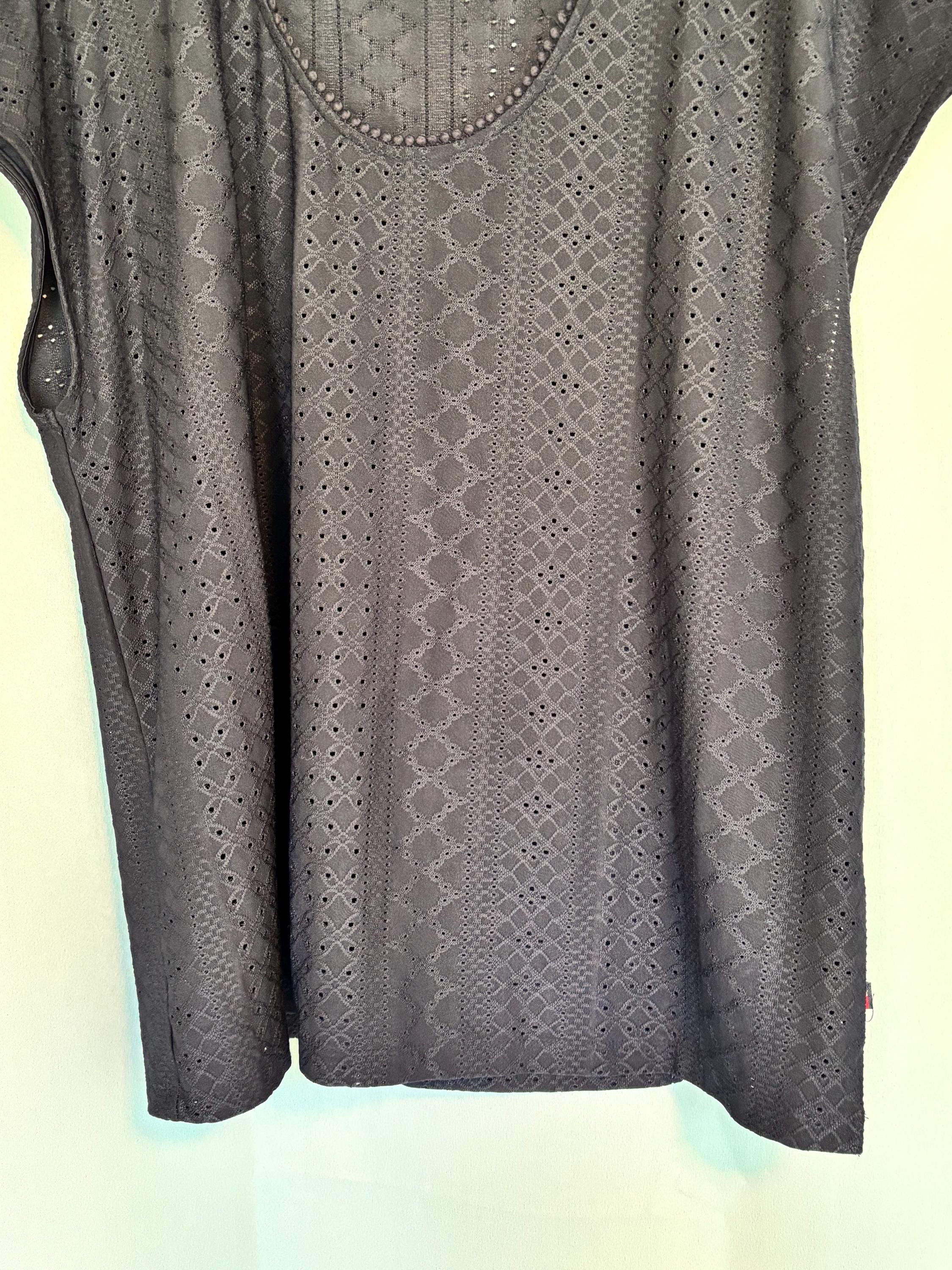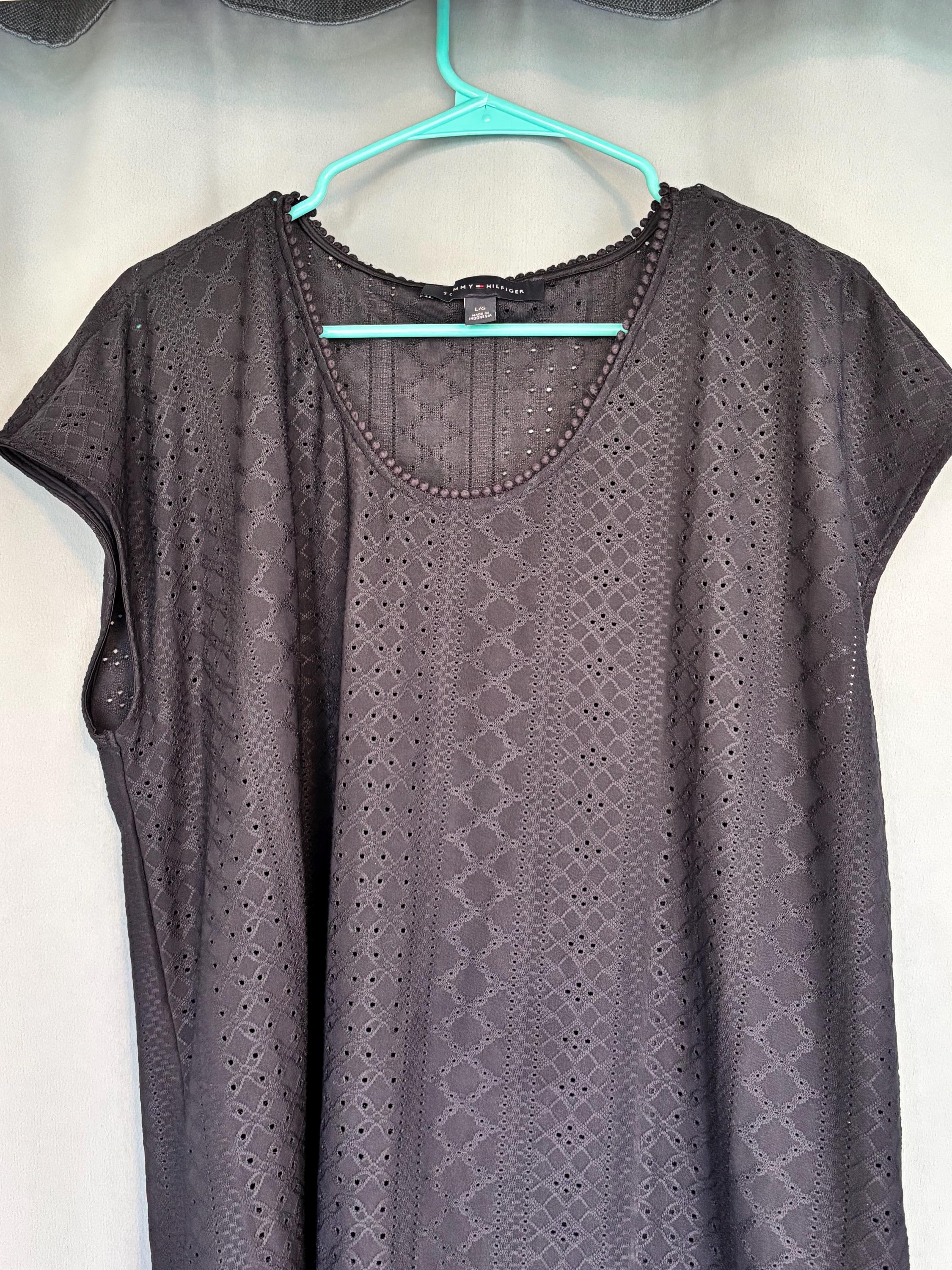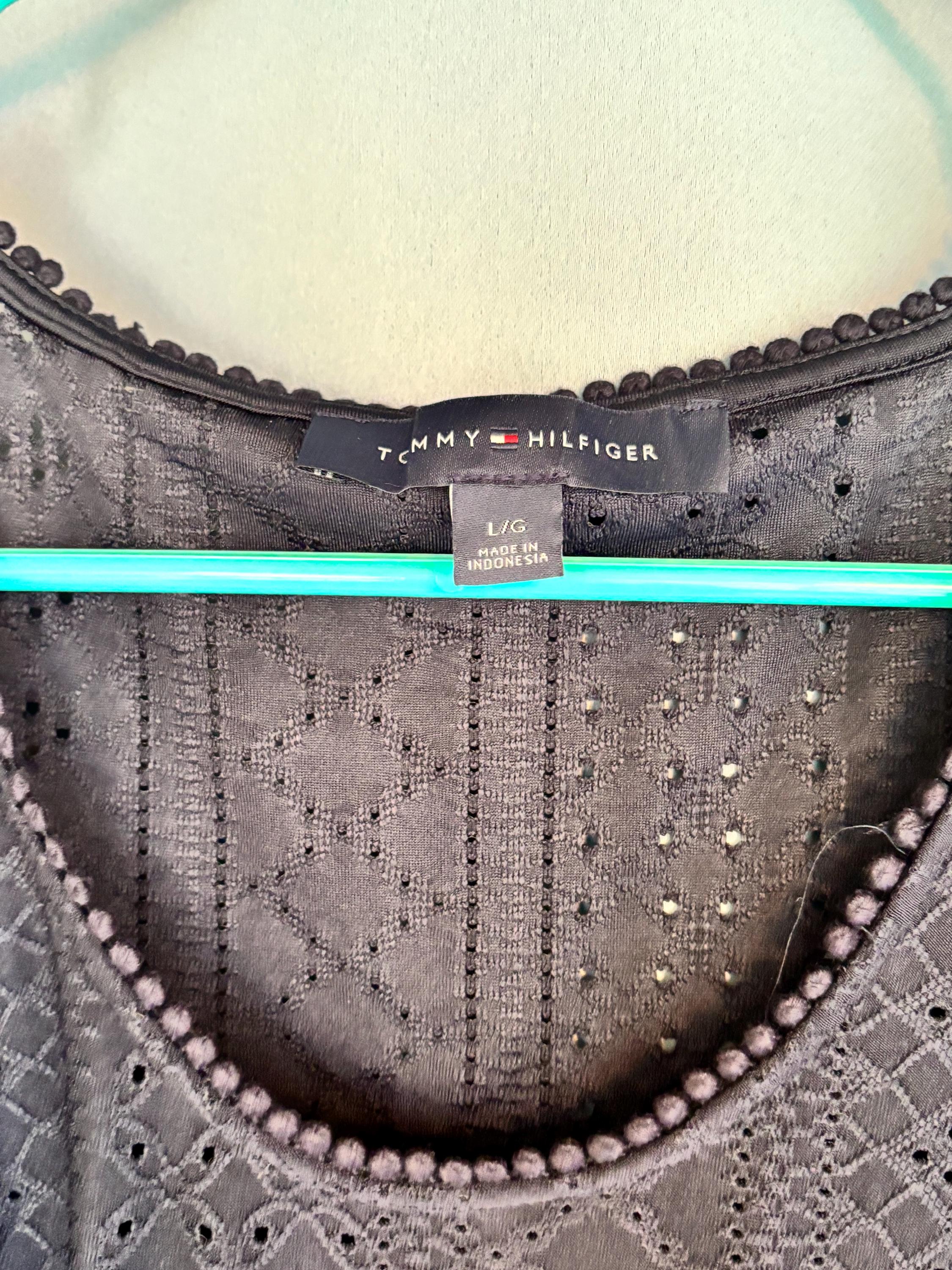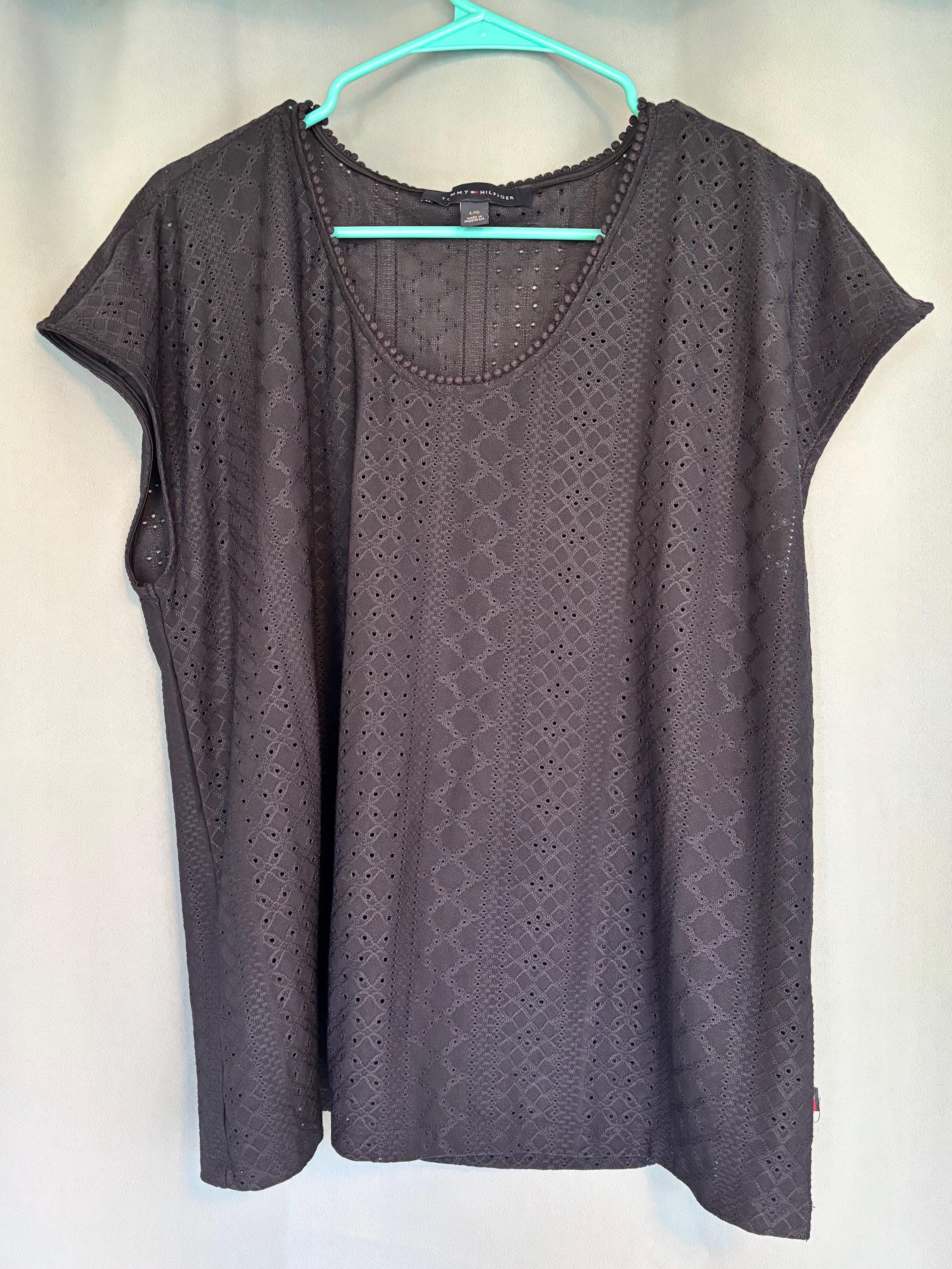 VISIT jaxinabox.com FOR ALL OUR LISTINGS!Tommy Hilfiger Women’s Black Mesh Perforated Shirt Top Blouse Sleeveless Large L