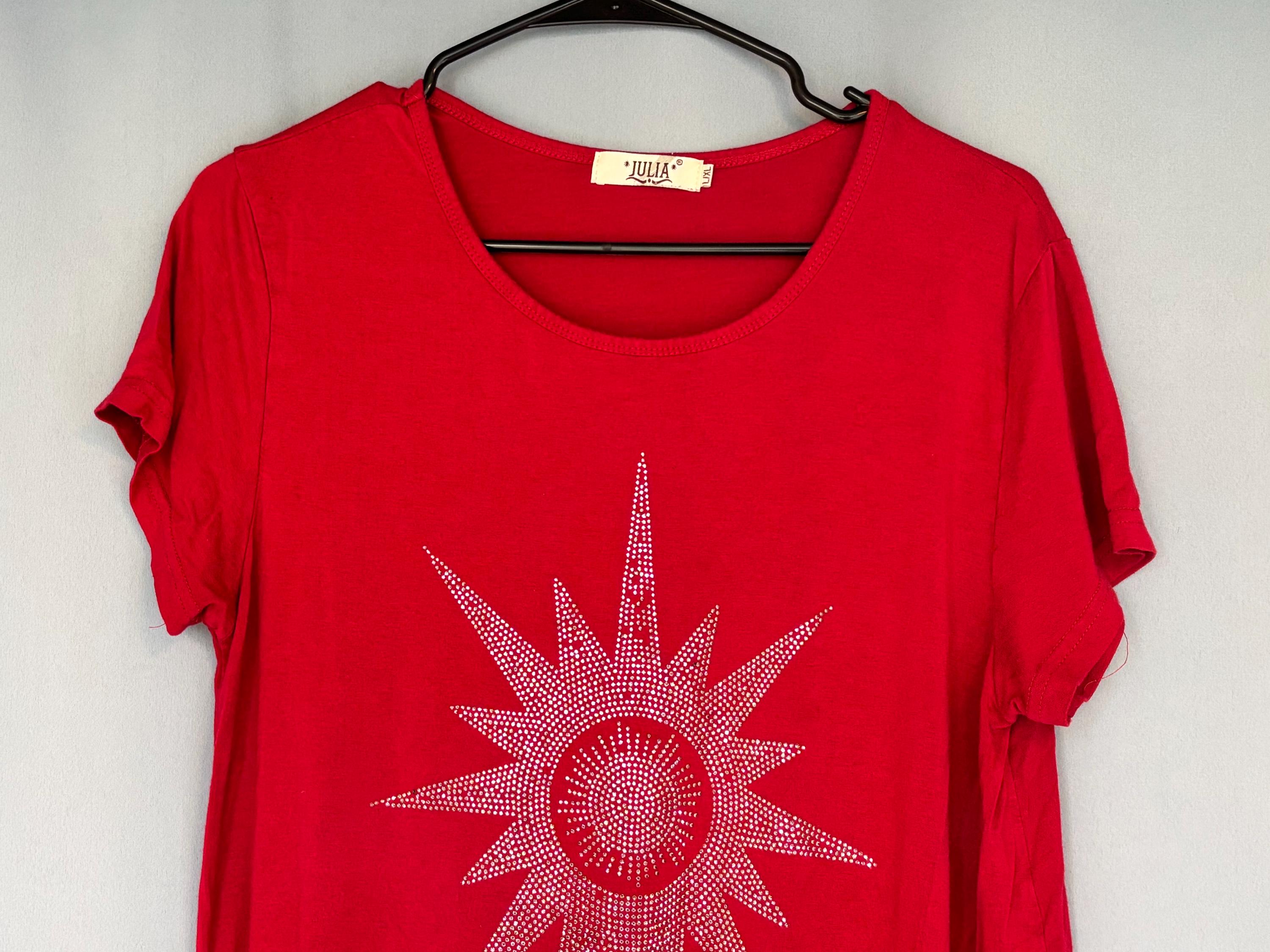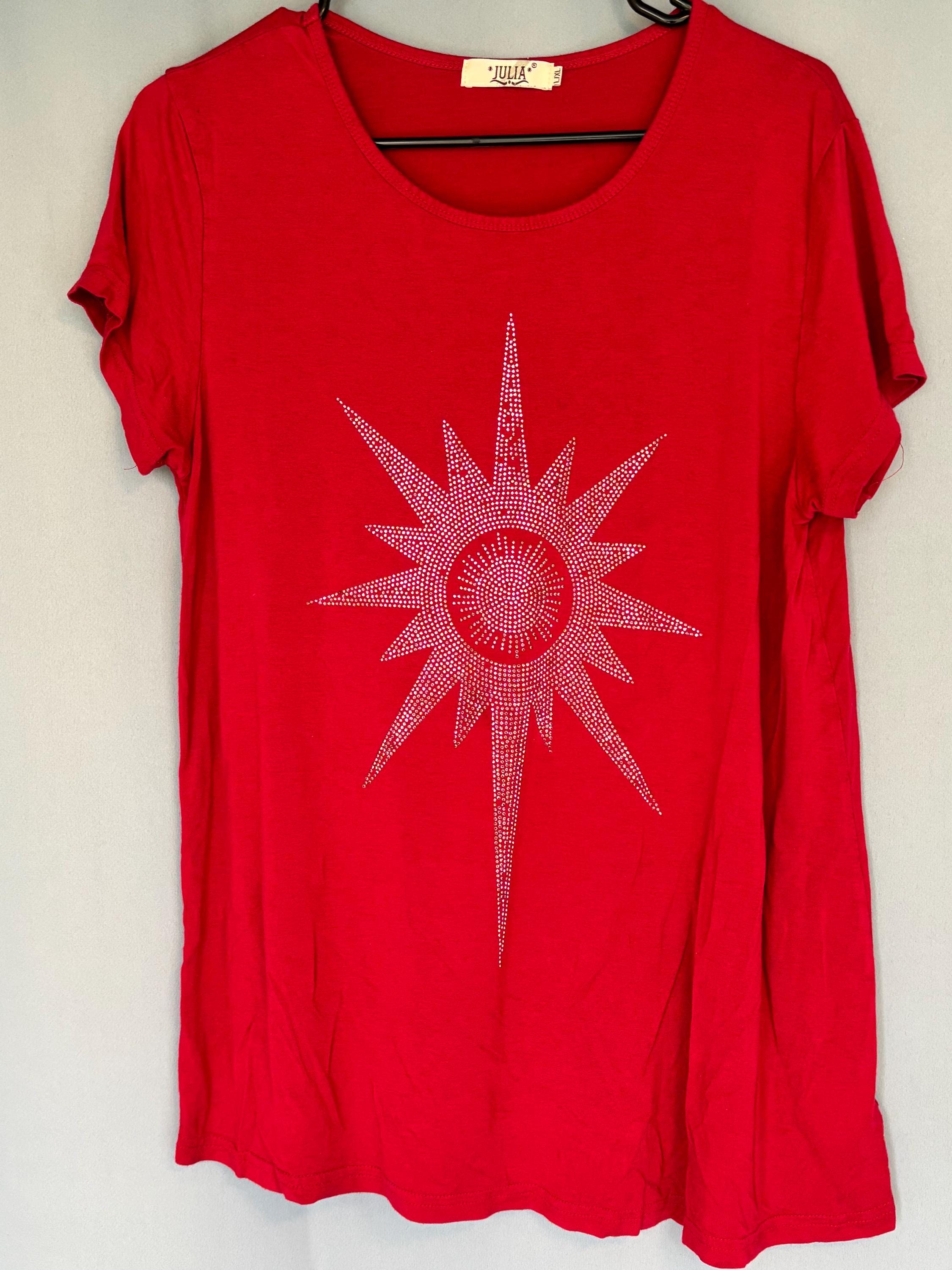 VISIT jaxinabox.com FOR ALL OUR LISTINGS!Julia Women’s Red Stretchy Studded Embroidered oversized Top Shirt Large L/XL