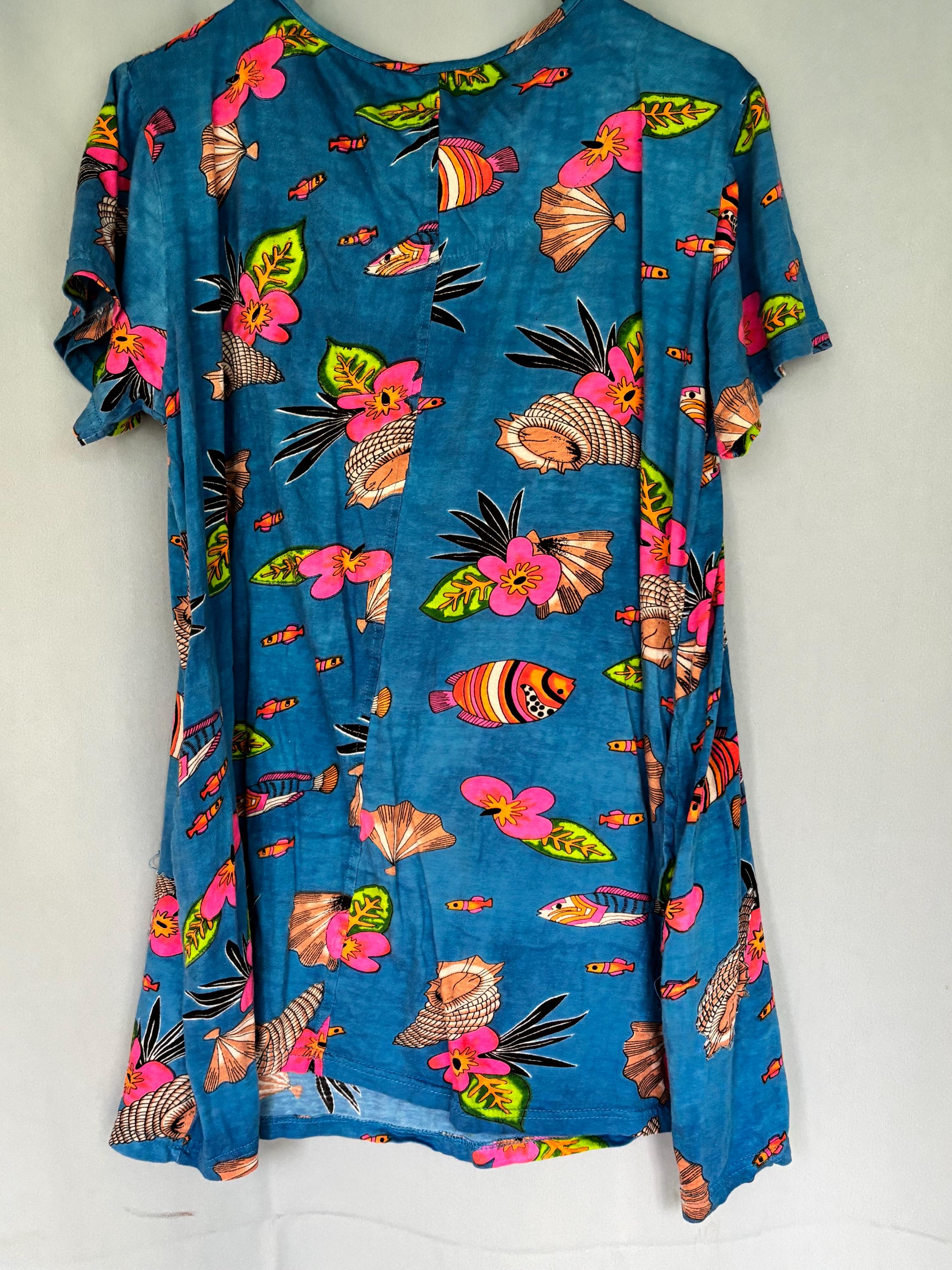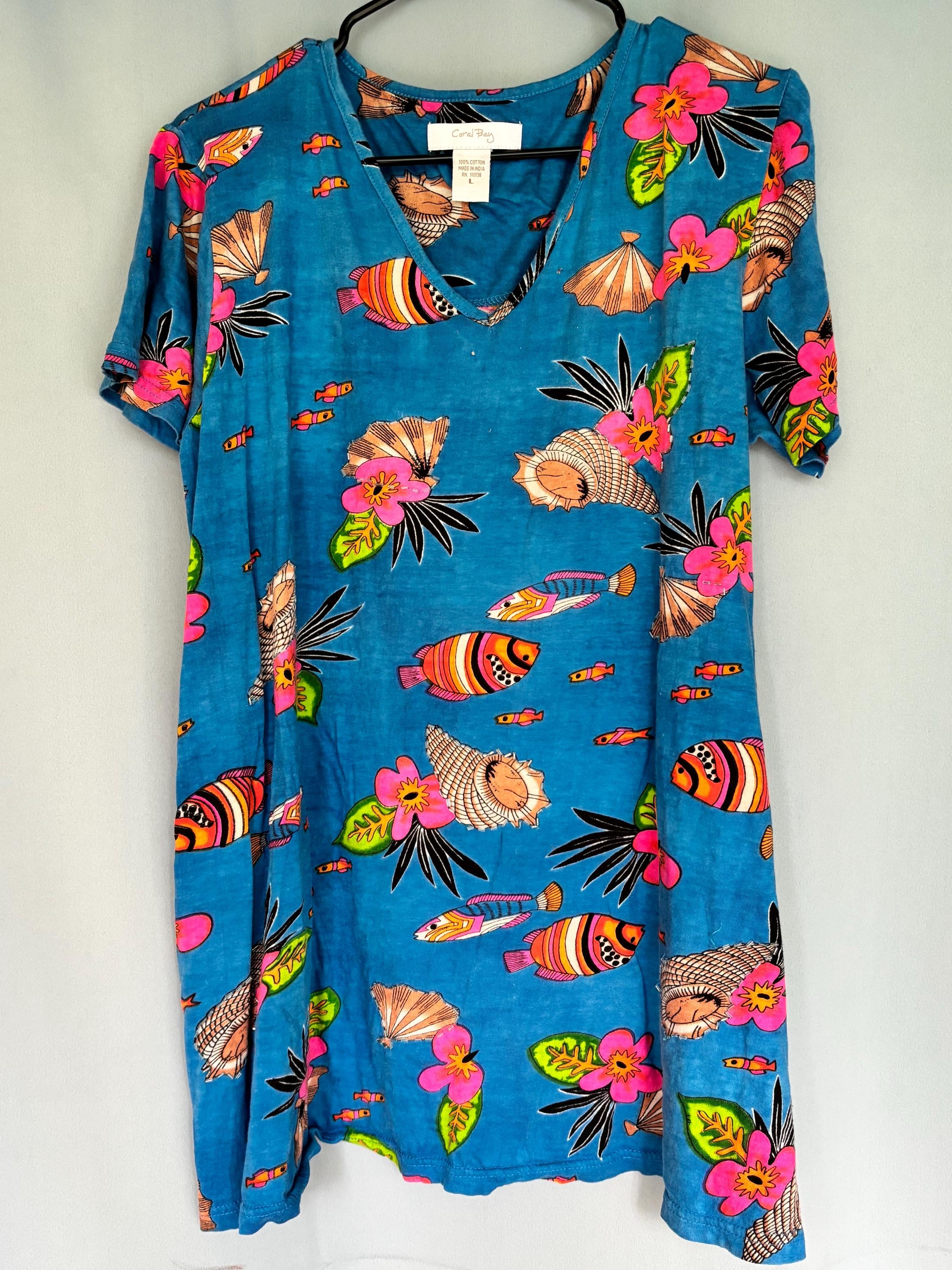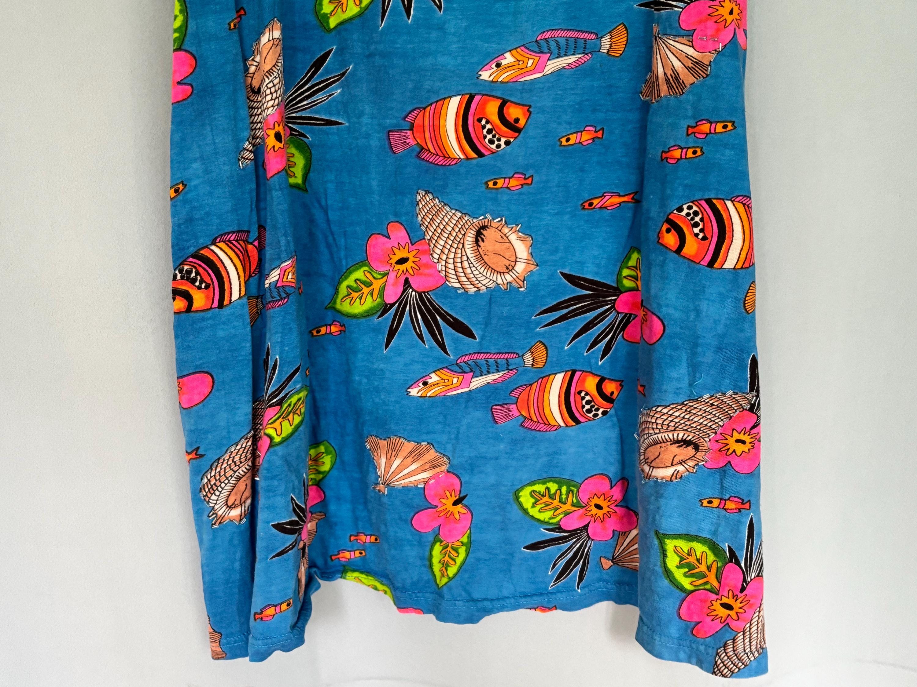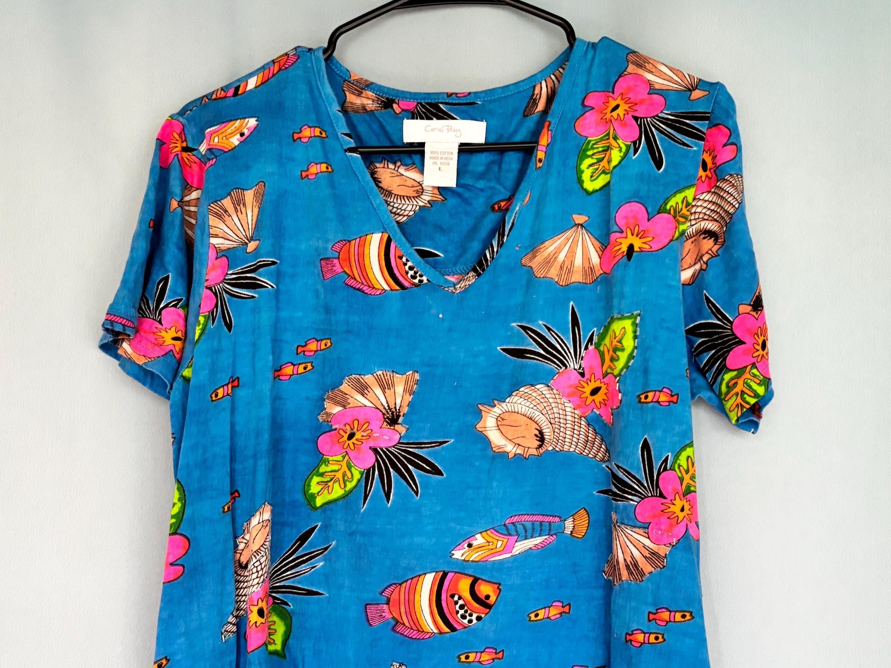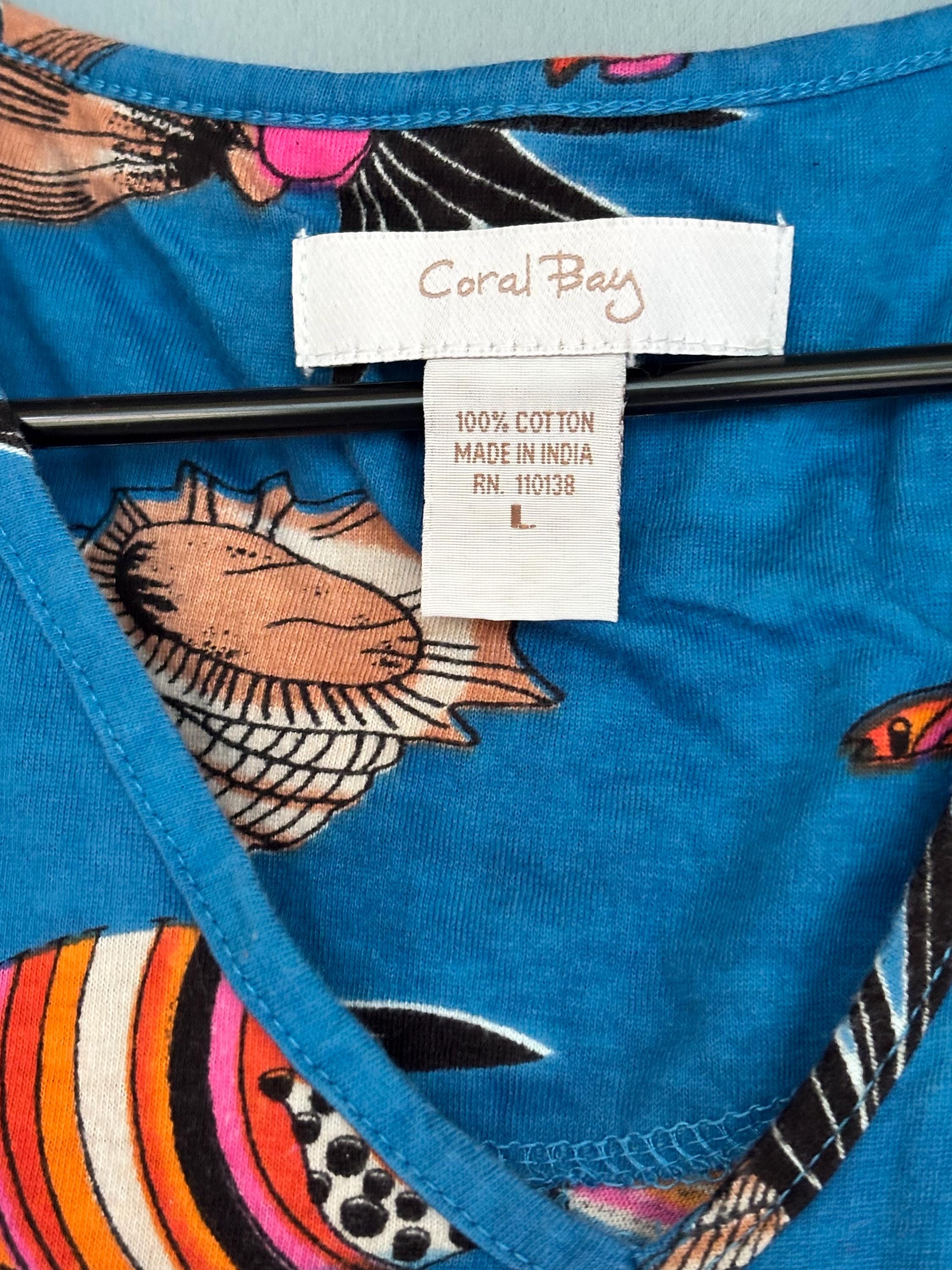 VISIT jaxinabox.com FOR ALL OUR LISTINGS!Womens Coral Bay Blue Shells And Fish Sleeveless Dress W Beading Large L