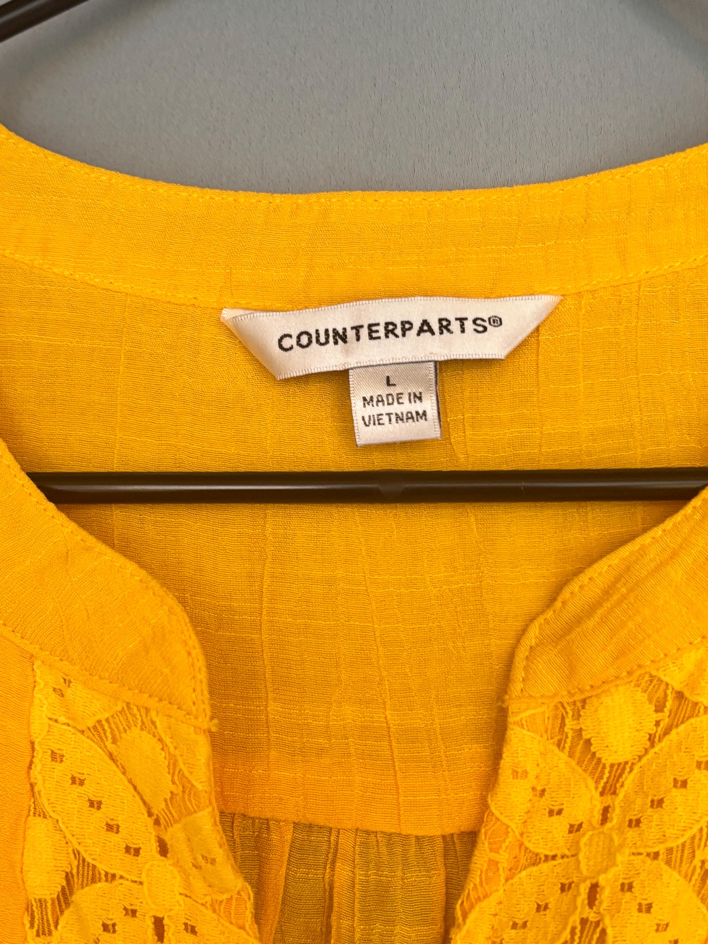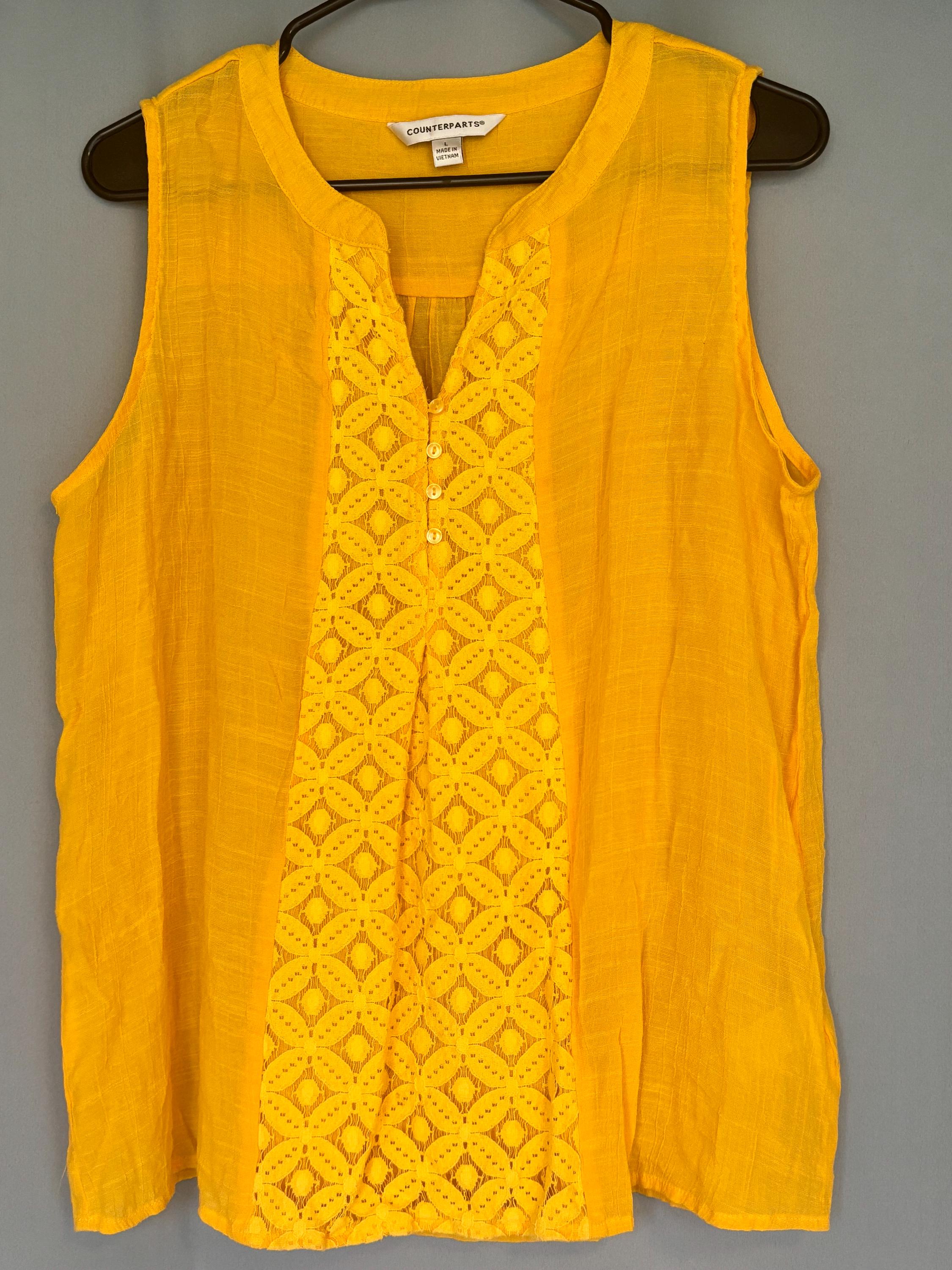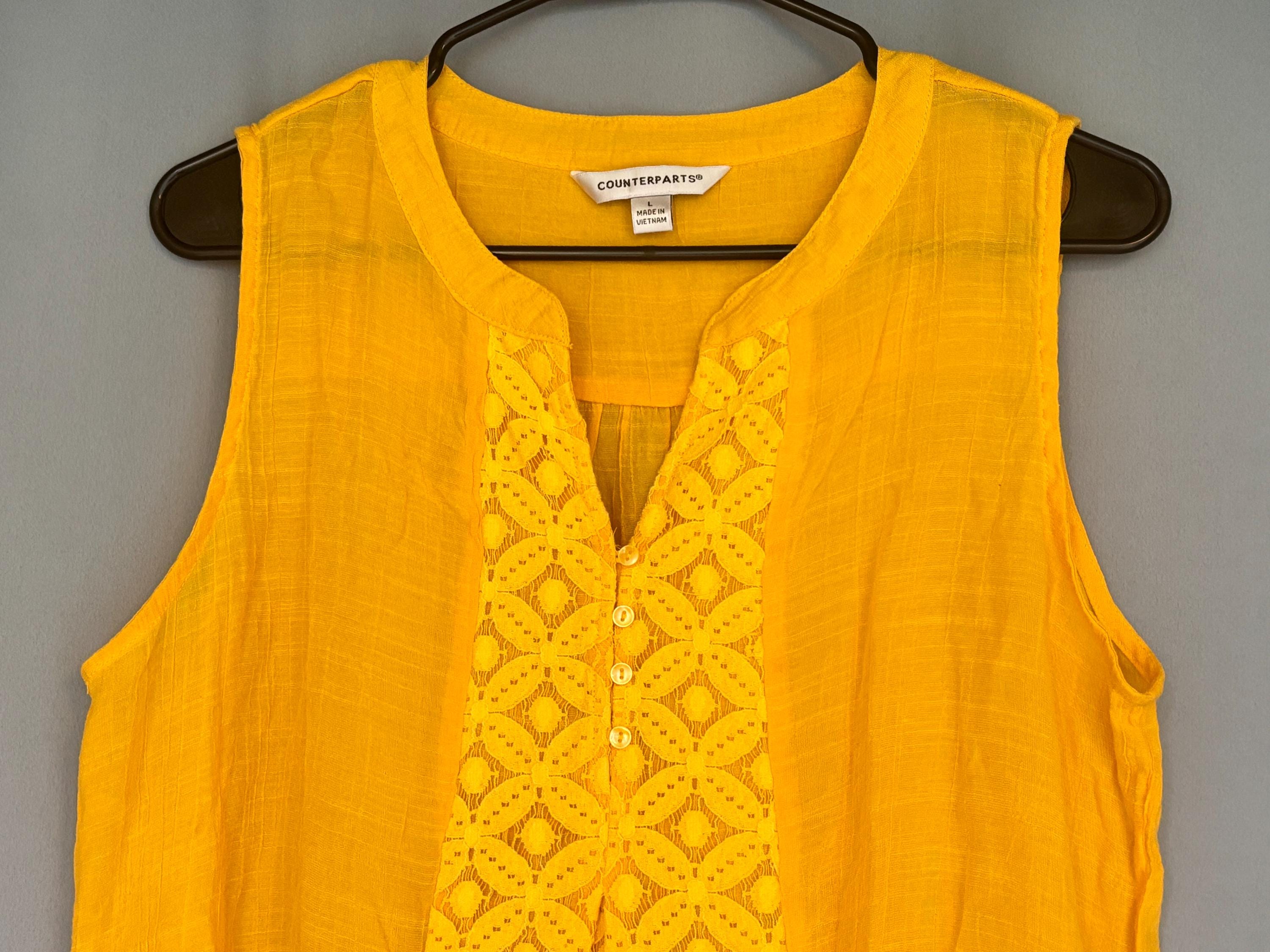 VISIT jaxinabox.com FOR ALL OUR LISTINGS!Counterparts Woman’s Shirt Top Blouse Yellow Floral Sleeveless Large L